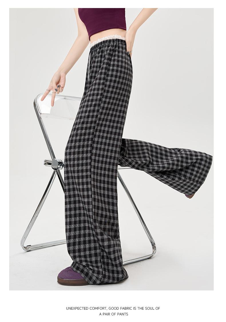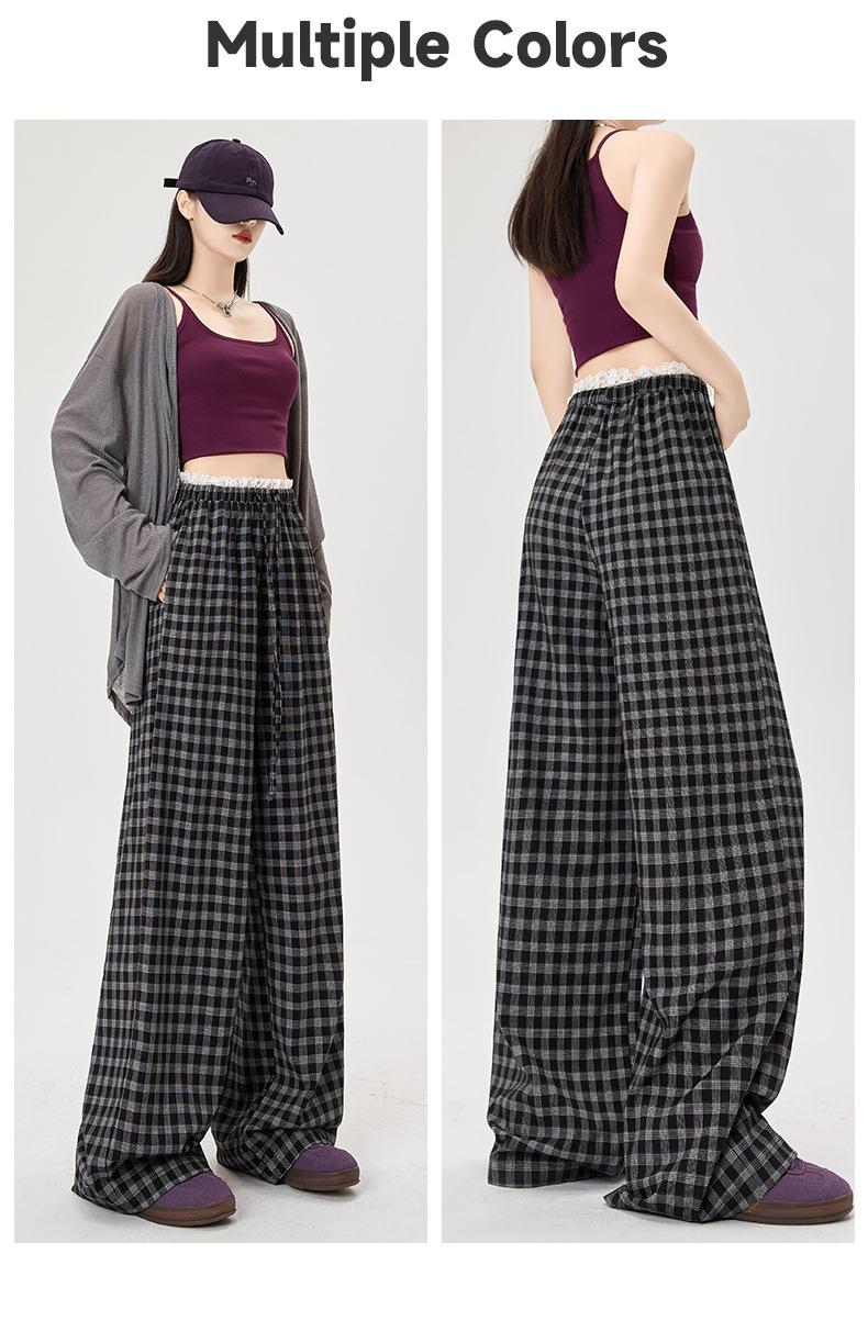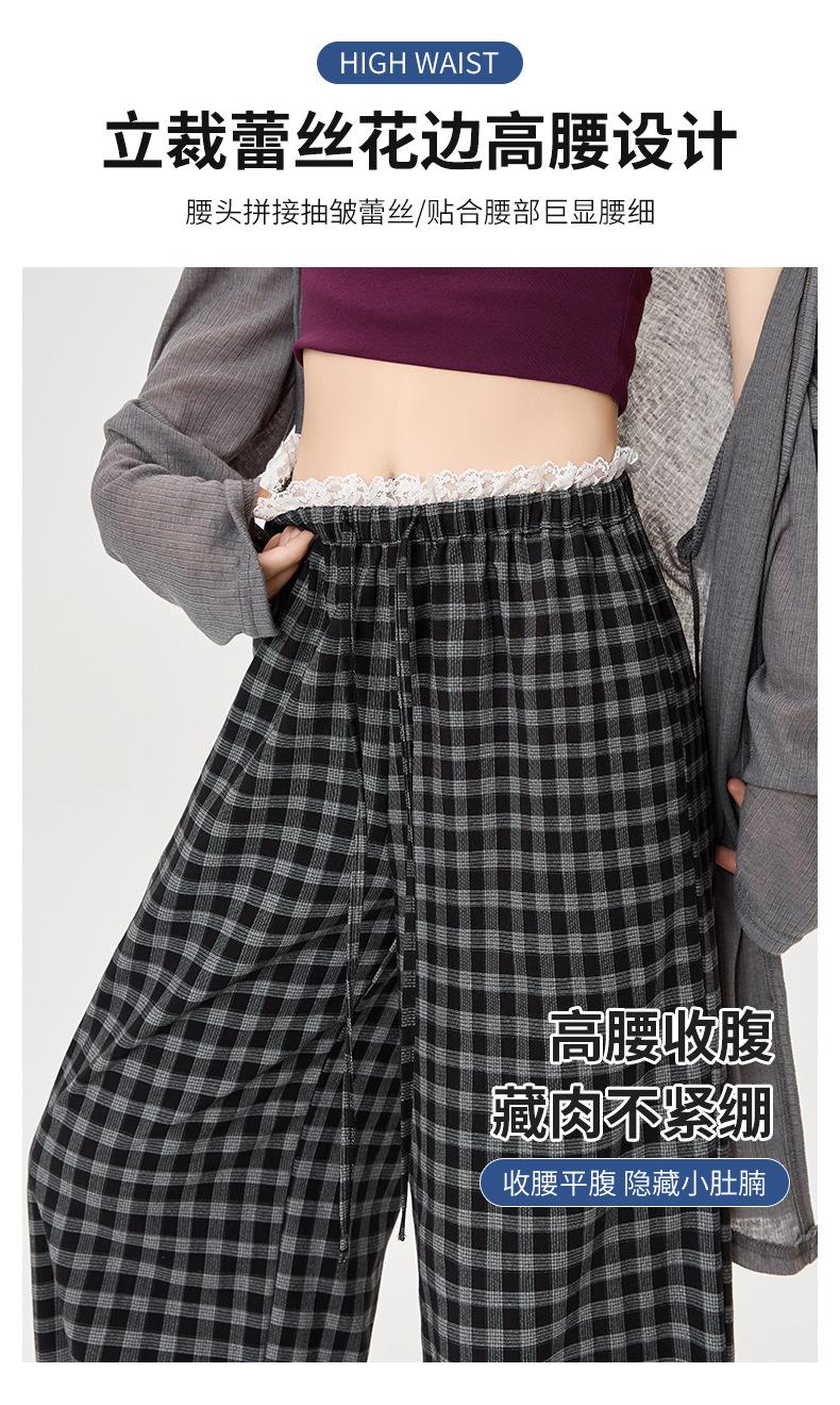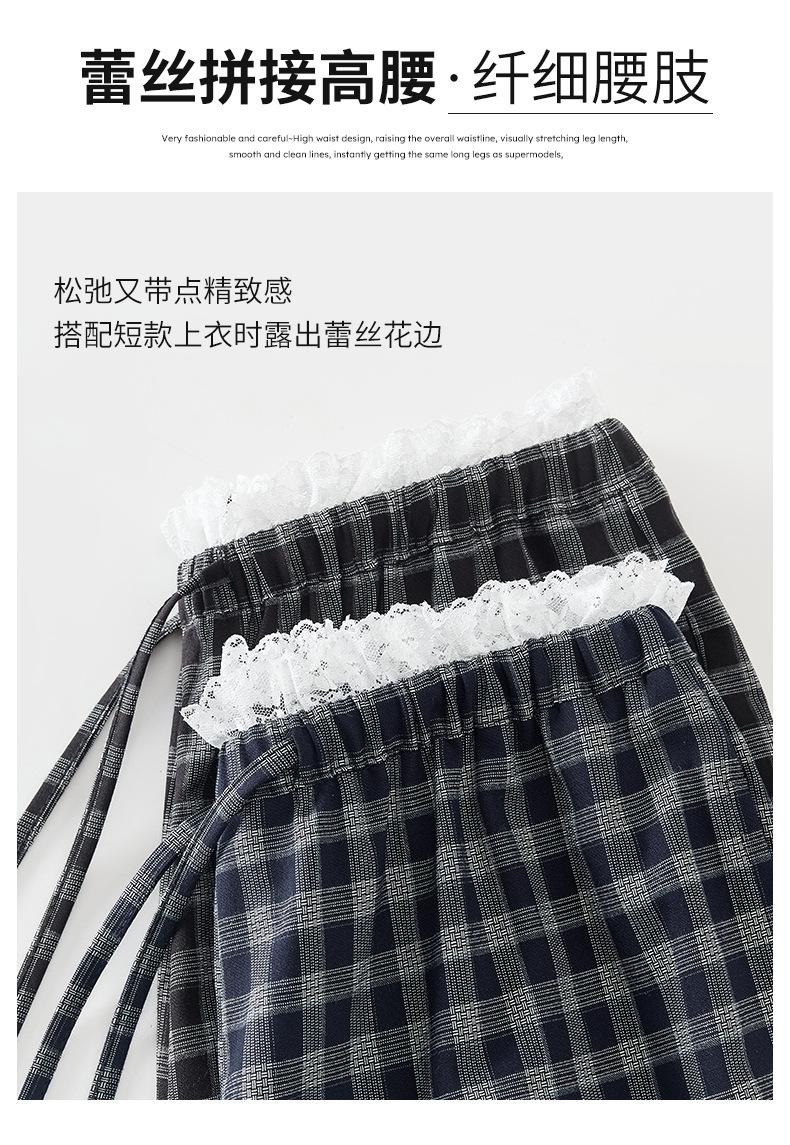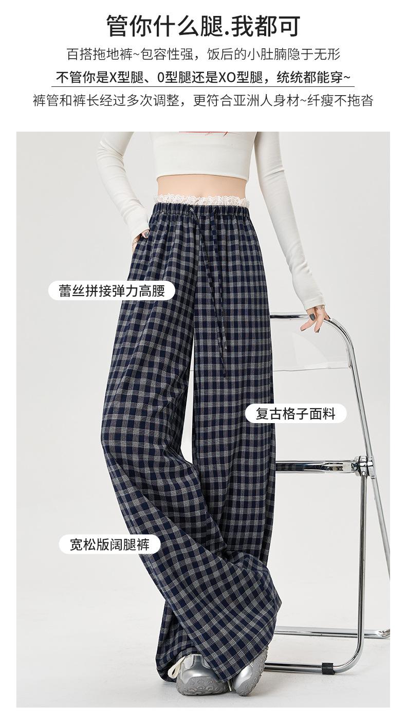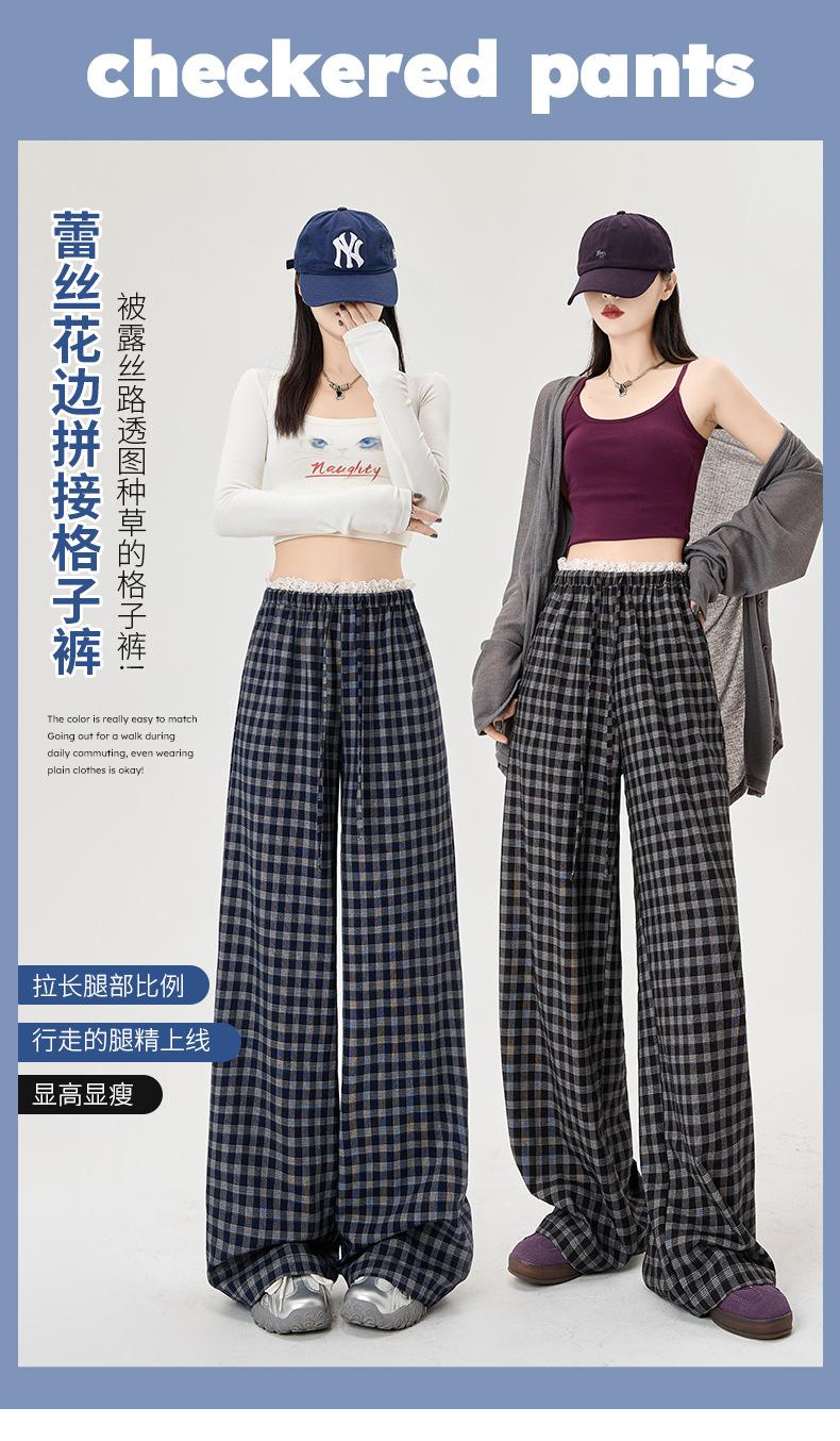 Pantalones de Pareja con Costuras de Encaje Retro Estilo Americano para Mujer Primavera y Verano Cintura Alta Adelgazantes Cordón Pierna Recta Pierna Ancha Pantalones Casuales