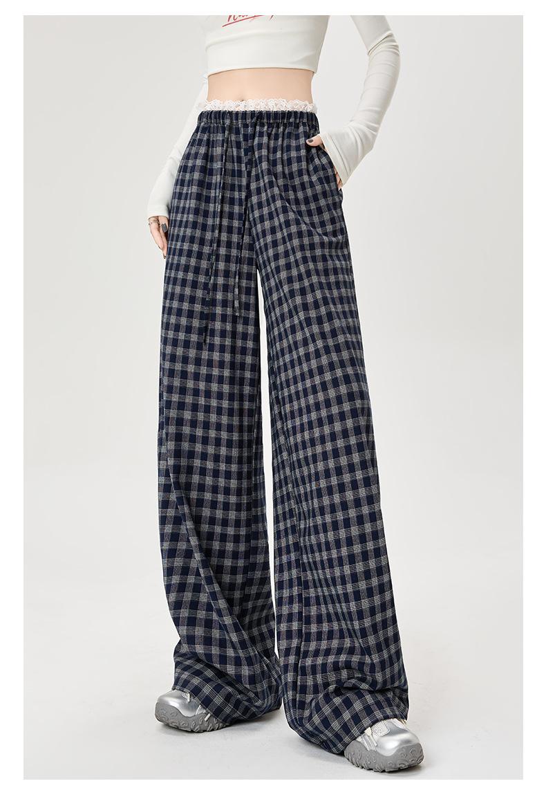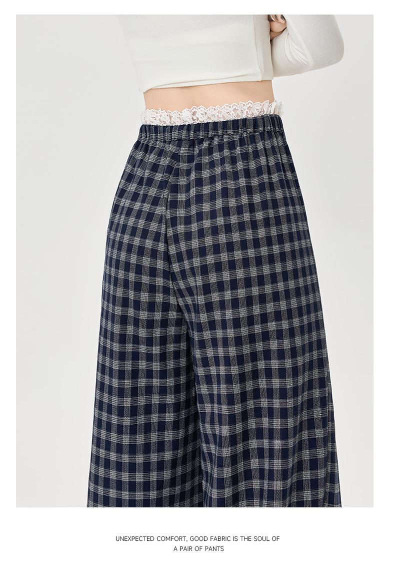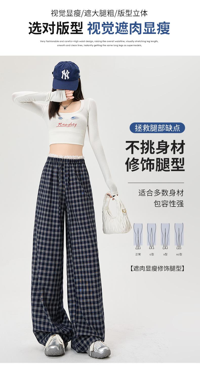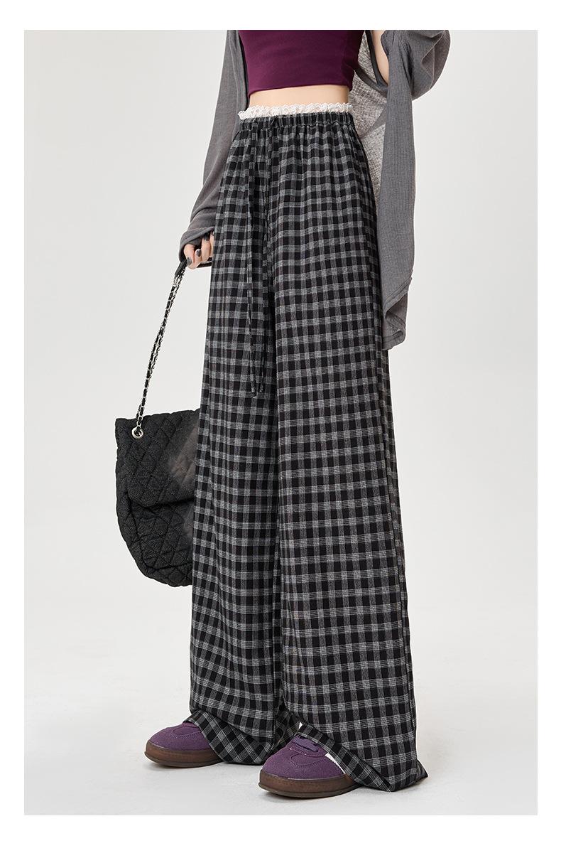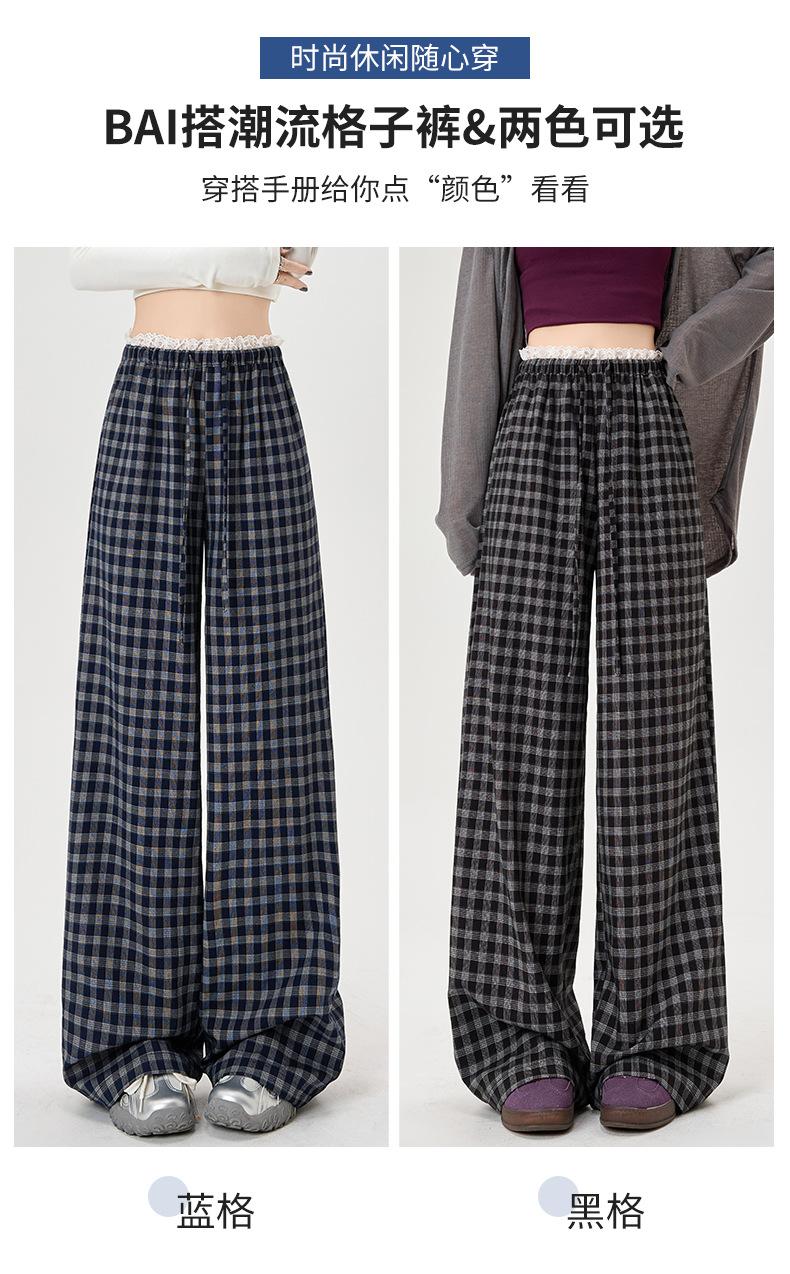 Pantalones de Pareja con Costuras de Encaje Retro Estilo Americano para Mujer Primavera y Verano Cintura Alta Adelgazantes Cordón Pierna Recta Pierna Ancha Pantalones Casuales