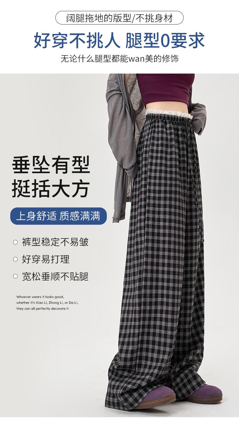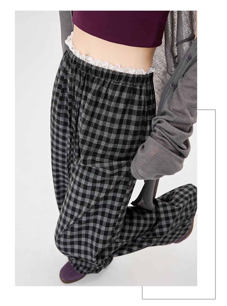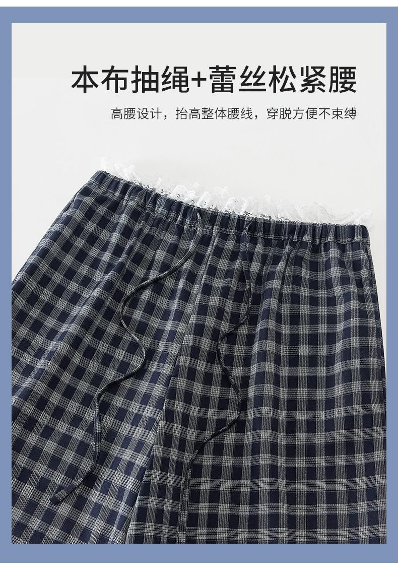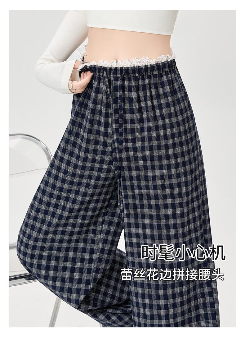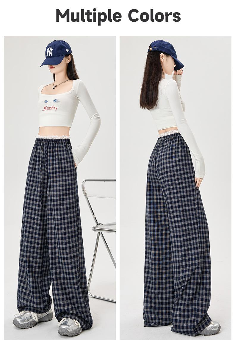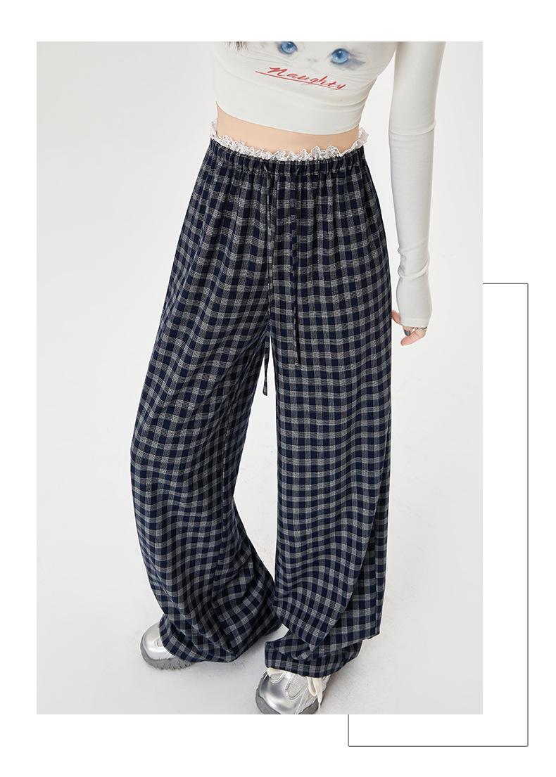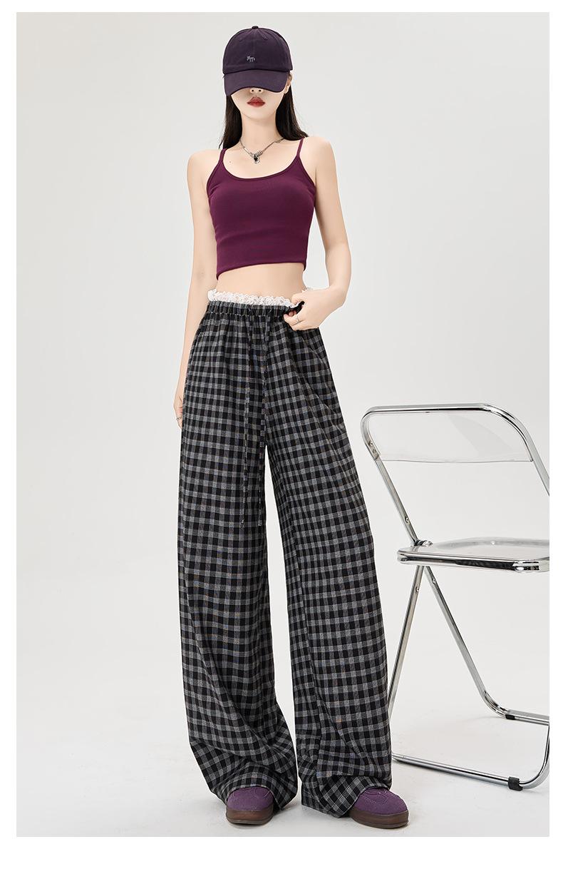 Pantalones de Pareja con Costuras de Encaje Retro Estilo Americano para Mujer Primavera y Verano Cintura Alta Adelgazantes Cordón Pierna Recta Pierna Ancha Pantalones Casuales