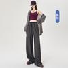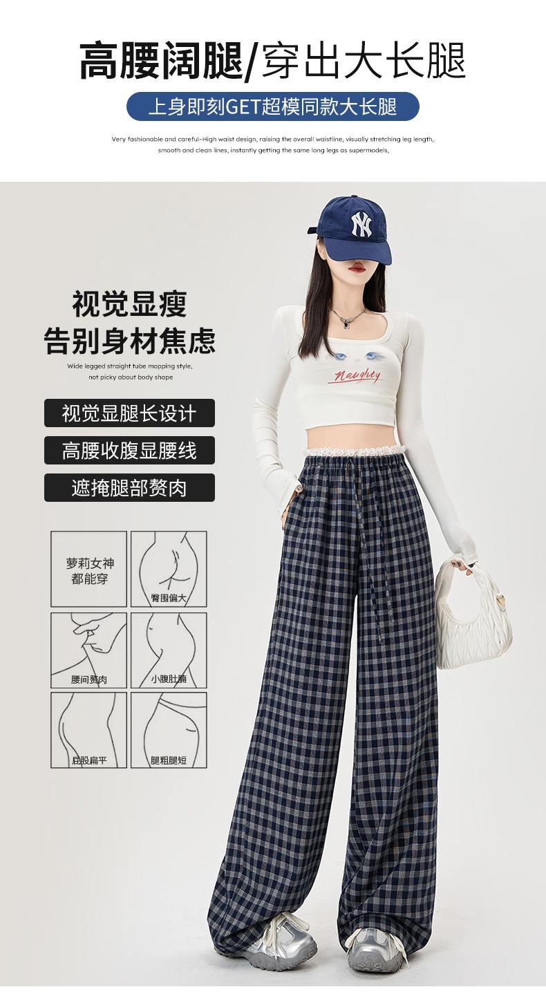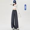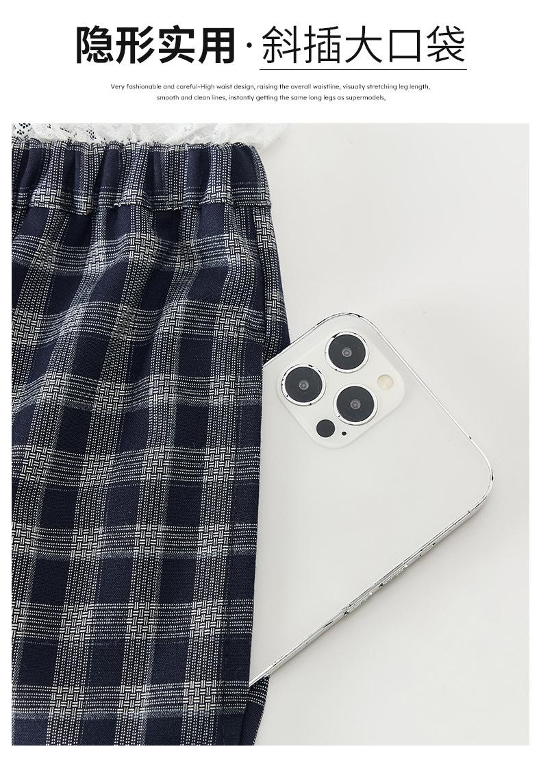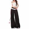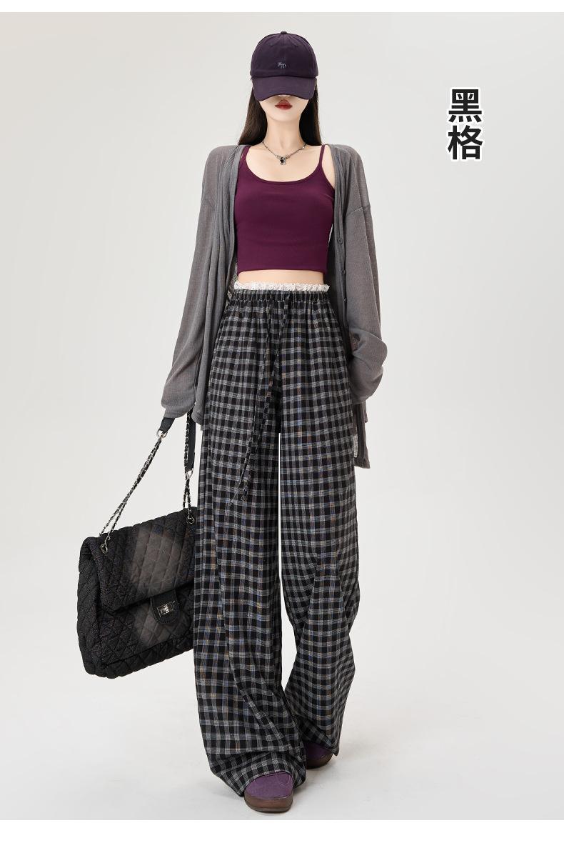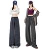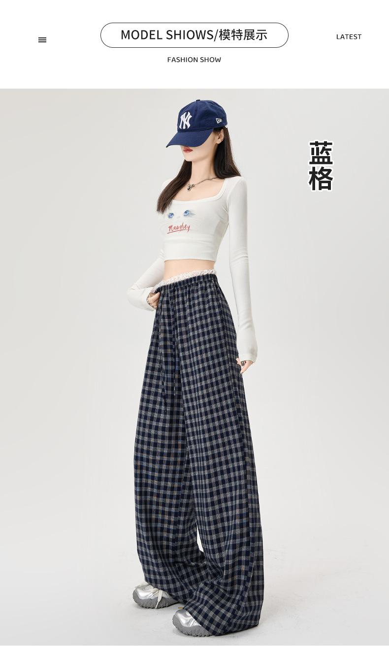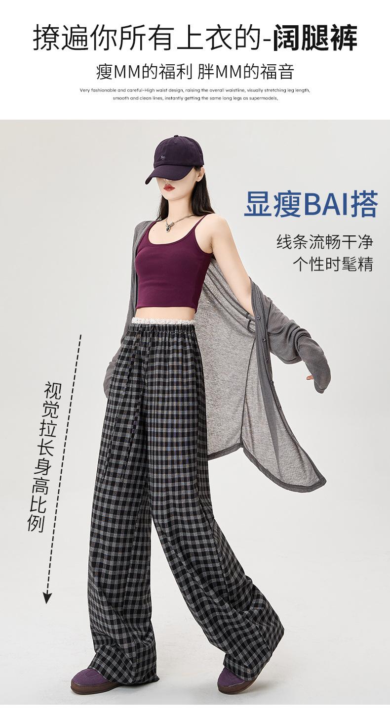 Pantalones de Pareja con Costuras de Encaje Retro Estilo Americano para Mujer Primavera y Verano Cintura Alta Adelgazantes Cordón Pierna Recta Pierna Ancha Pantalones Casuales