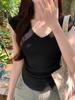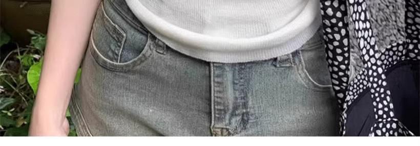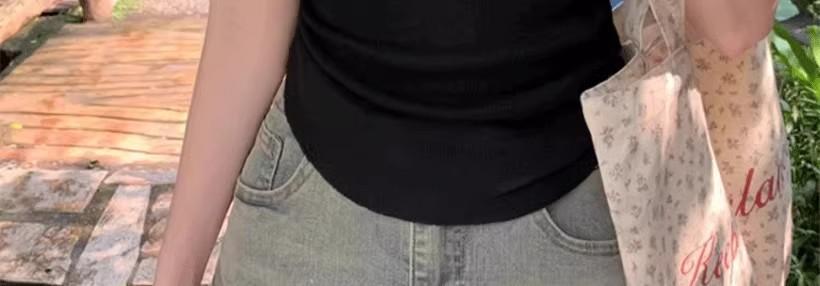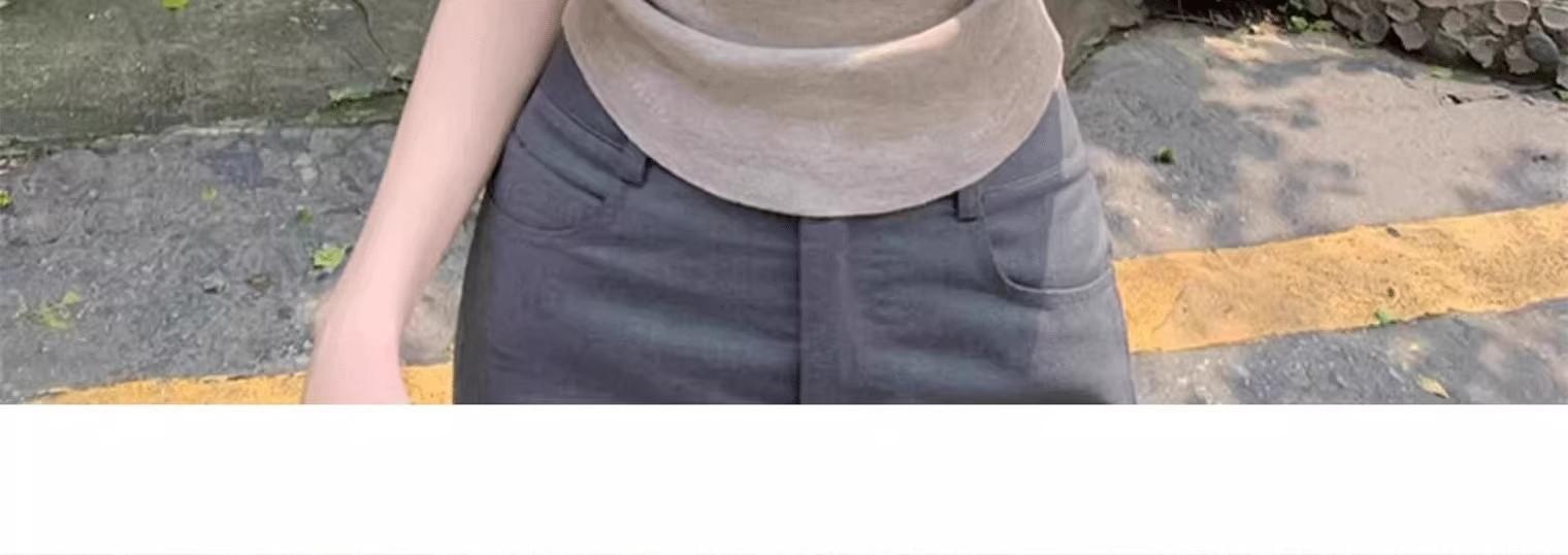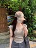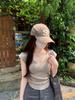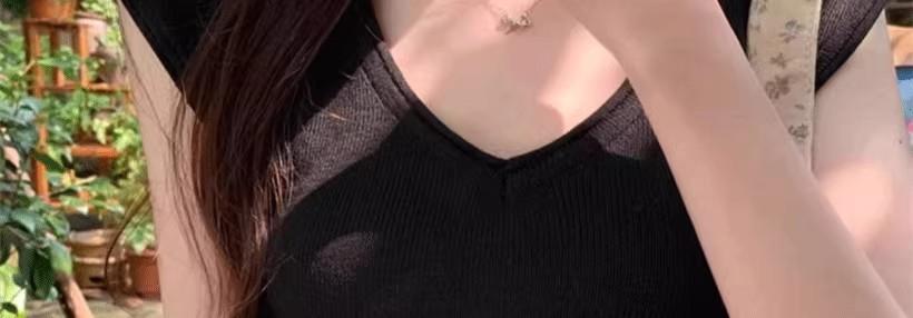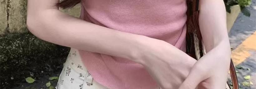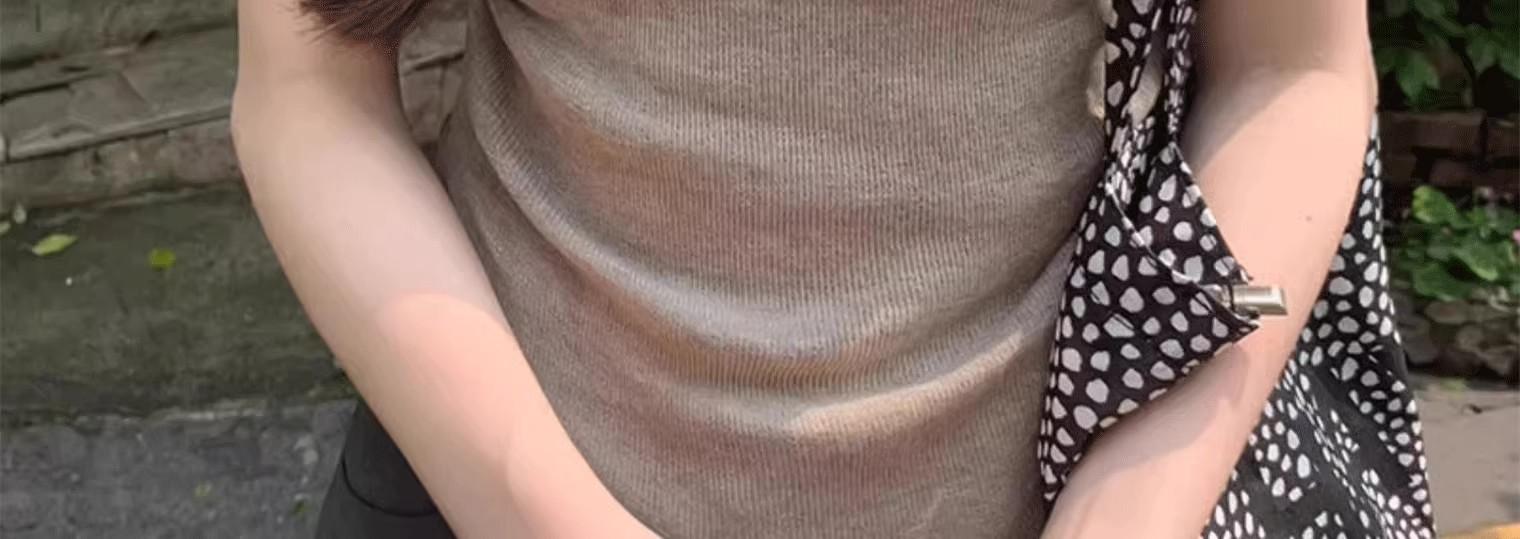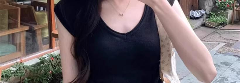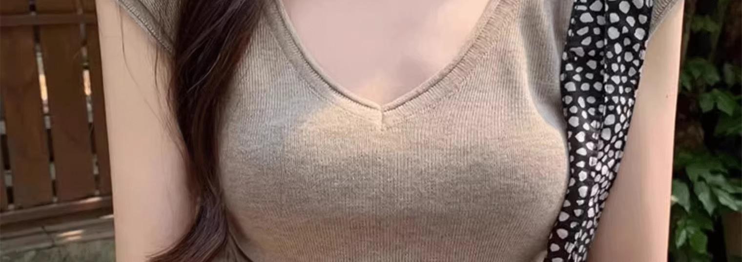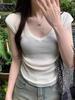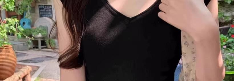 Camiseta de punto morada con cuello en V y hombros descubiertos para mujer, de verano, fina, con cintura irregular y mangas cortas.