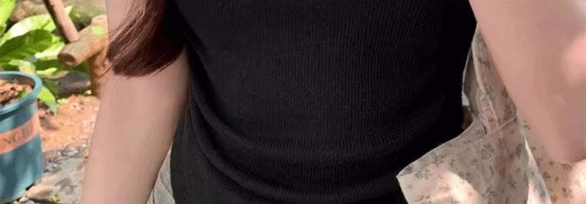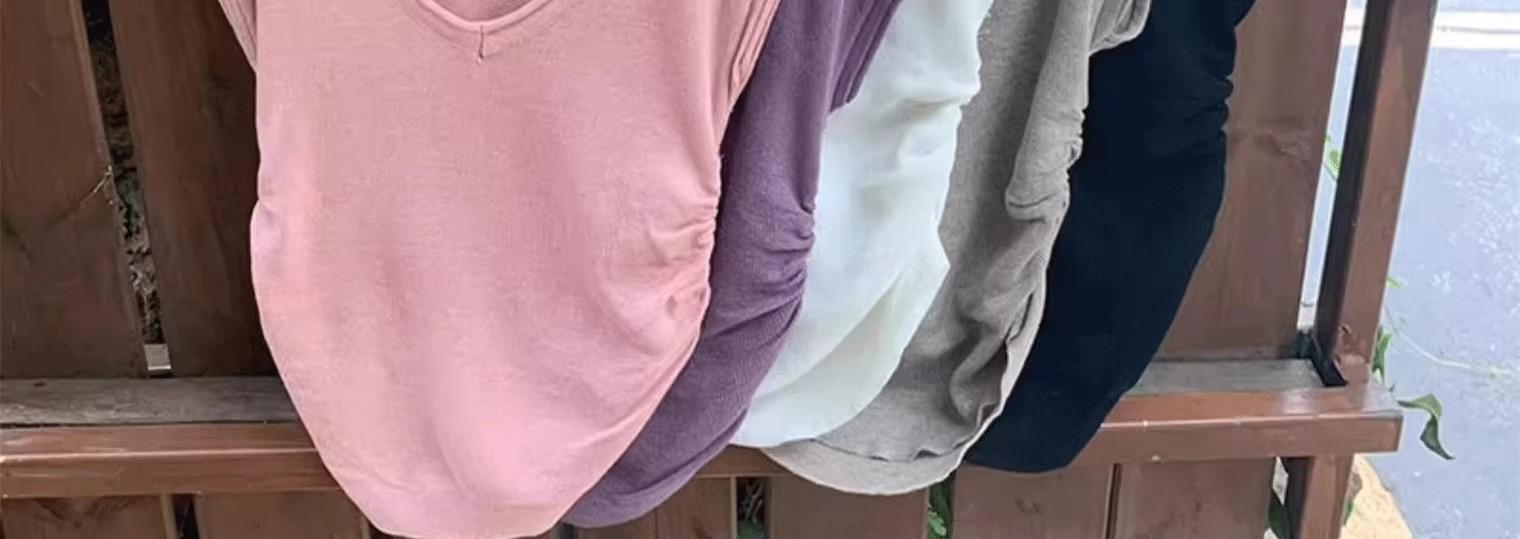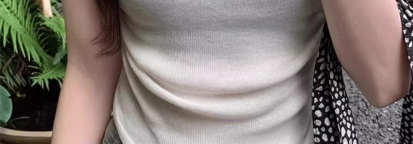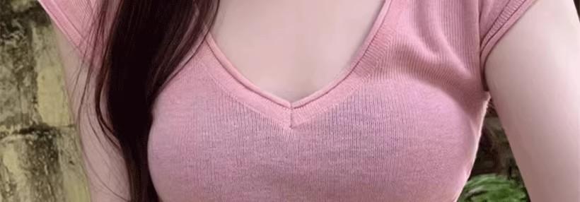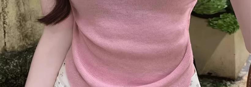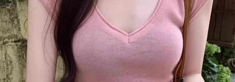 Compra Camiseta de punto morada con cuello en V y hombros descubiertos para mujer, de verano, fina, con cintura irregular y mangas cortas. al por mayor en Joom.pro