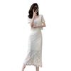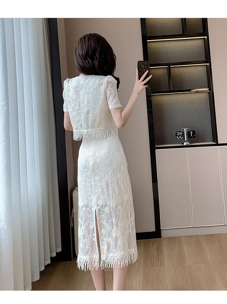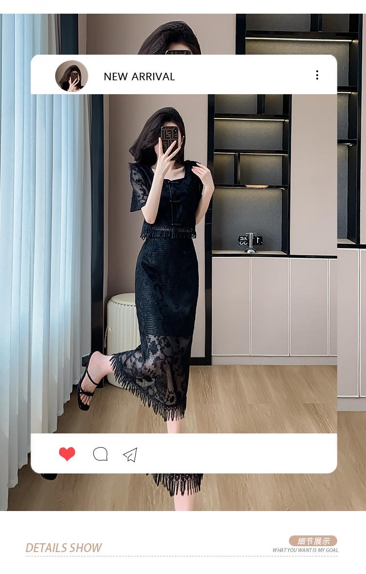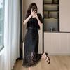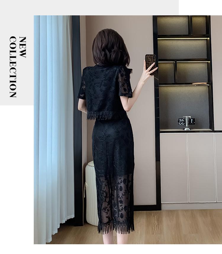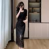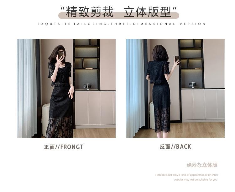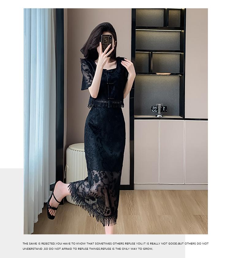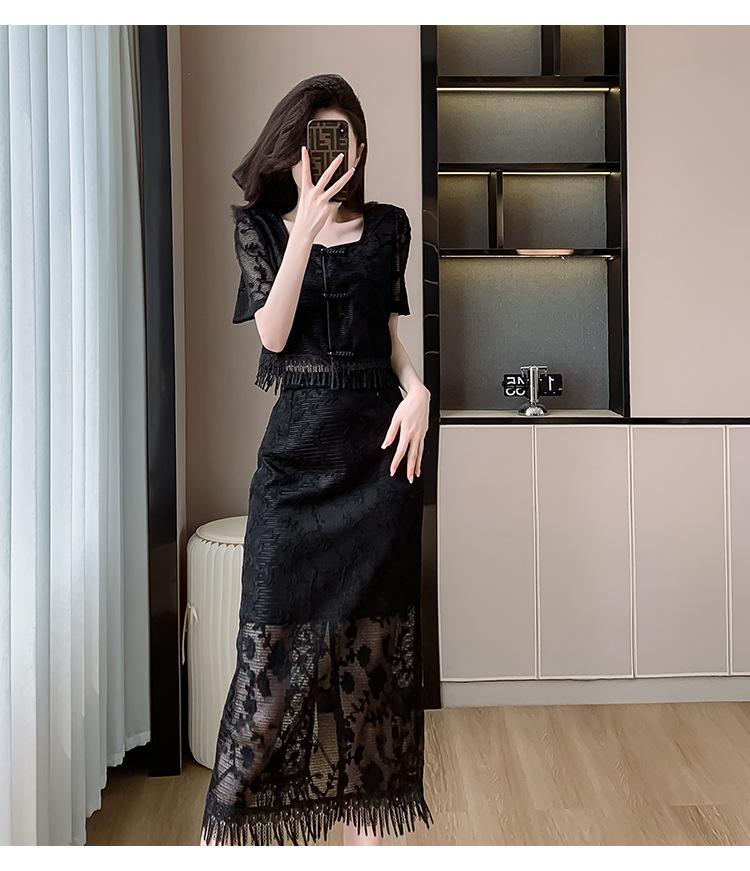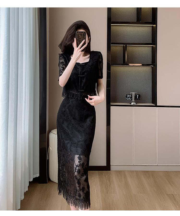 Verano 2024 Nuevo Nuevo Estilo Chino Botón Cuello Cuadrado Borla Bordada Largo Medio Traje de Dos Piezas Vestido Estilo Nacional para Mujer