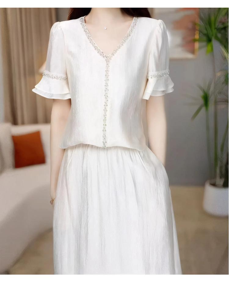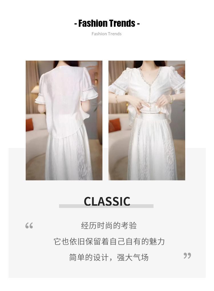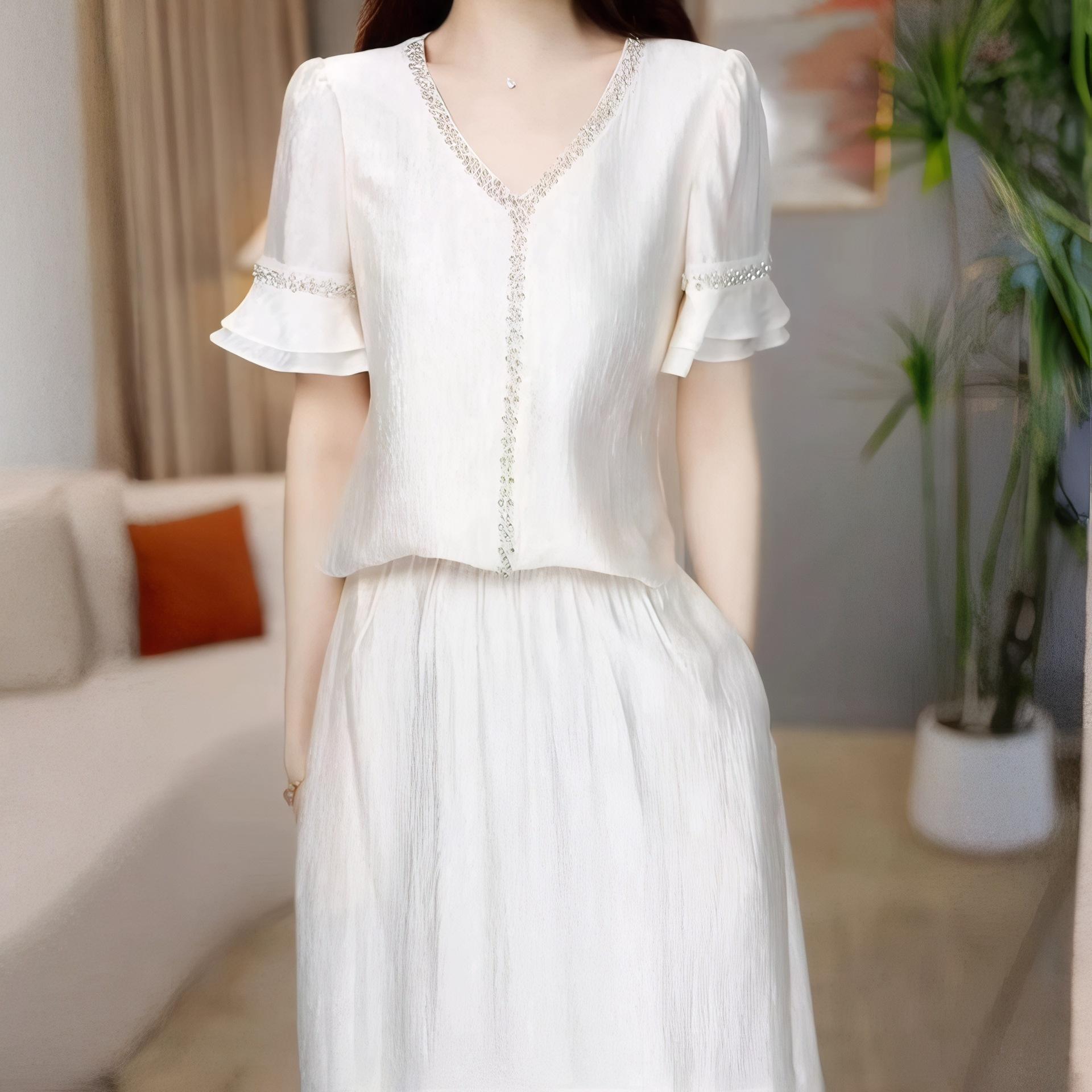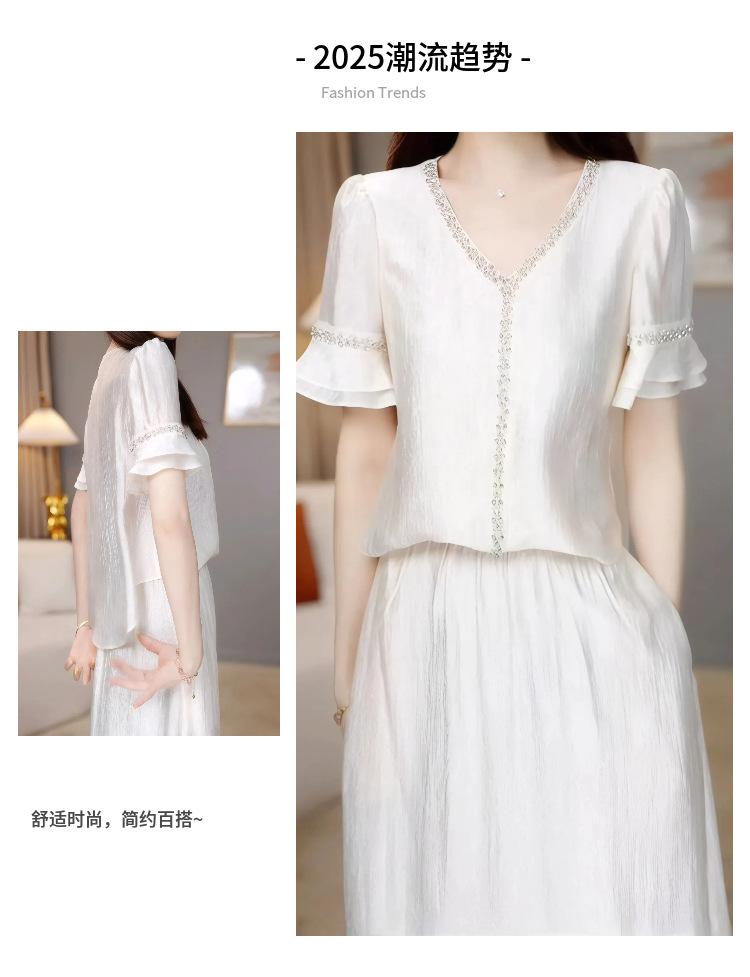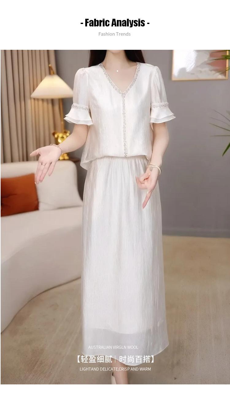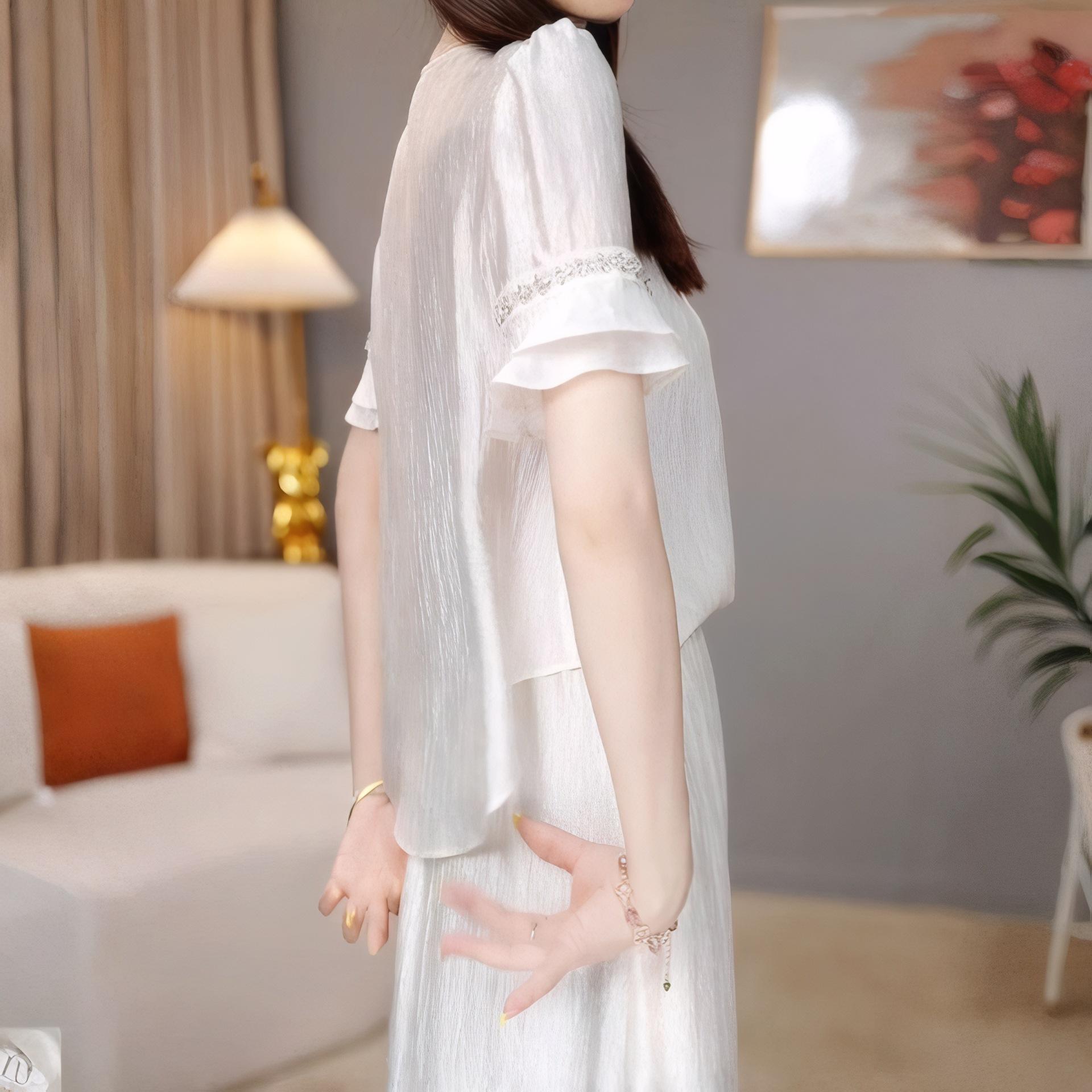 Traje Versátil Elegante y a la Moda para Mujer 2025 Verano Nuevo Top de Manga Corta con Volantes Reductor de Edad Falda Línea A Conjunto de Dos Piezas