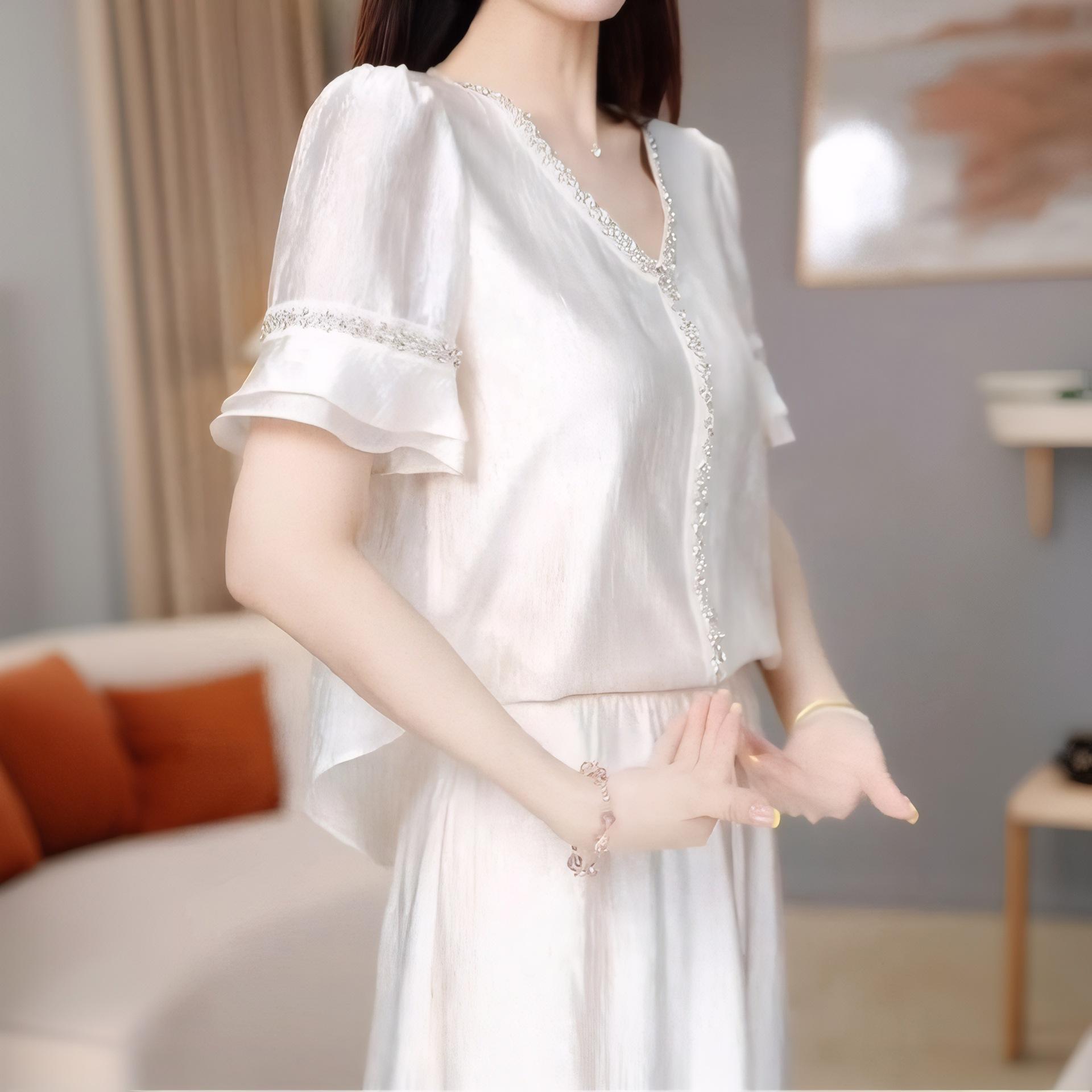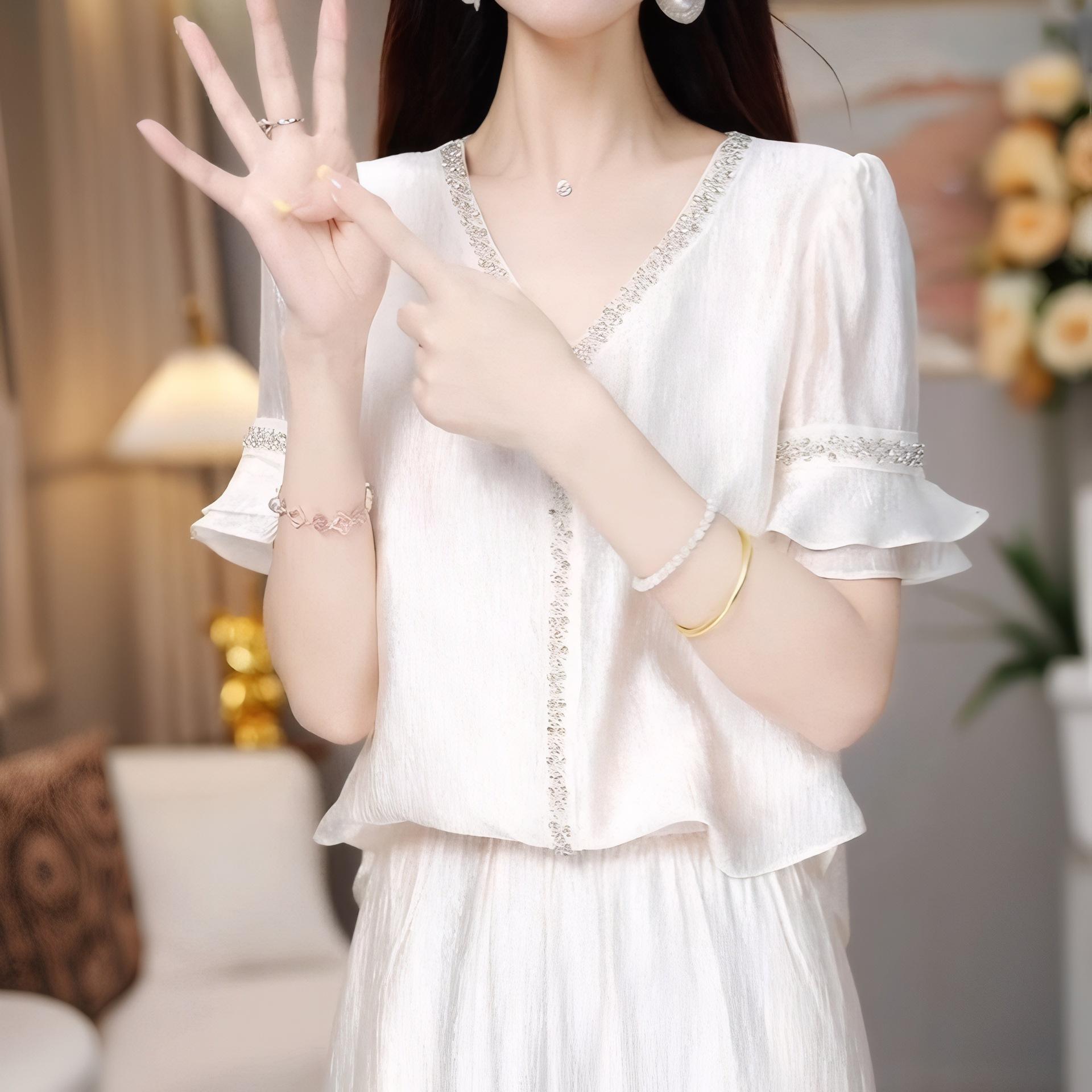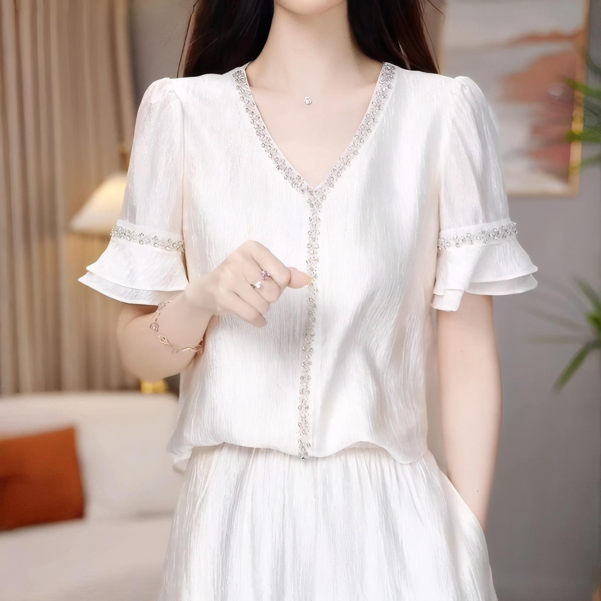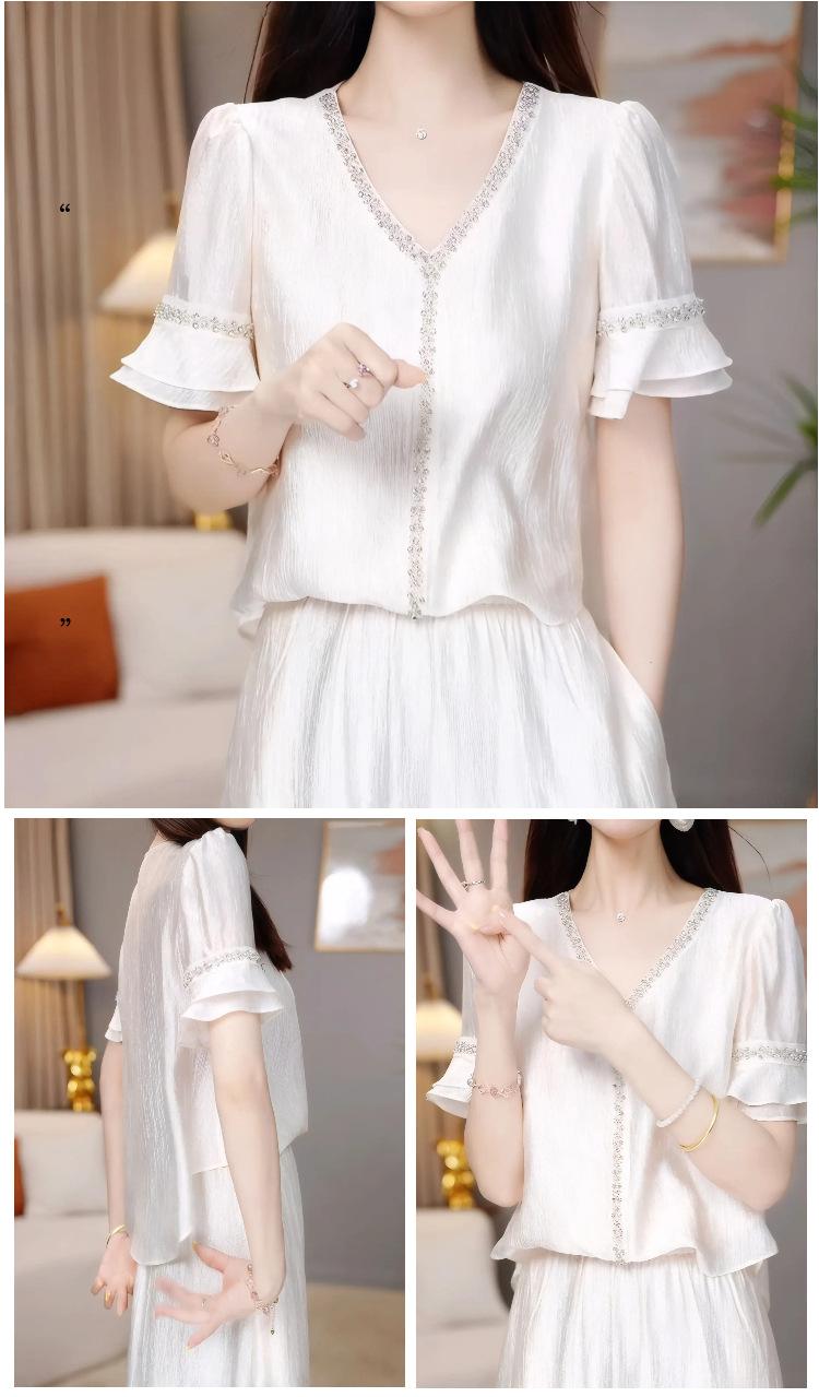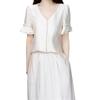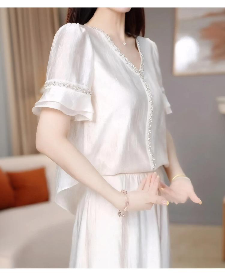 Traje Versátil Elegante y a la Moda para Mujer 2025 Verano Nuevo Top de Manga Corta con Volantes Reductor de Edad Falda Línea A Conjunto de Dos Piezas
