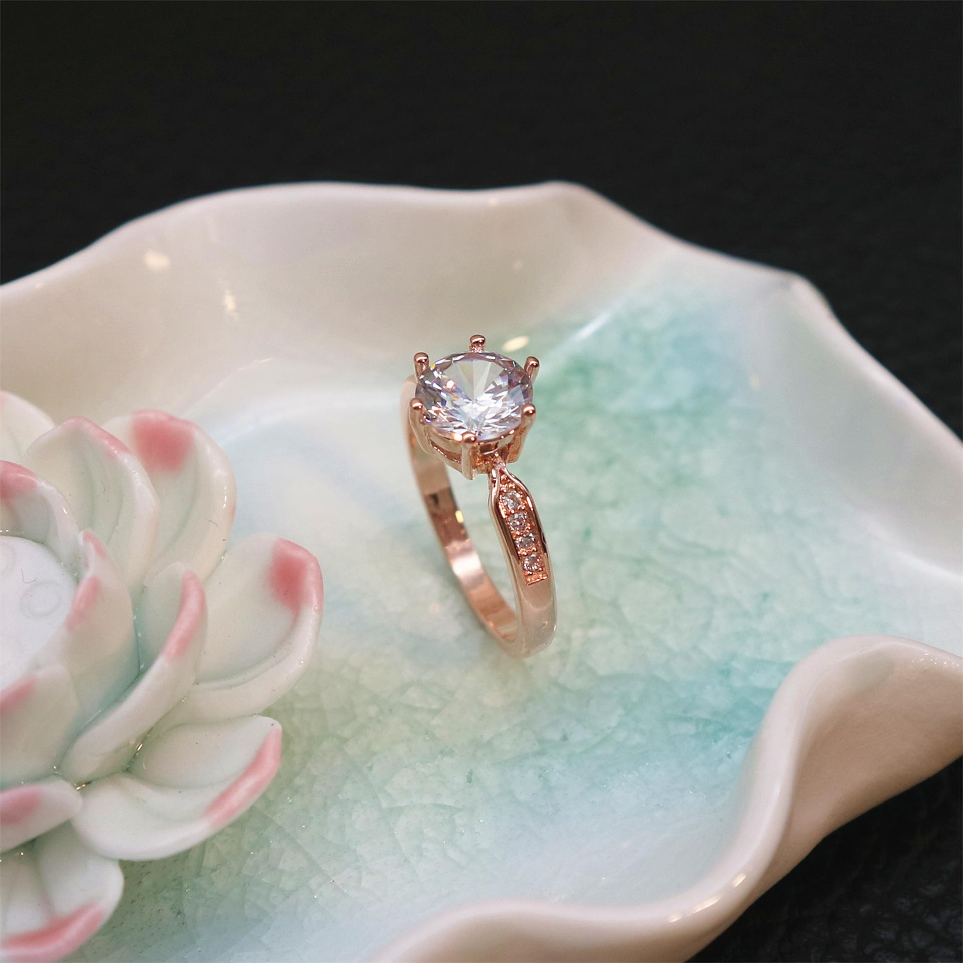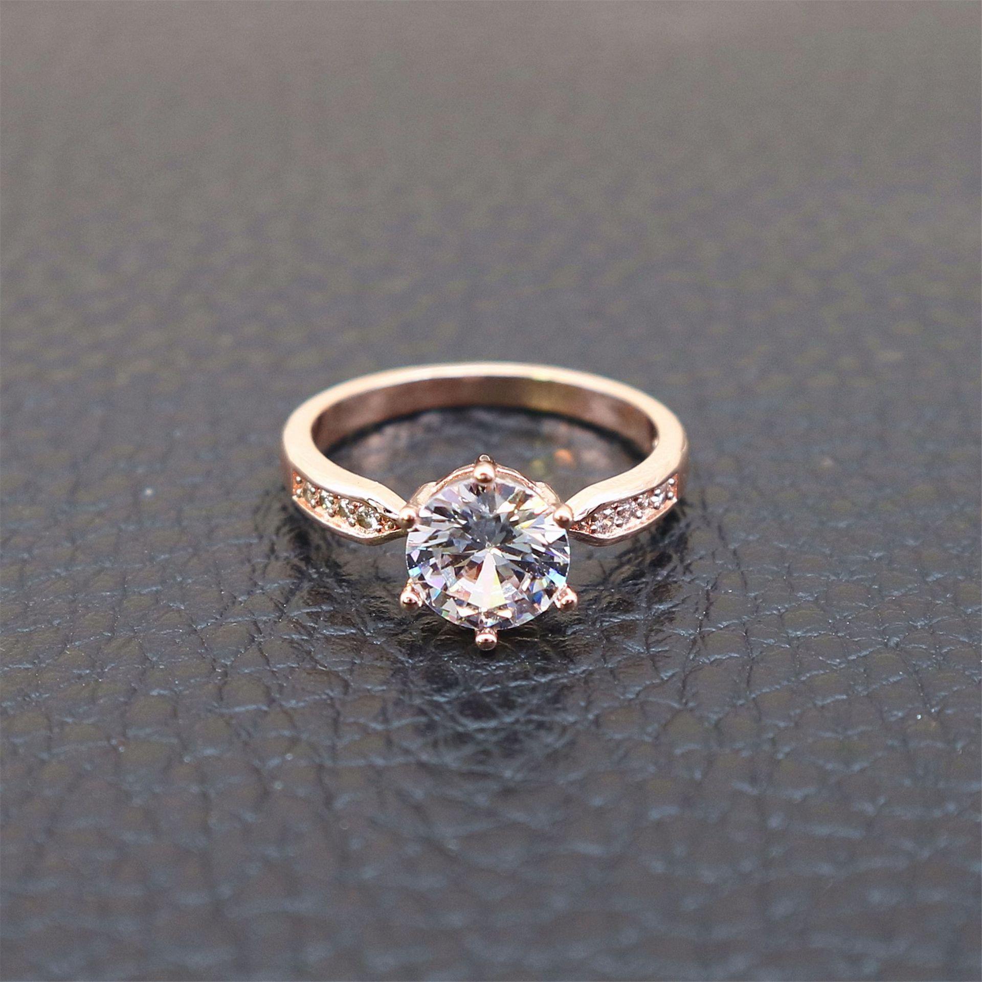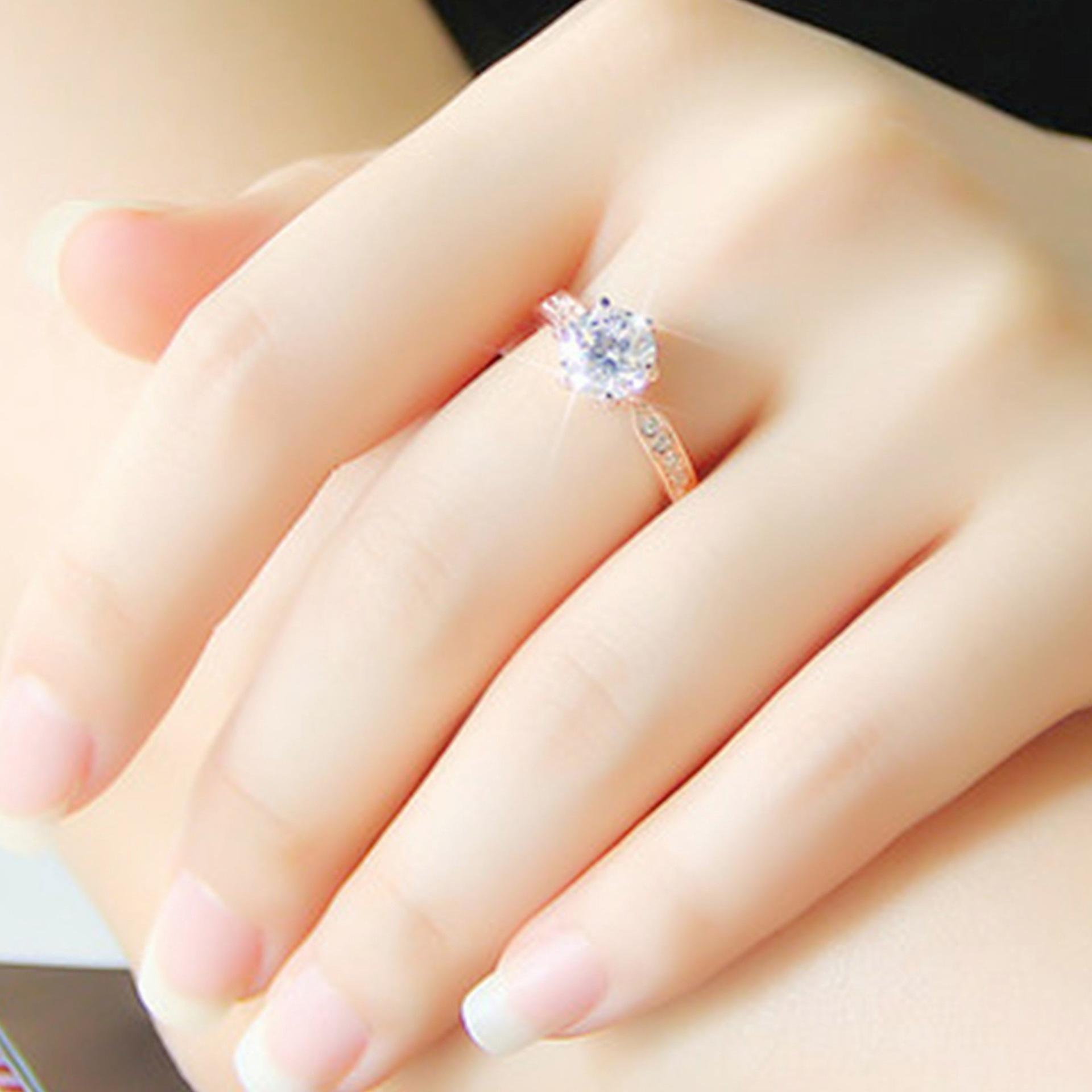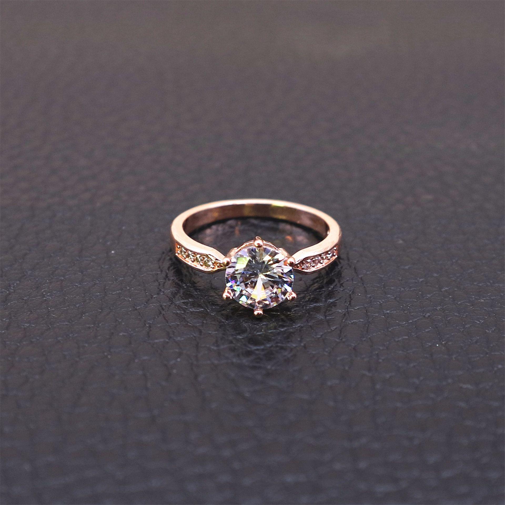 Yihua Anillo de Flor Coreano de Venta Caliente para Comercio Exterior al por Mayor Anillo Clásico de Diamante de Seis Garras en Oro Rosa con Zirconia Anillo de Boda para Mujer