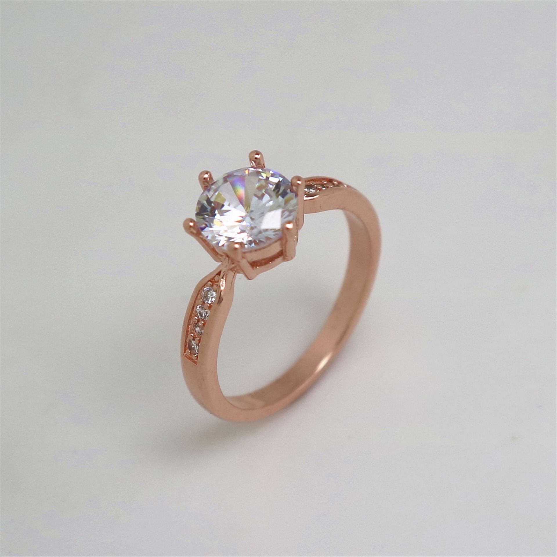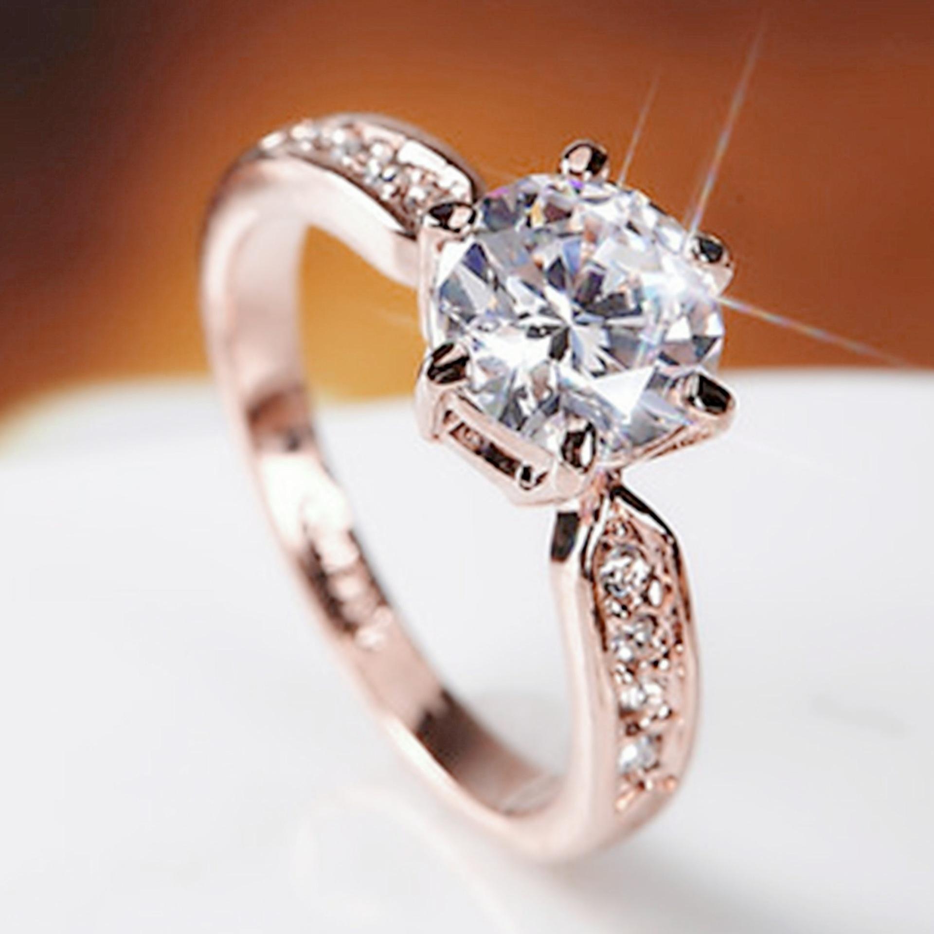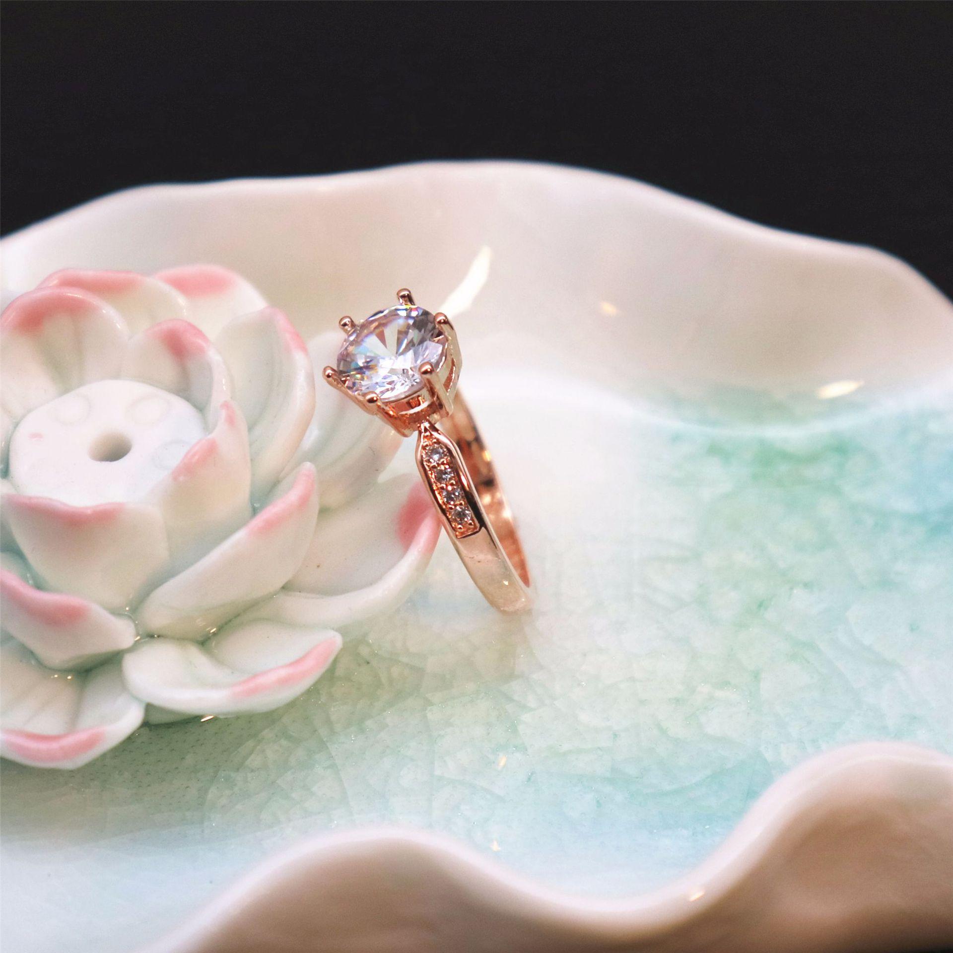 Yihua Anillo de Flor Coreano de Venta Caliente para Comercio Exterior al por Mayor Anillo Clásico de Diamante de Seis Garras en Oro Rosa con Zirconia Anillo de Boda para Mujer