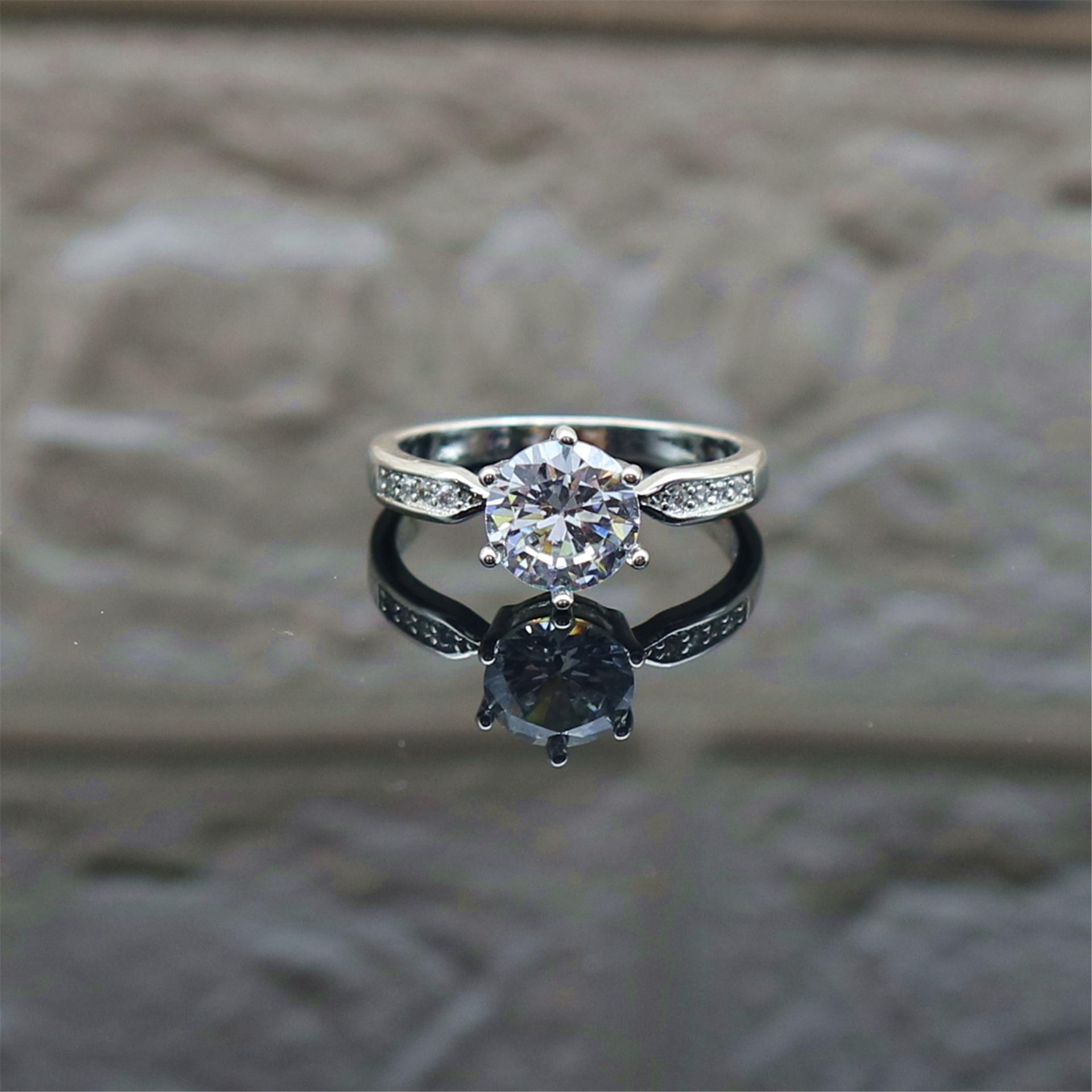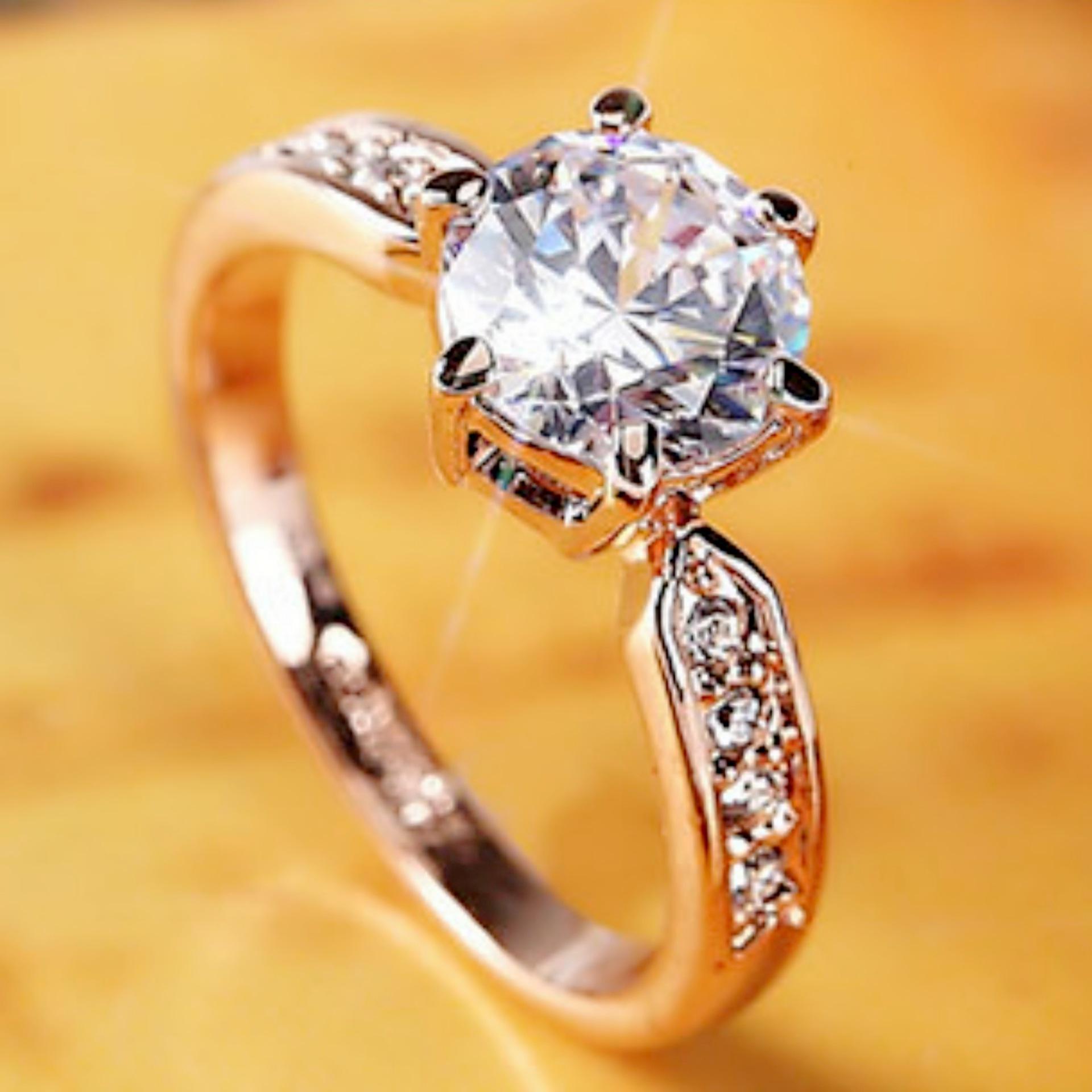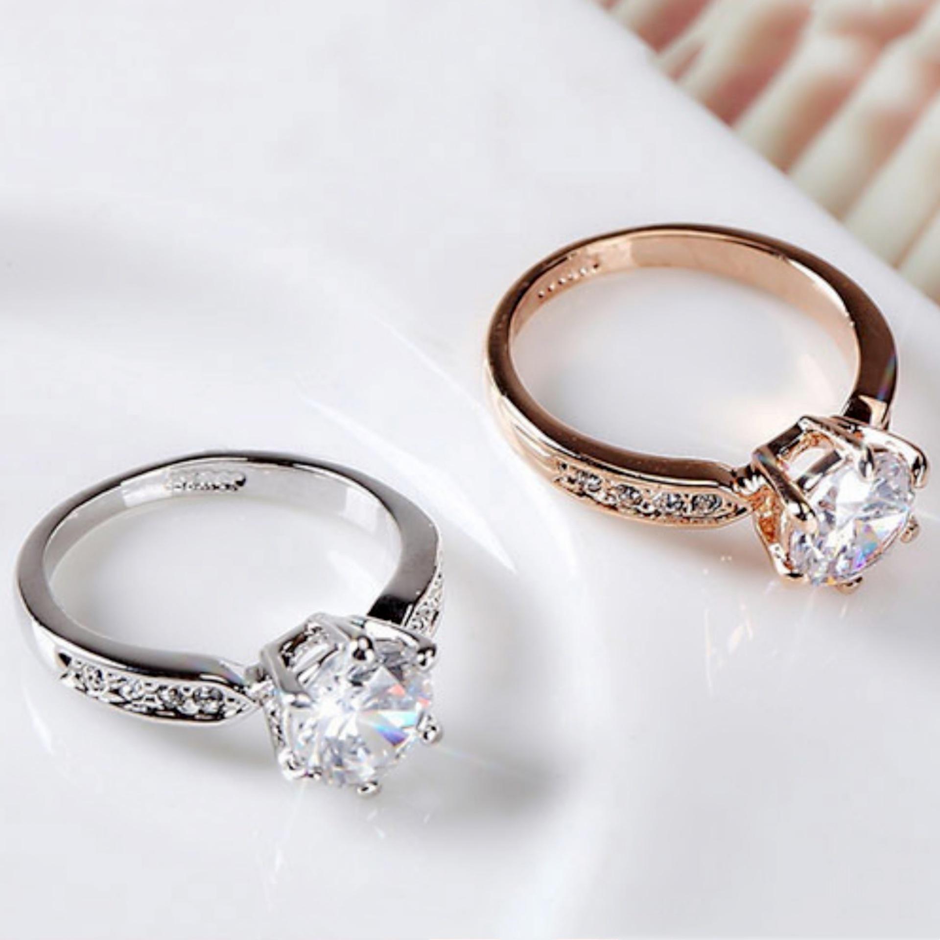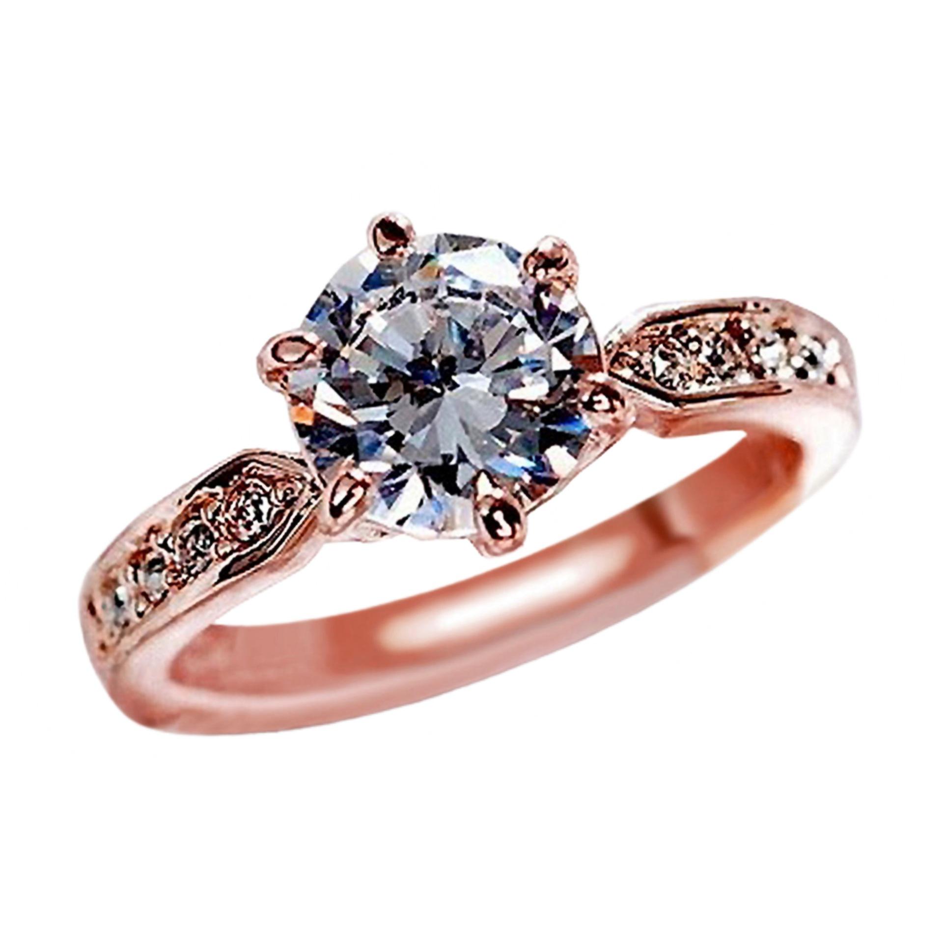 Yihua Anillo de Flor Coreano de Venta Caliente para Comercio Exterior al por Mayor Anillo Clásico de Diamante de Seis Garras en Oro Rosa con Zirconia Anillo de Boda para Mujer