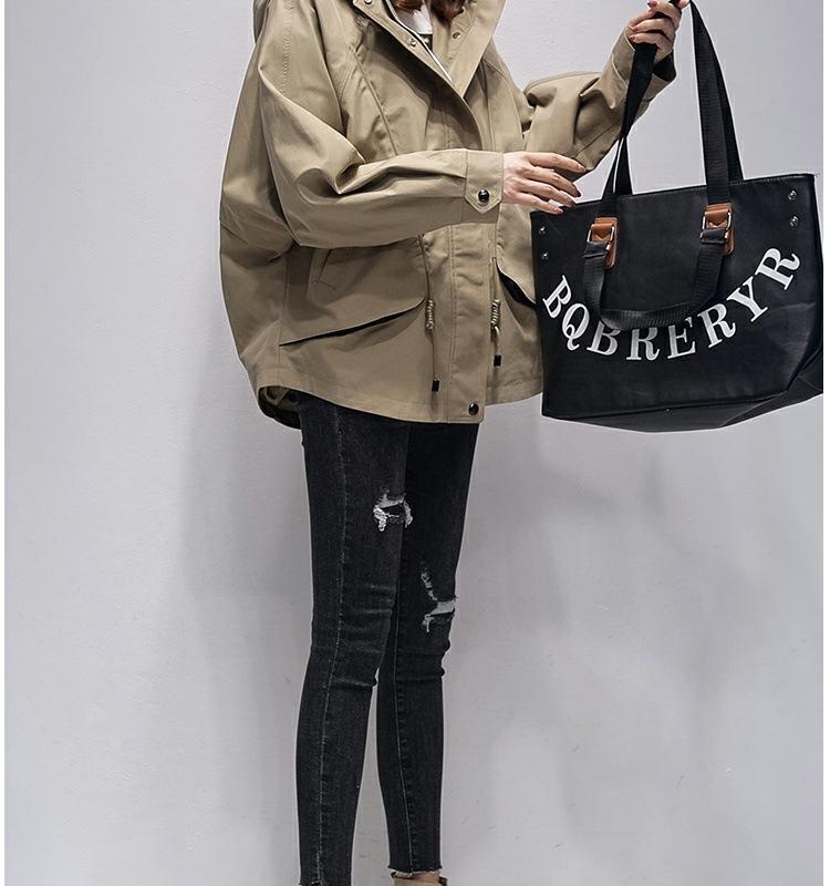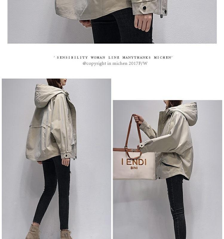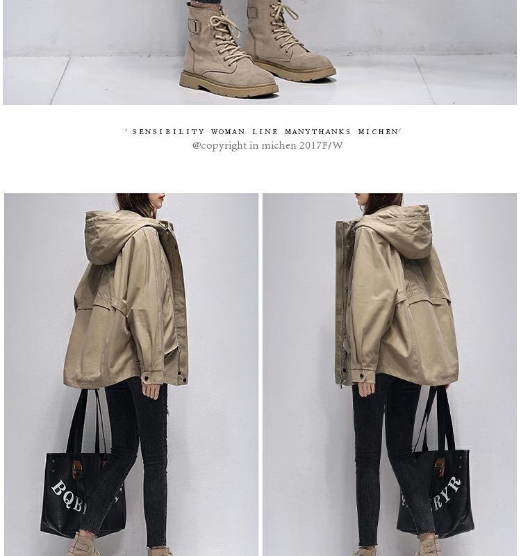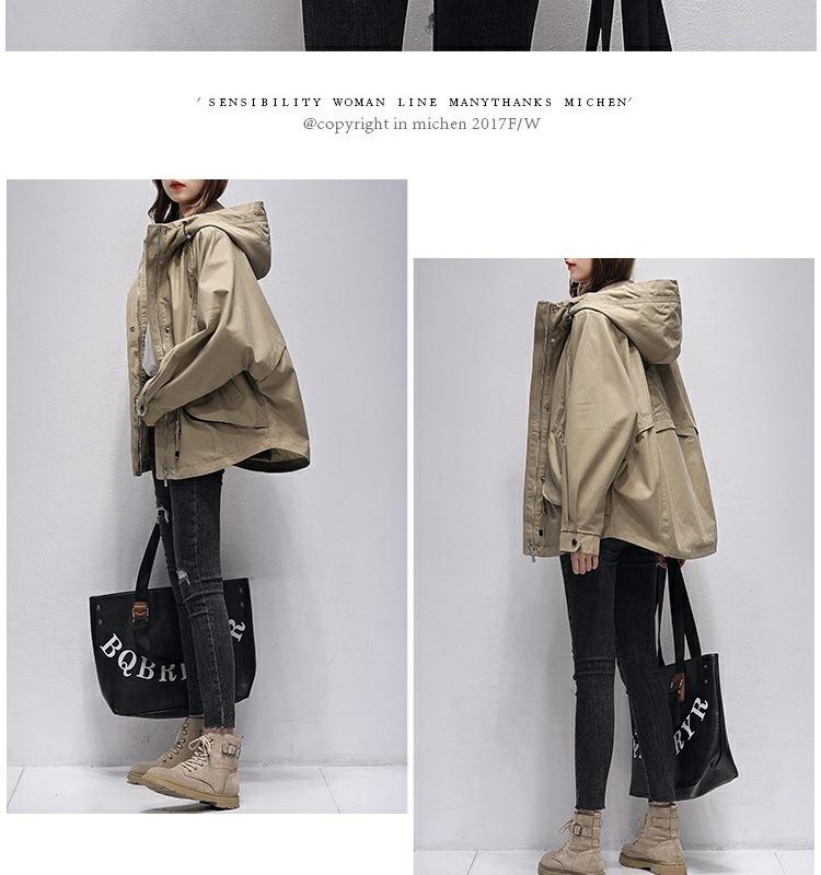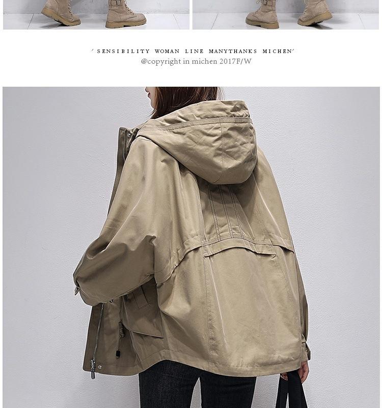 Abrigo Caqui Pequeño y Poco Profundo para Mujer Coreano con Capucha Estilo Utility Nueva Moda Otoño Invierno 2024 Abrigo Corto Versátil