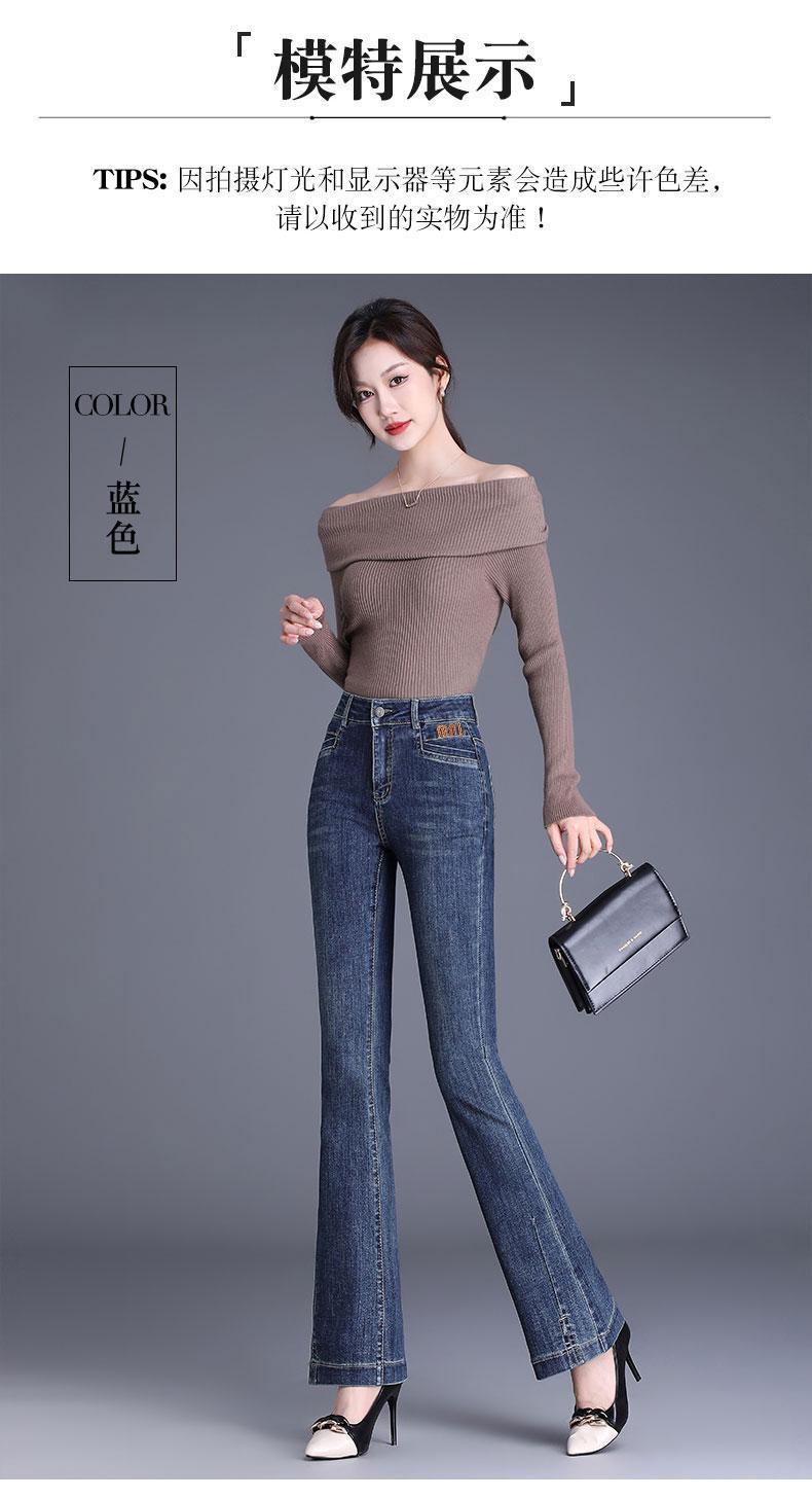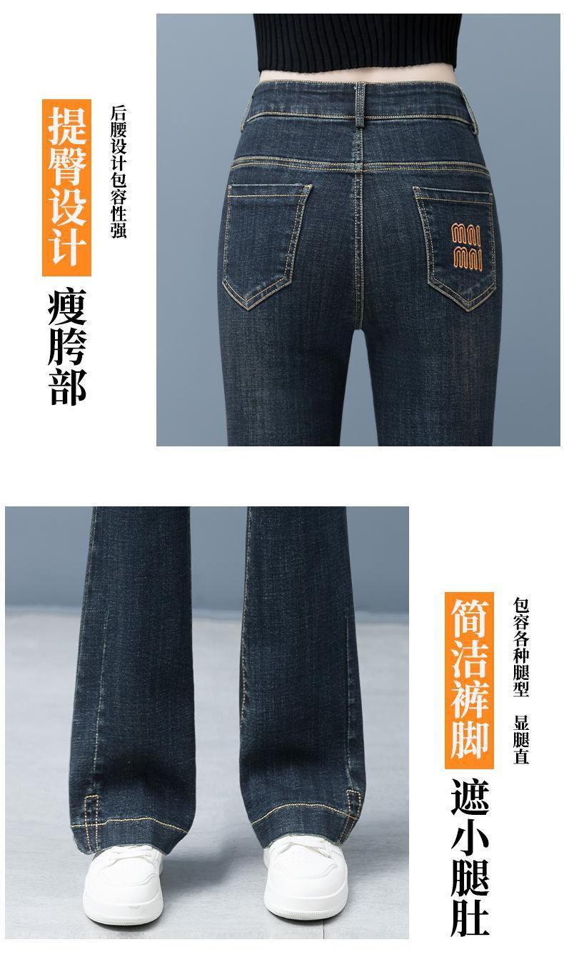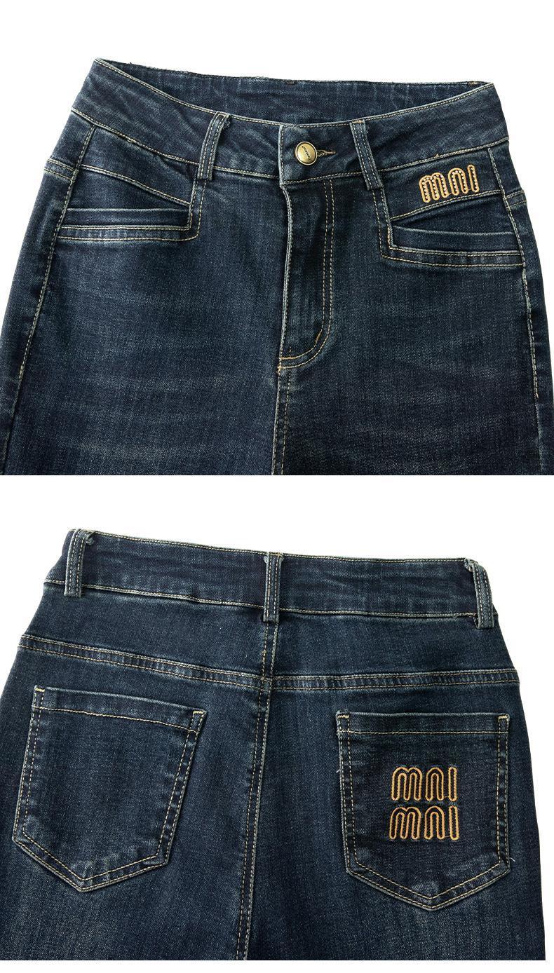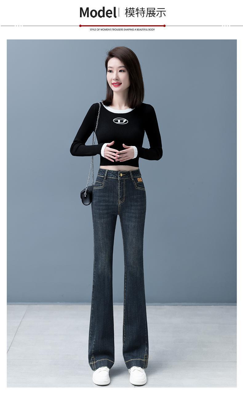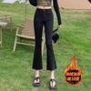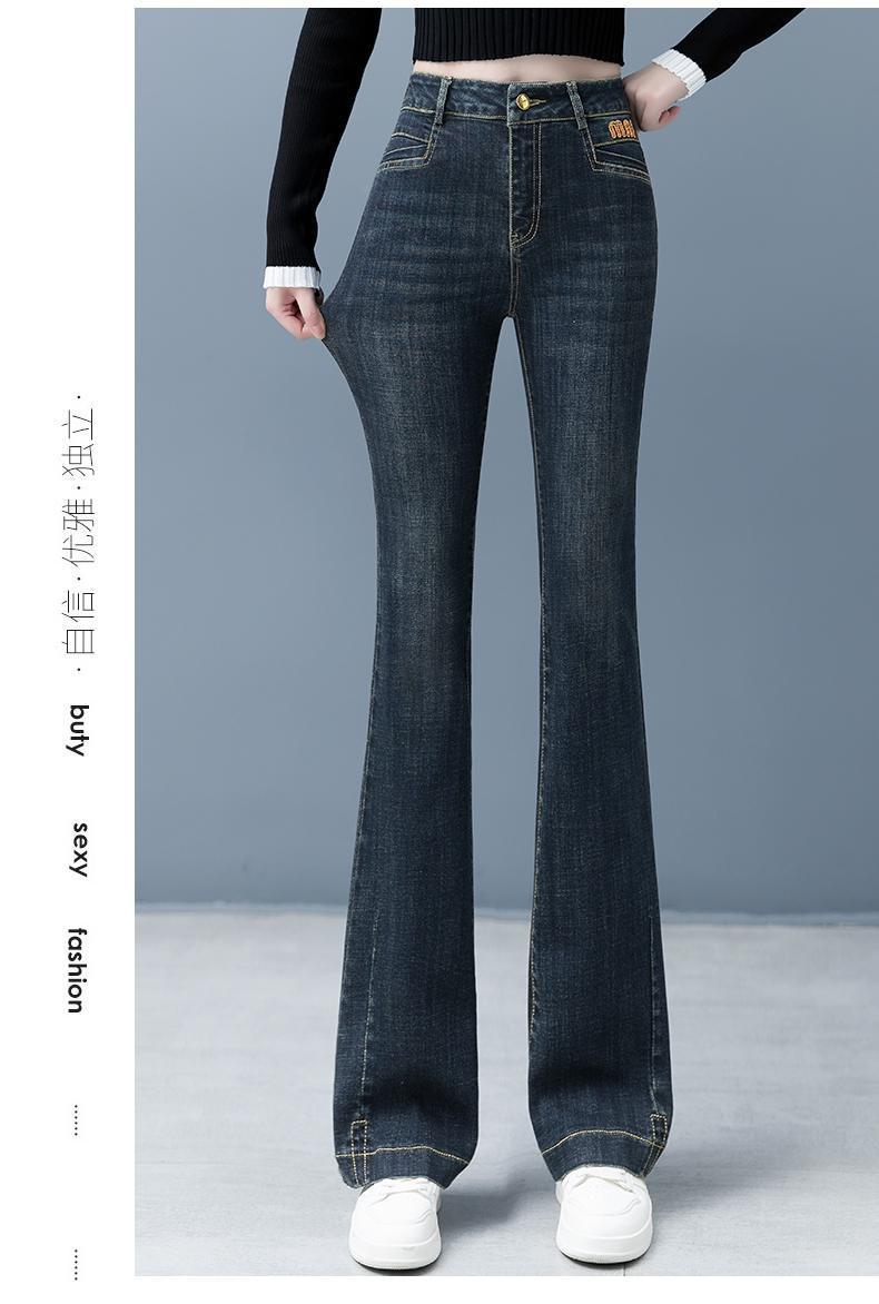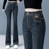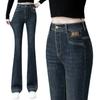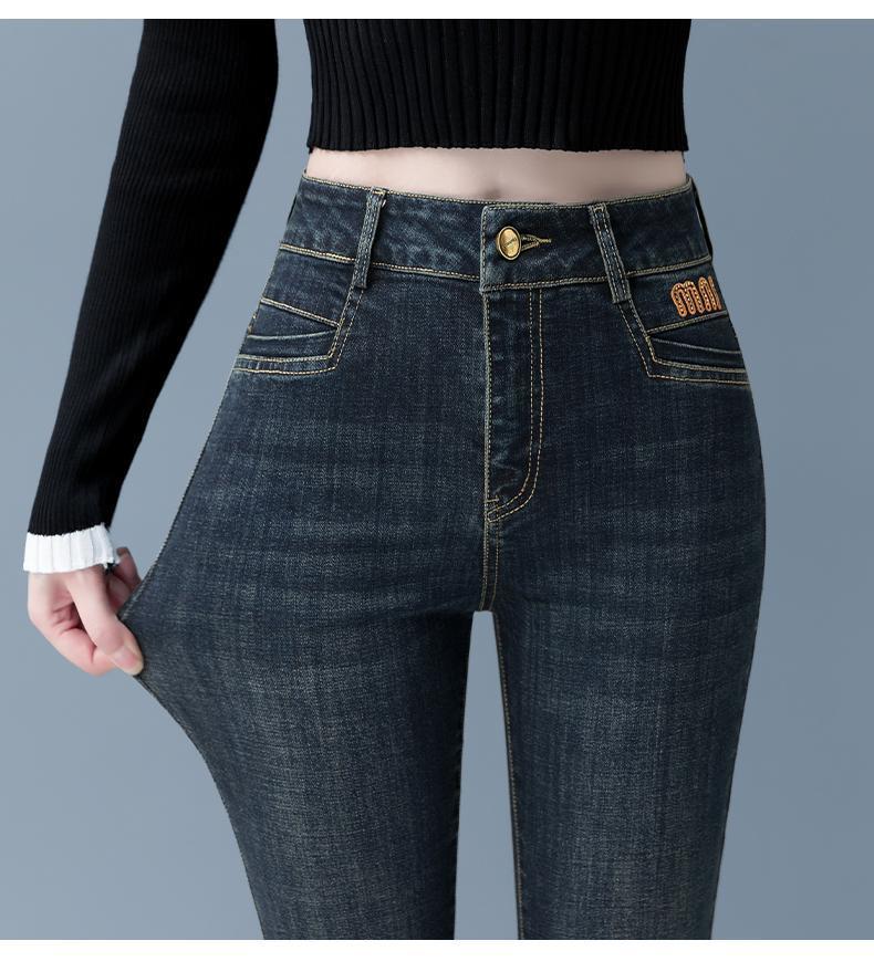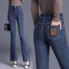 Pantalones Vaqueros Vintage con Forro de Micropolar para Mujer Otoño e Invierno Nuevo Cintura Alta Adelgazantes Elásticos Bordados Acampanados para Hombres Bajos