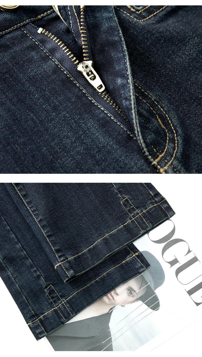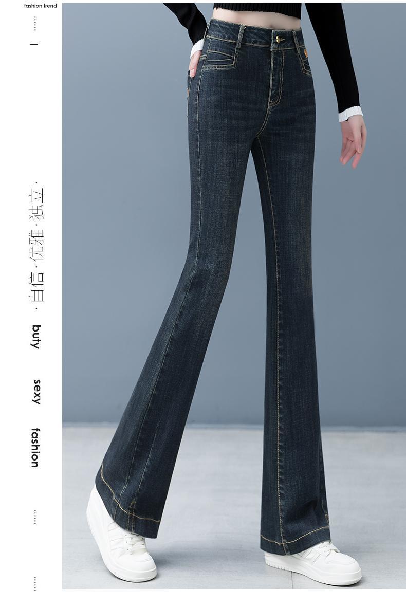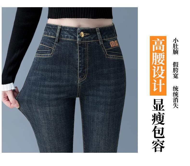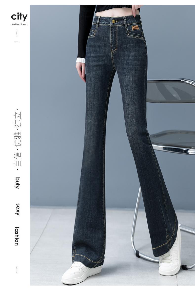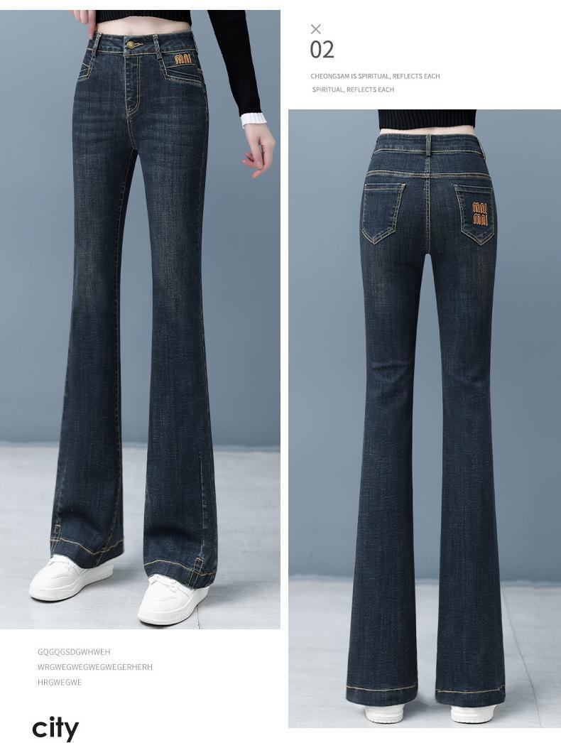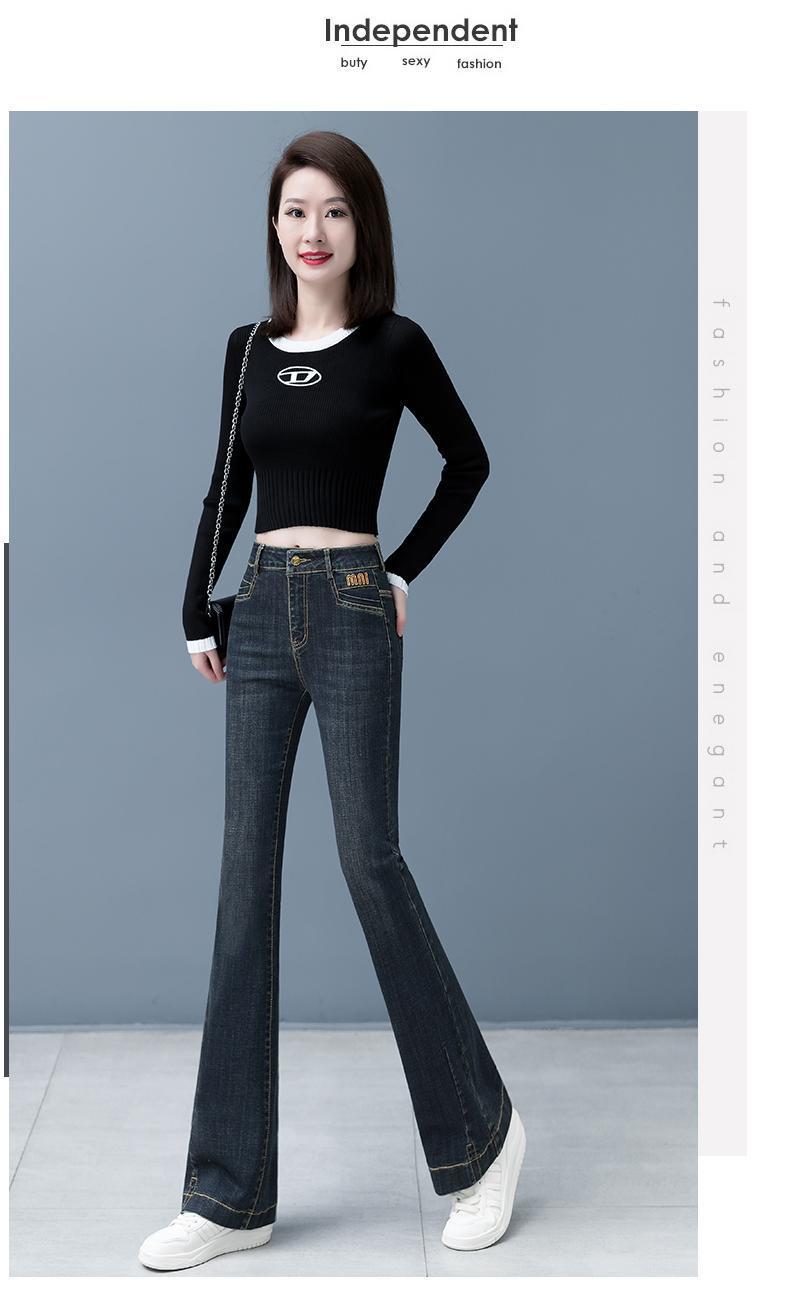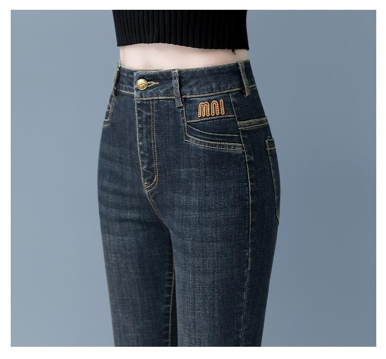 Pantalones Vaqueros Vintage con Forro de Micropolar para Mujer Otoño e Invierno Nuevo Cintura Alta Adelgazantes Elásticos Bordados Acampanados para Hombres Bajos