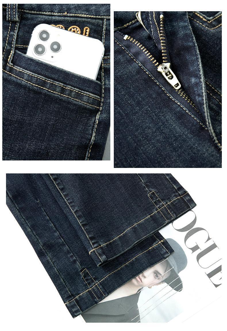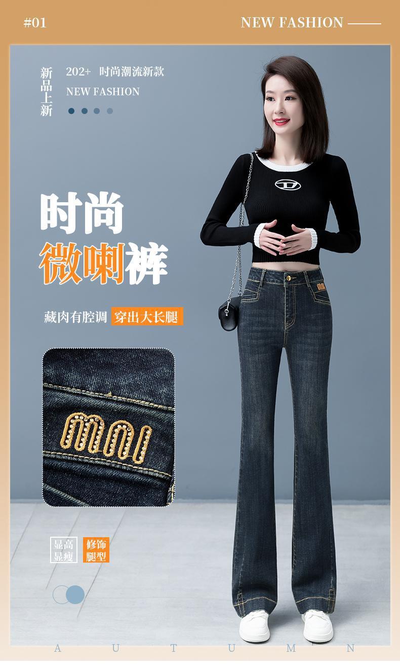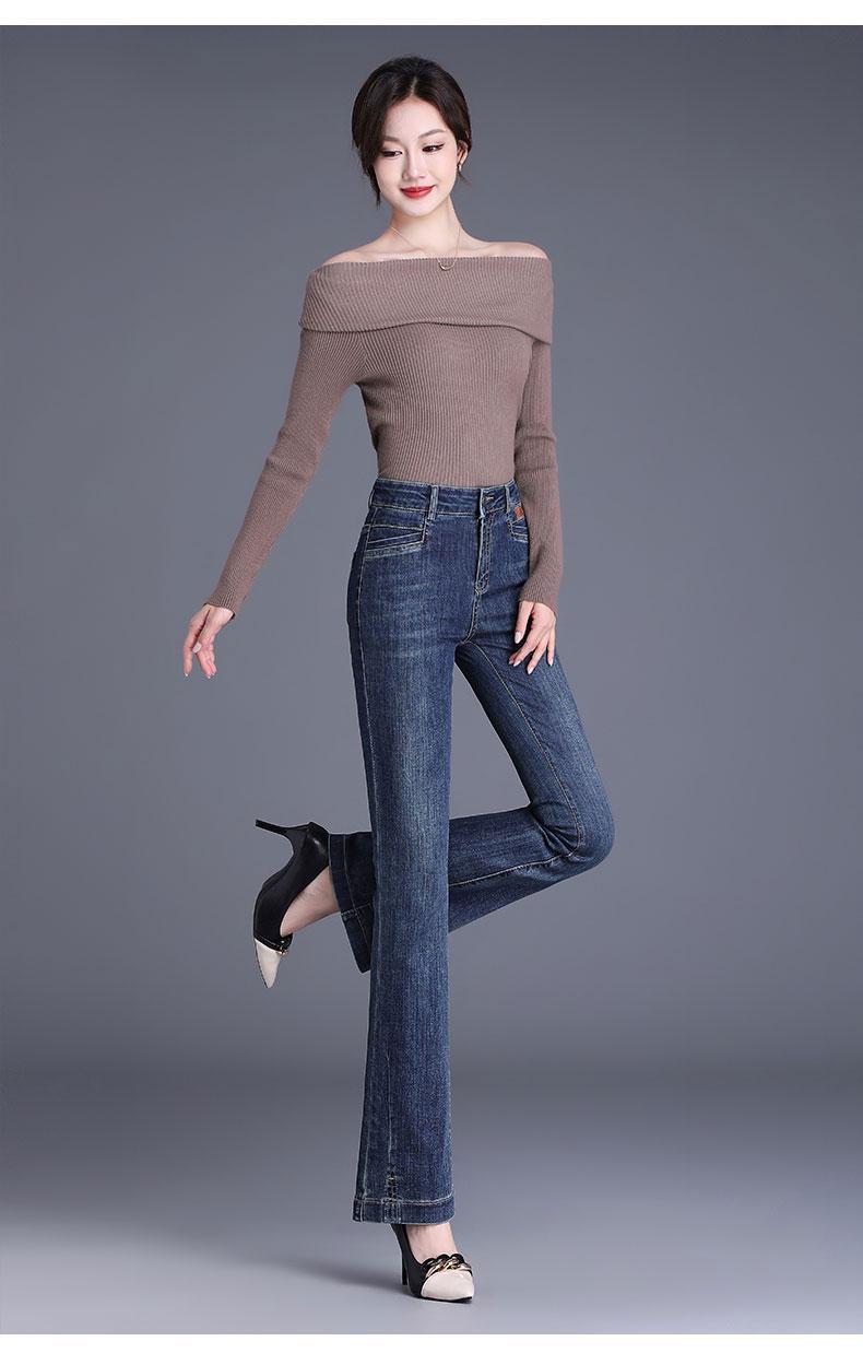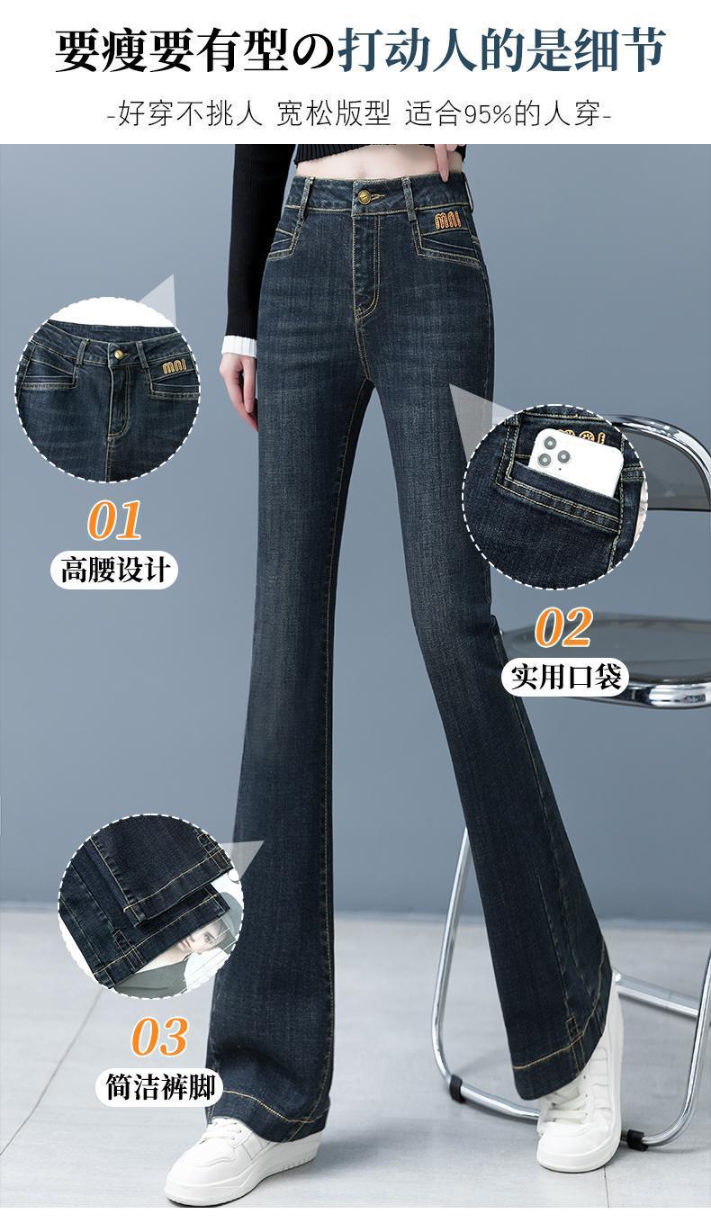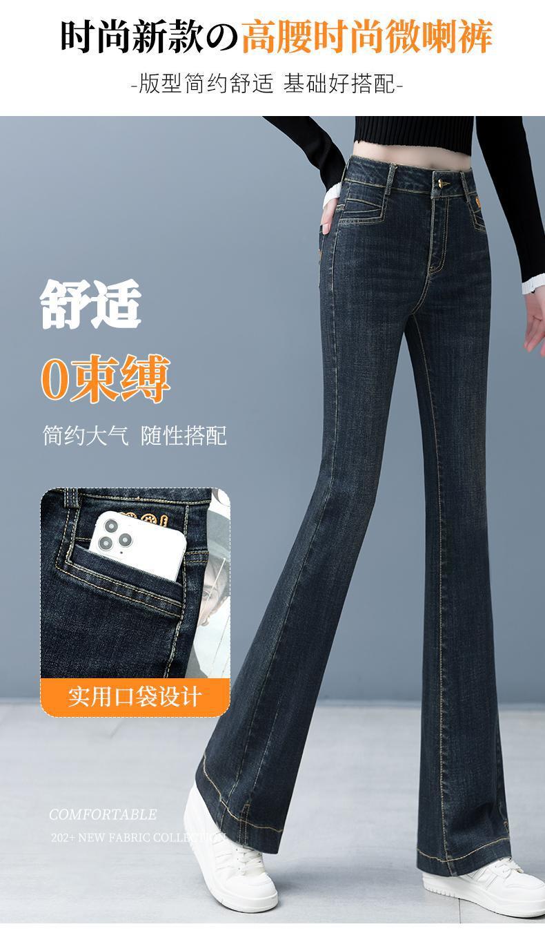 Pantalones Vaqueros Vintage con Forro de Micropolar para Mujer Otoño e Invierno Nuevo Cintura Alta Adelgazantes Elásticos Bordados Acampanados para Hombres Bajos
