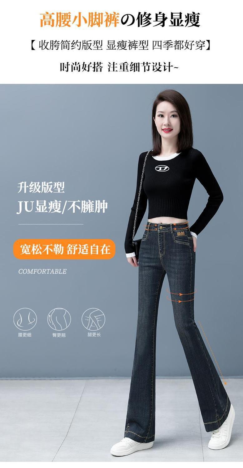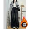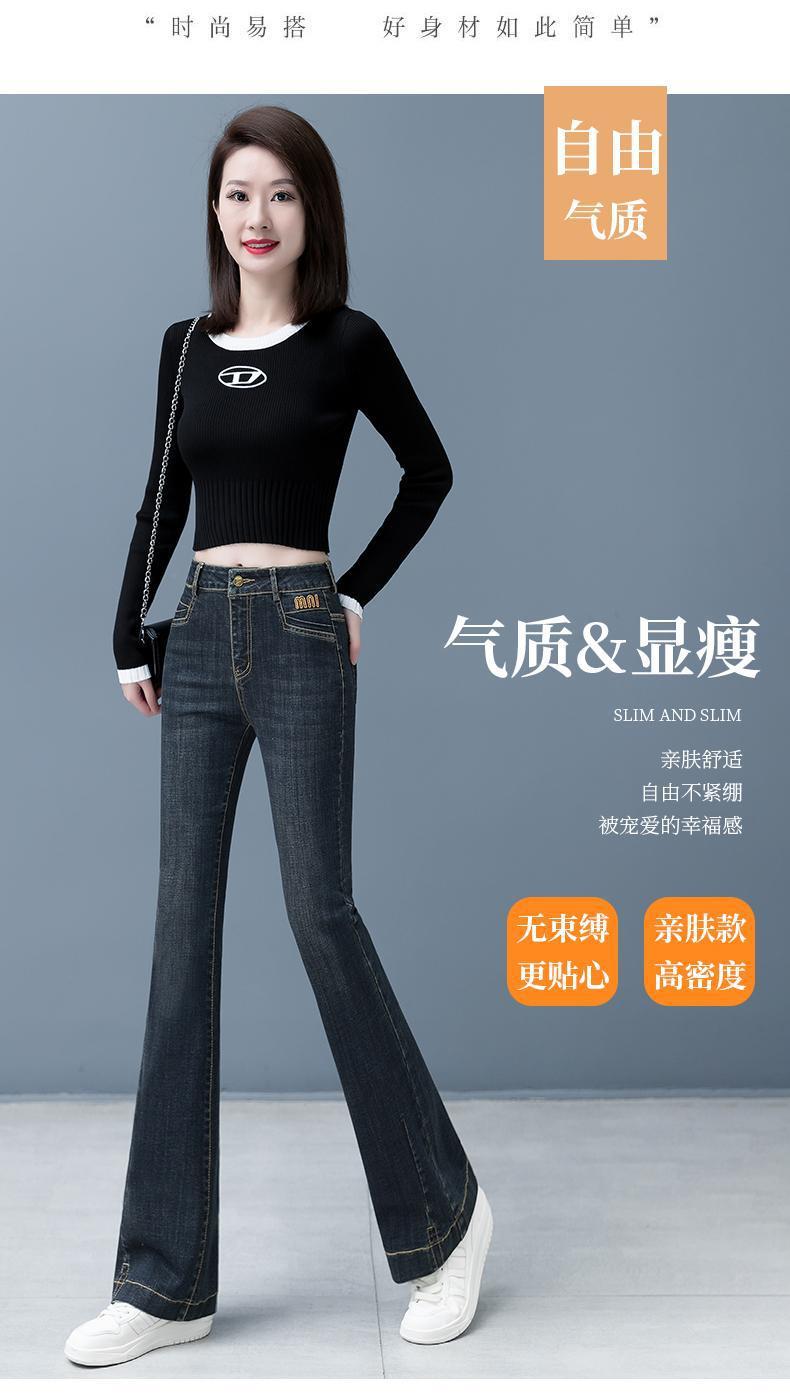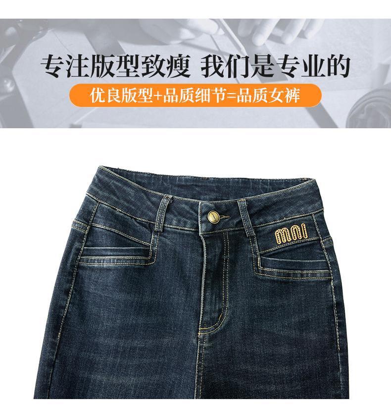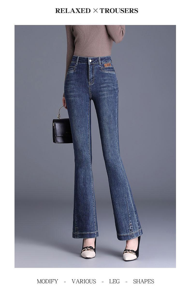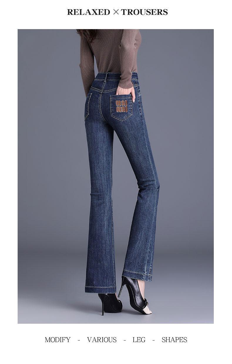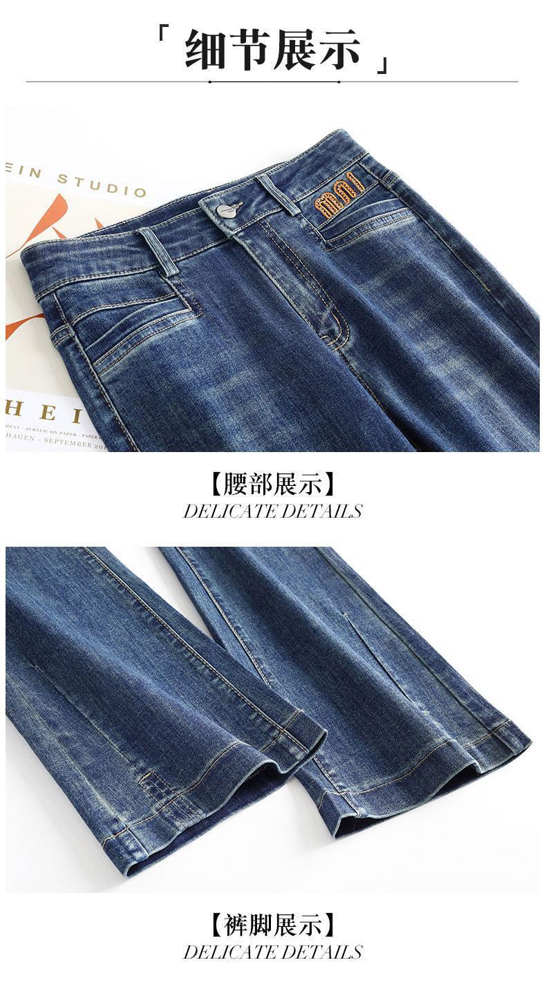 Pantalones Vaqueros Vintage con Forro de Micropolar para Mujer Otoño e Invierno Nuevo Cintura Alta Adelgazantes Elásticos Bordados Acampanados para Hombres Bajos