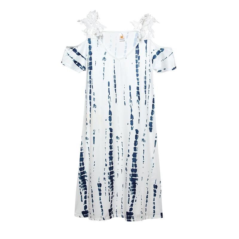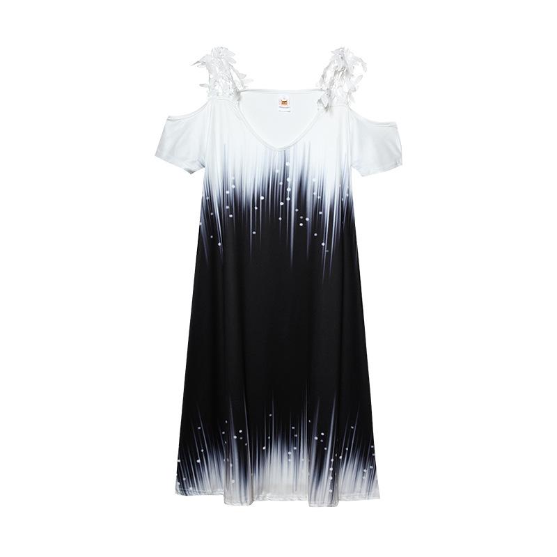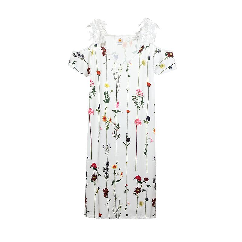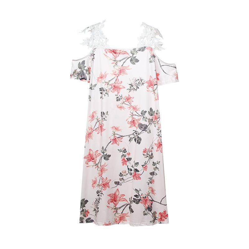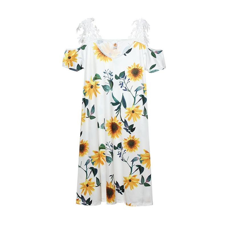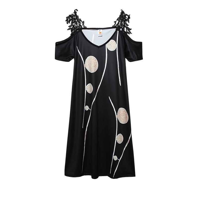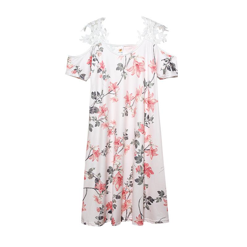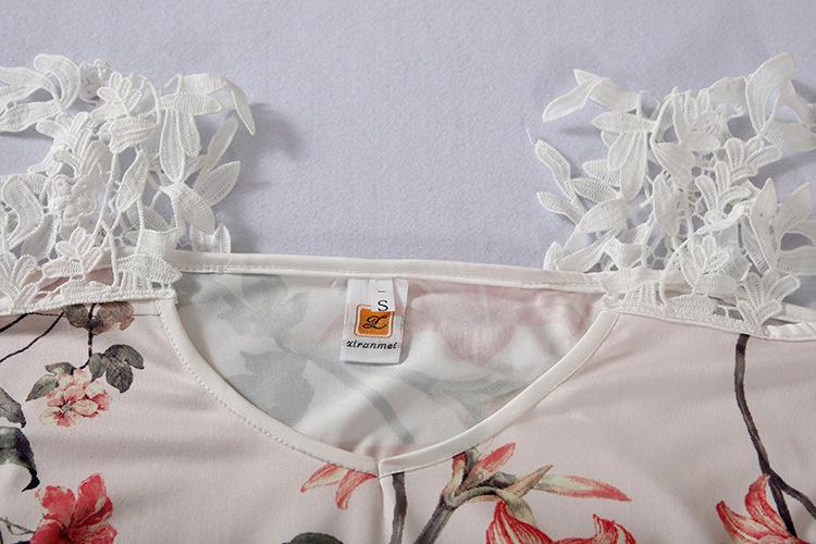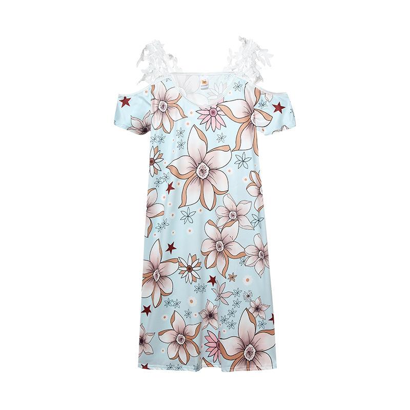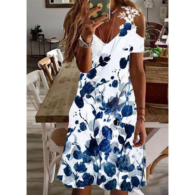 Vestido de Verano Europeo y Americano para Mujer con Estampado de Amazonas, Encaje en Hombros y Manga Corta