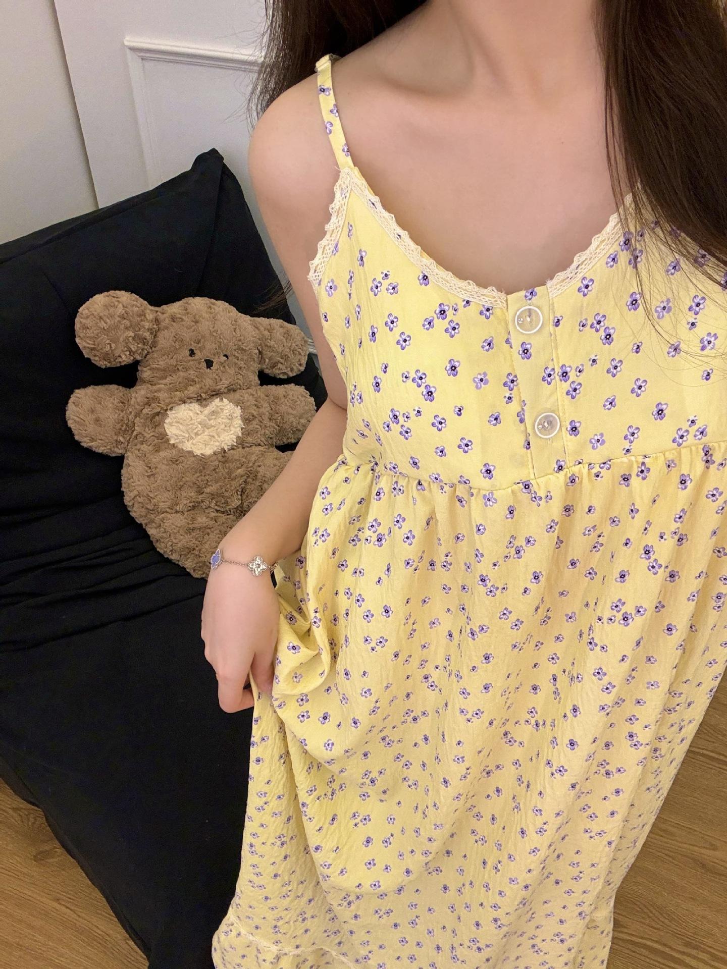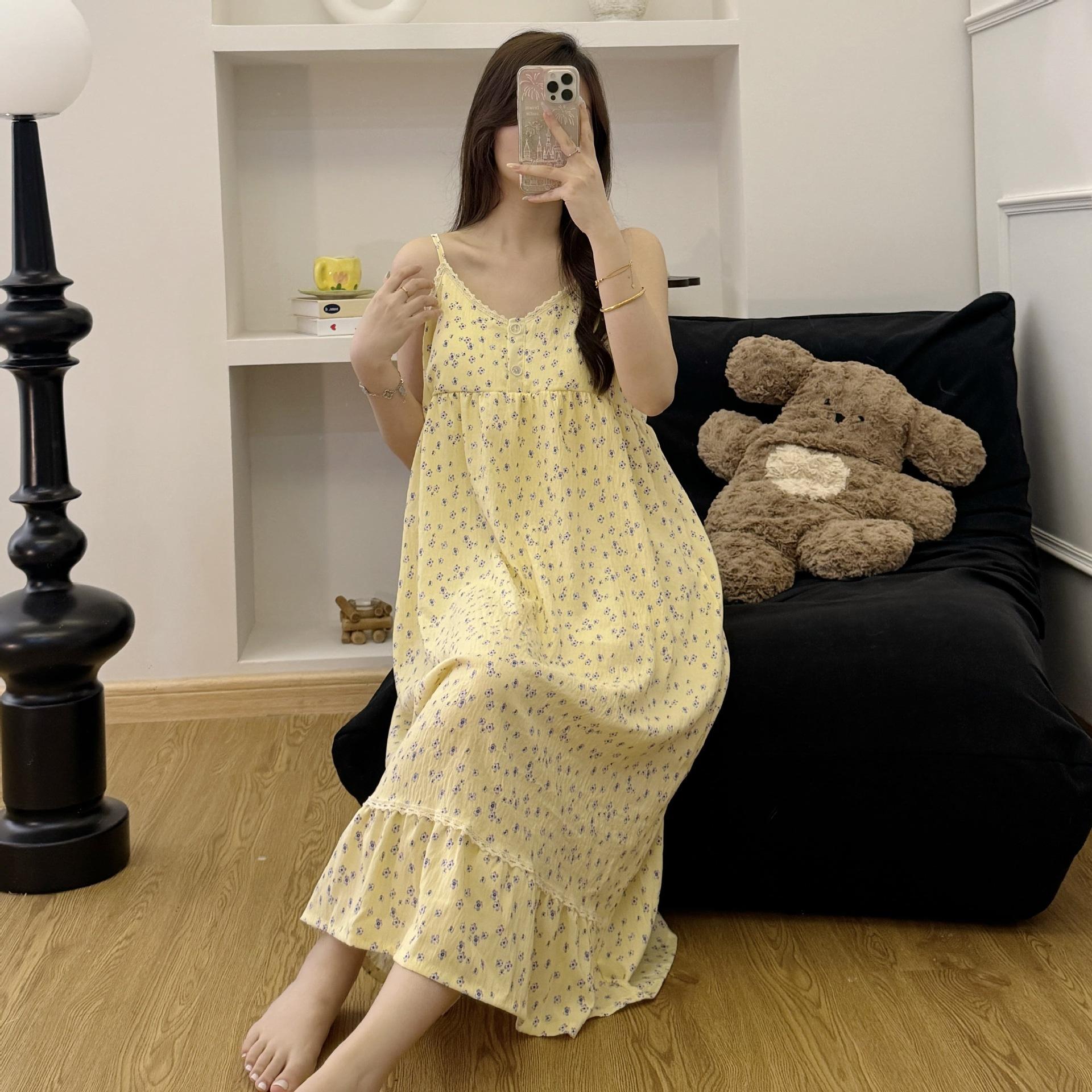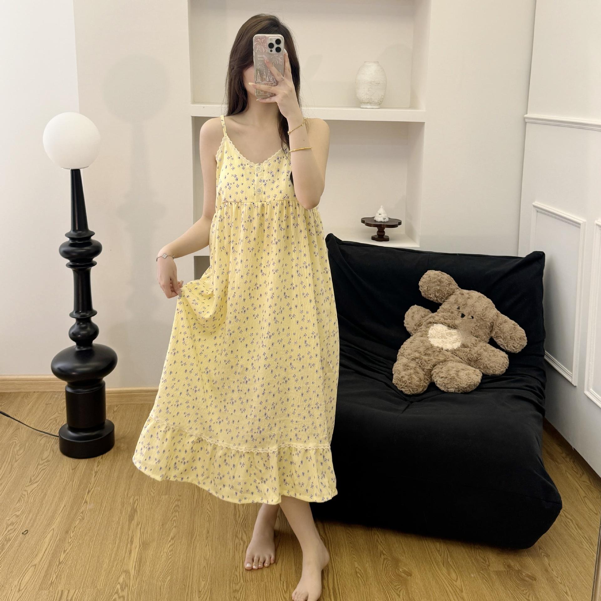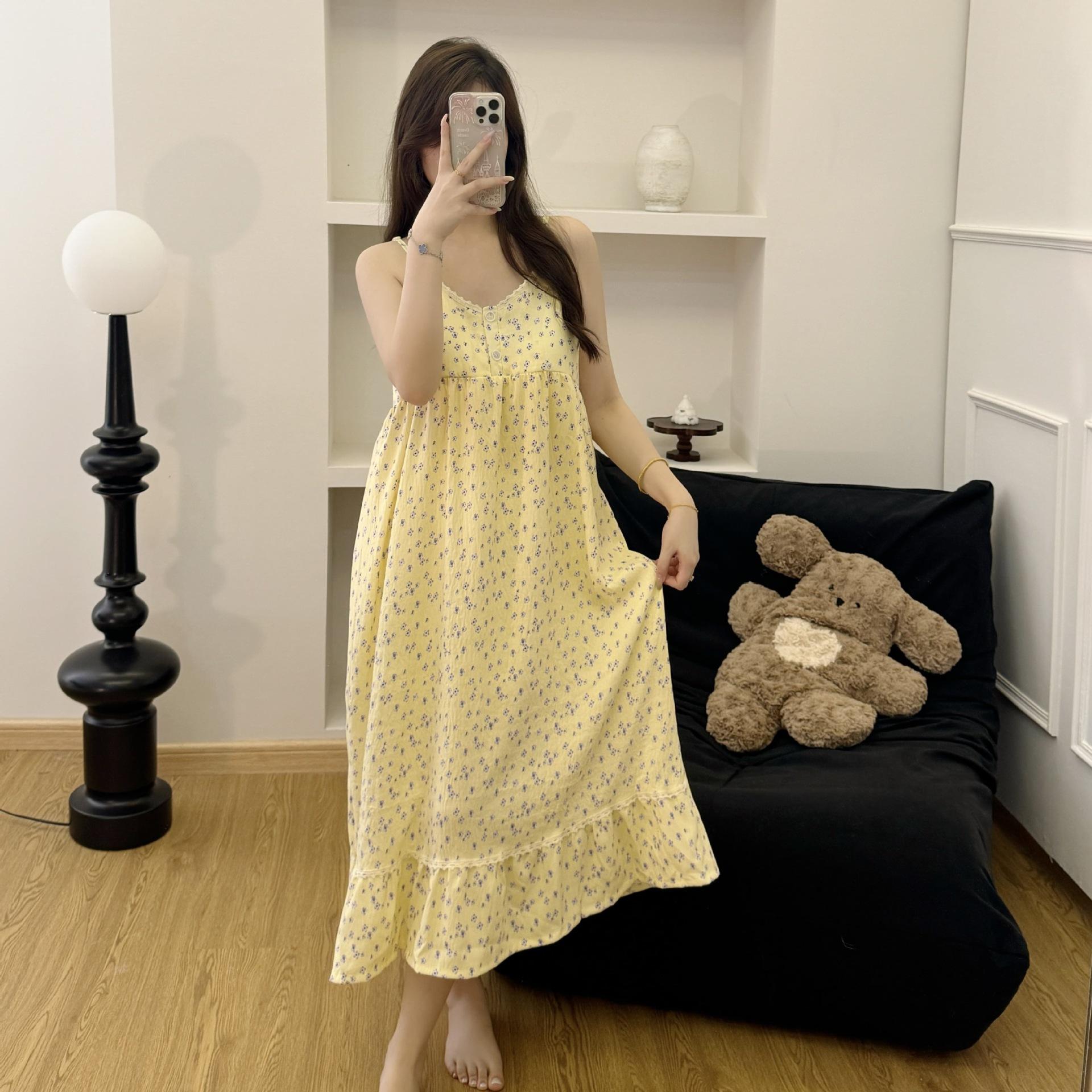 Camisón Floral de Algodón Nube con Tirantes para Mujer Verano con Almohadillas para el Busto Sexy Fresco y Dulce Vestido de Pijama Ropa Delgada para el Hogar