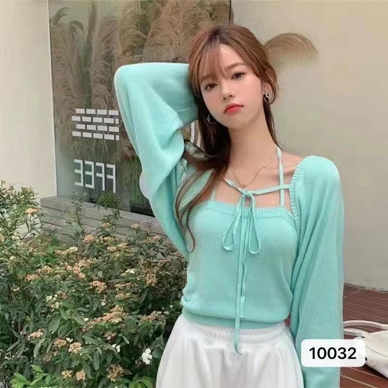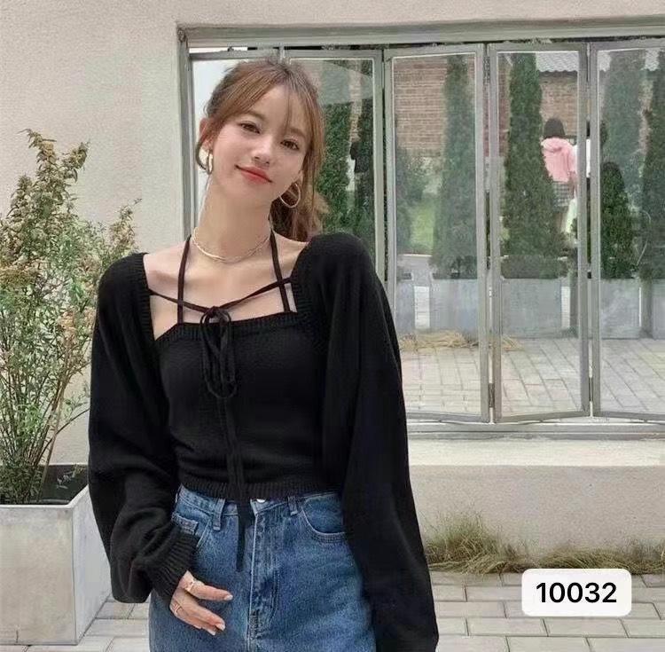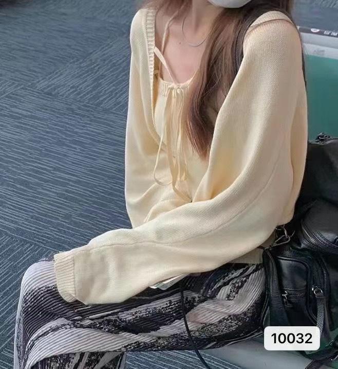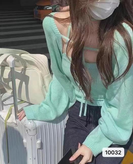 Ropa de Mujer Transfronteriza con Camisola Interior, Nuevo Diseño de Otoño, Cárdigan de Manga Larga a la Moda para Protección Solar, Traje de Dos Piezas