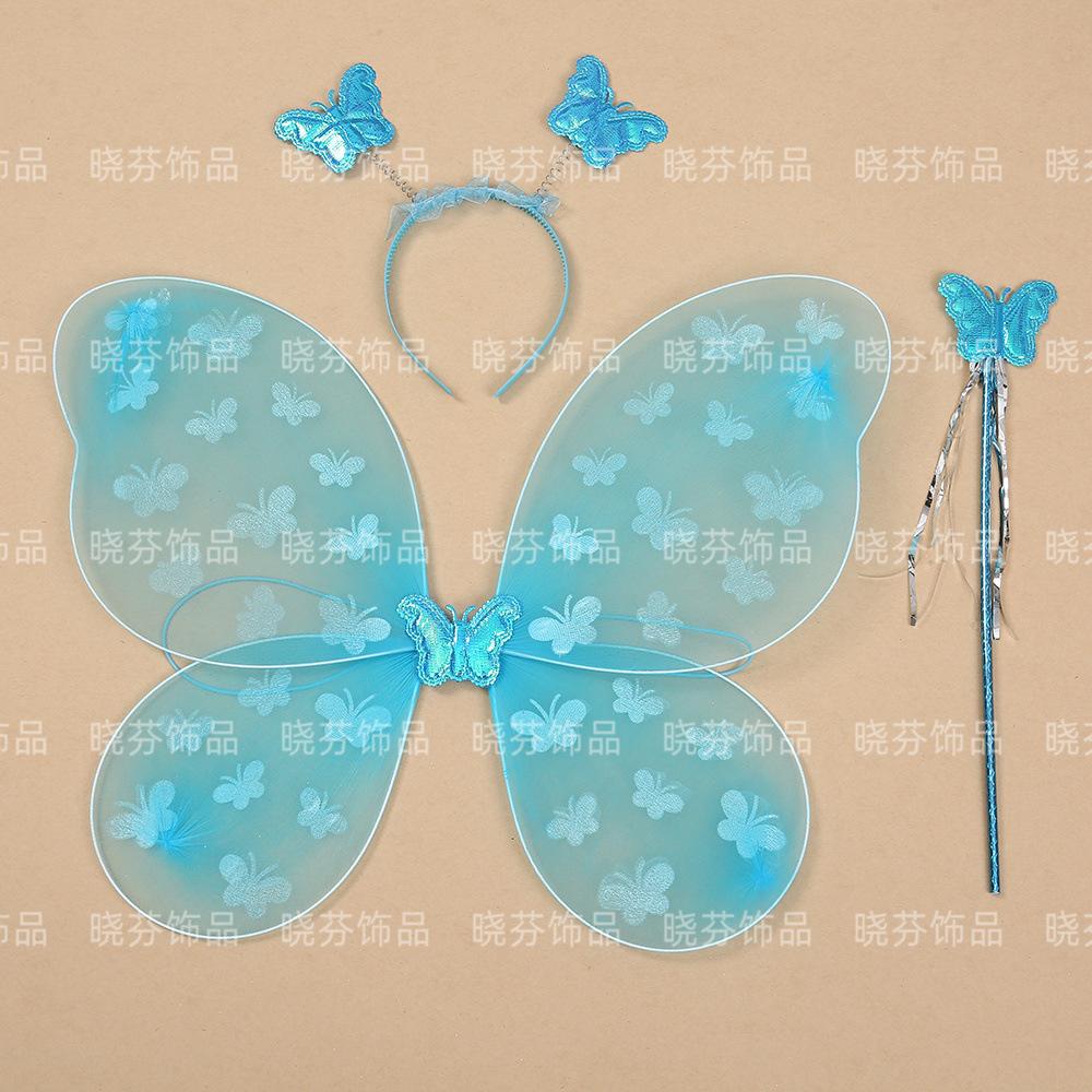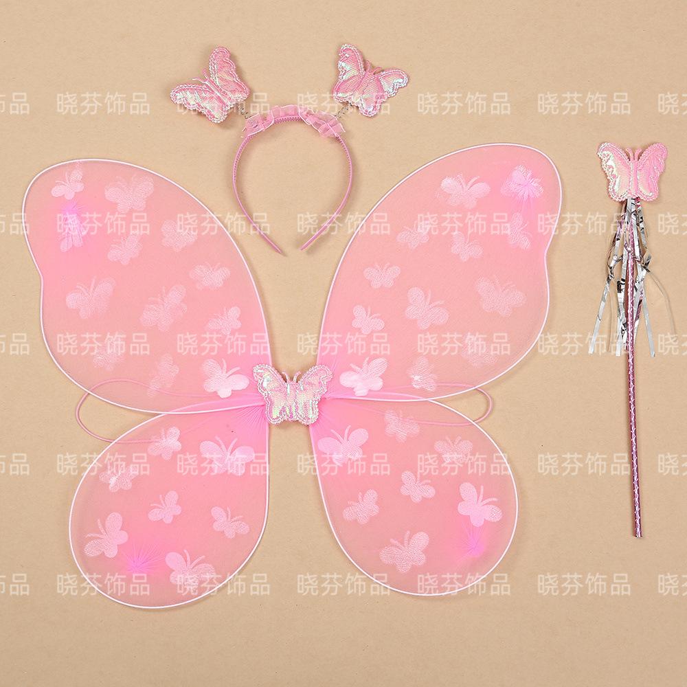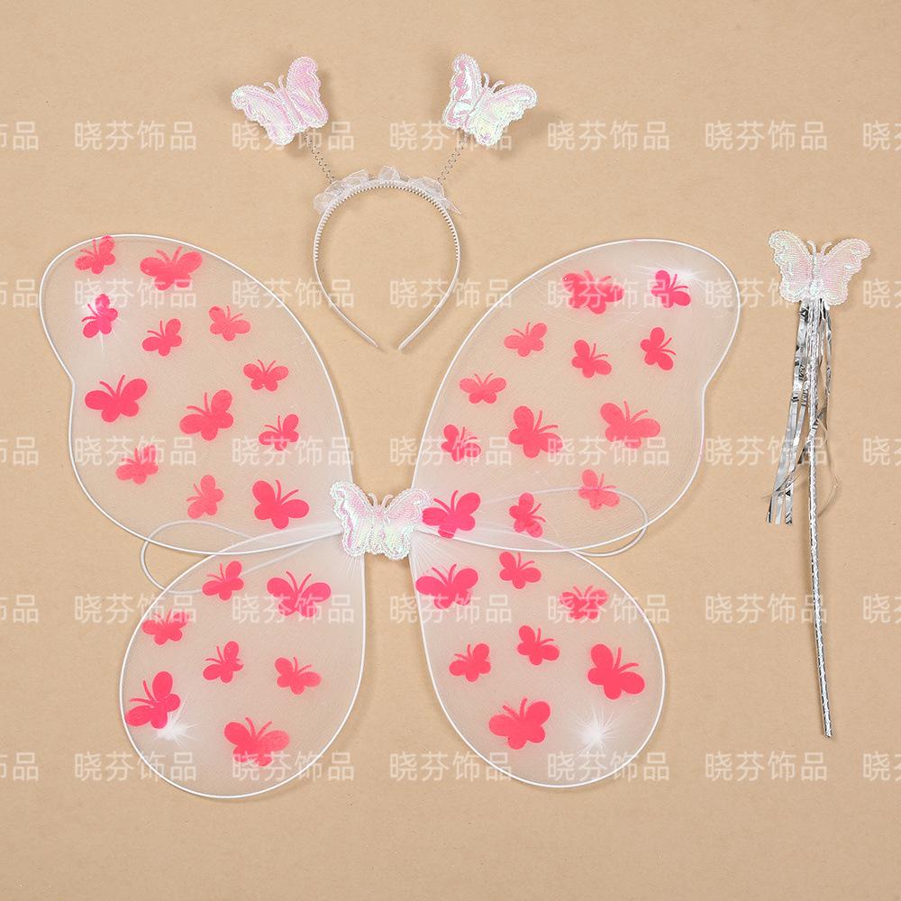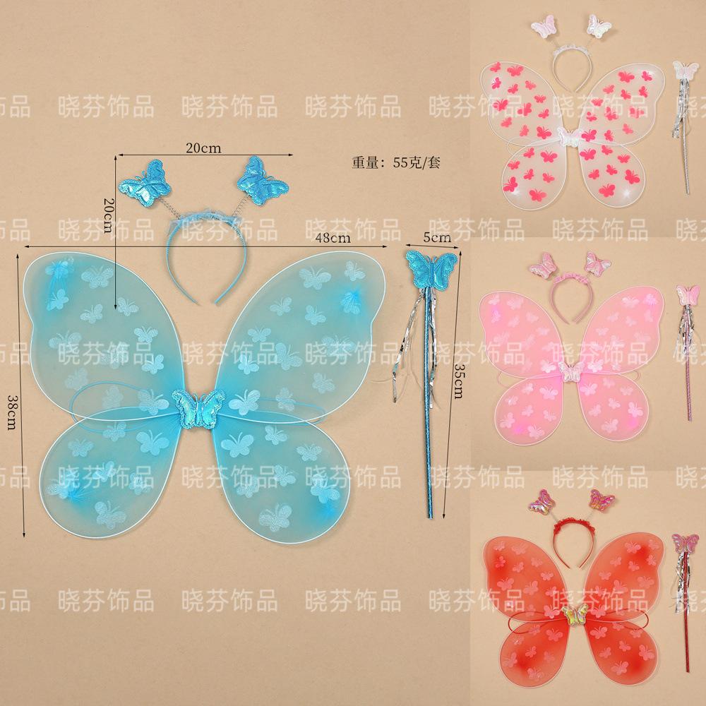 Alas transfronterizas estampado de mariposa adornos de espalda para niños diadema de varita mágica juguetes de hada de las flores juego de tres piezas para niños fabricantes venta al por mayor