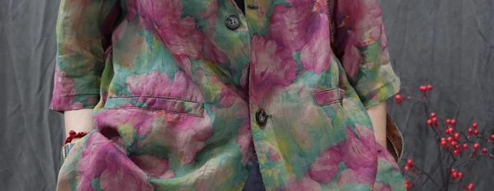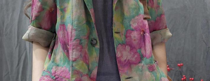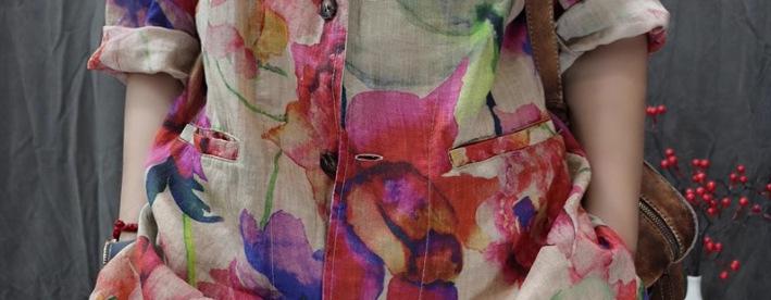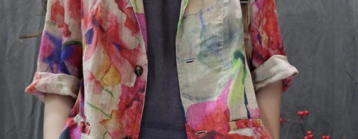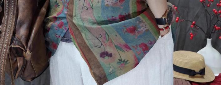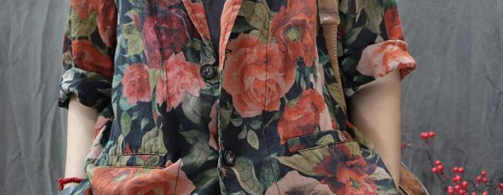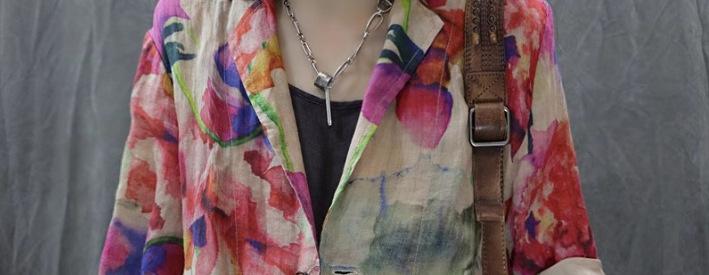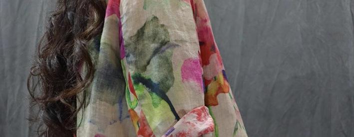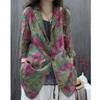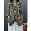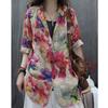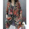Otoño y Verano 2025 Nuevo Estilo Retro Algodón y Lino Estampado Talla Grande Camisas Casuales Holgadas Versátiles de Manga Larga para Mujer