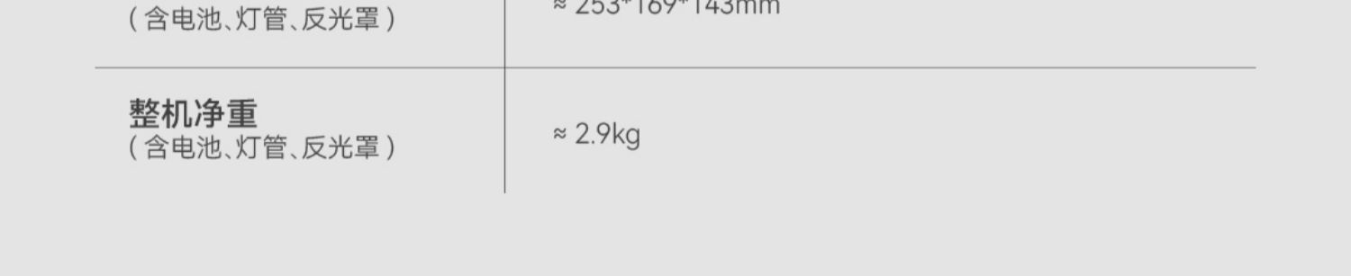 Body (1), lamp (1), lithium battery (1), charger (1) power cord (1),