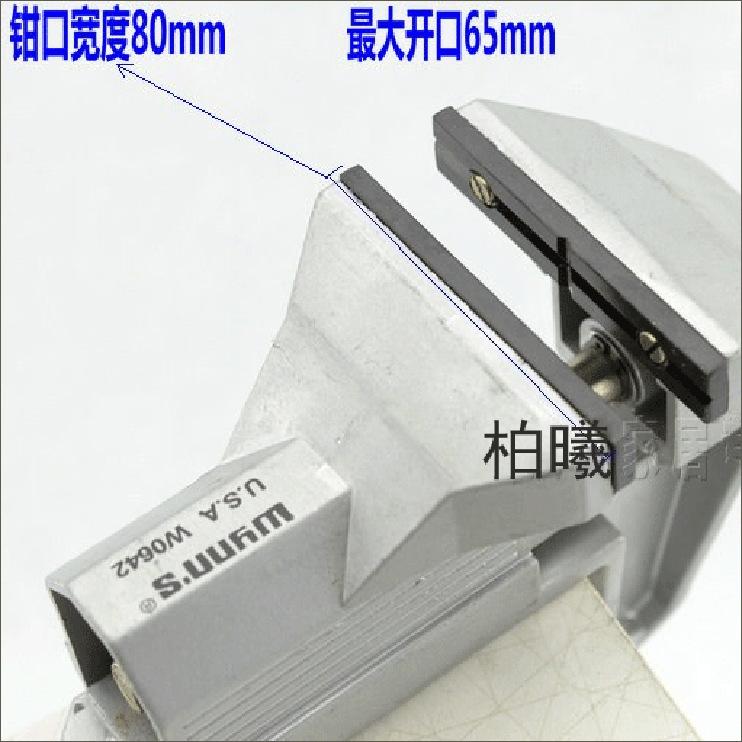 ◆ Parámetros técnicos: Dimensión del ancho de la mordaza 80 mm, tamaño máximo de apertura 65 mm, ángulo giratorio 90°