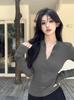 2024 Verano nuevo estilo coreano cuello en V hombros descubiertos ajuste ceñido sexy camiseta a rayas manga corta adelgazante camisa base top ropa de mujer