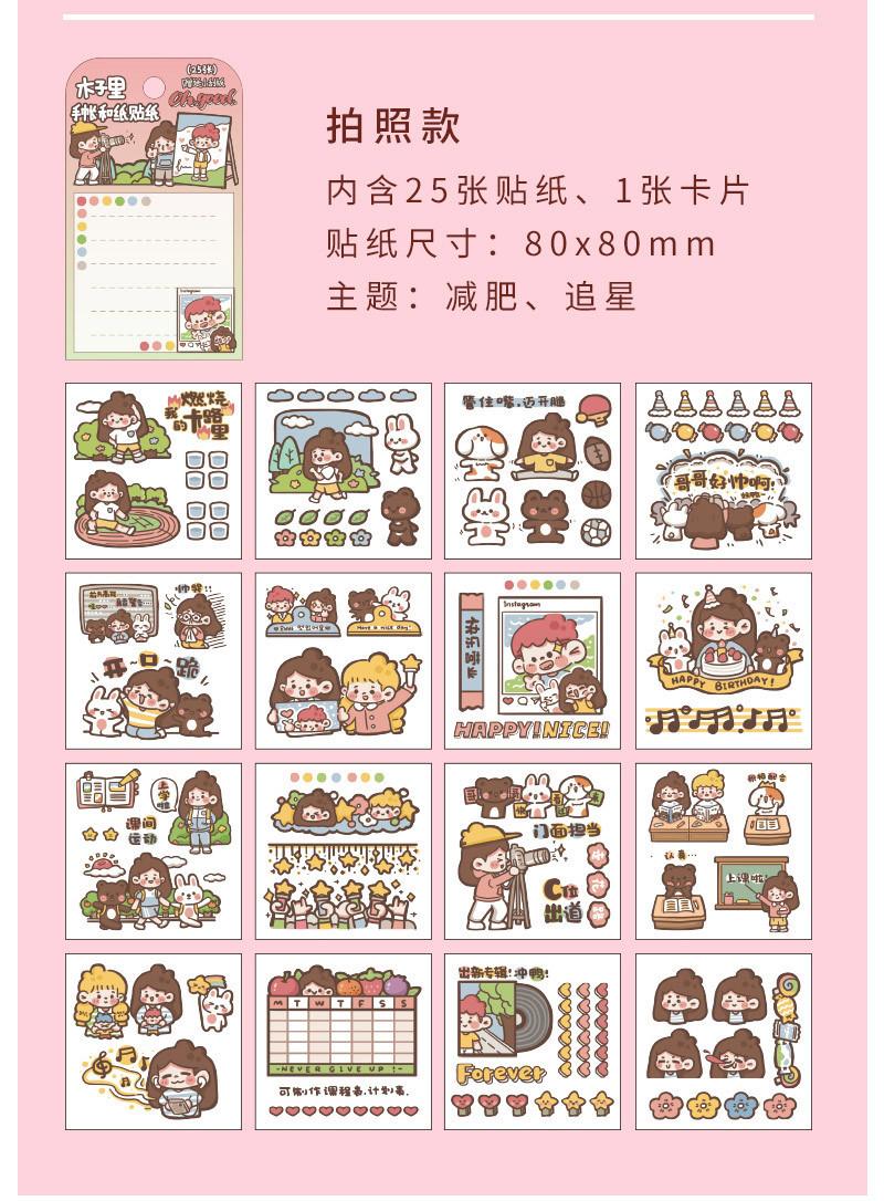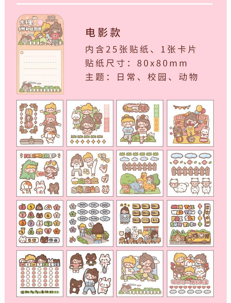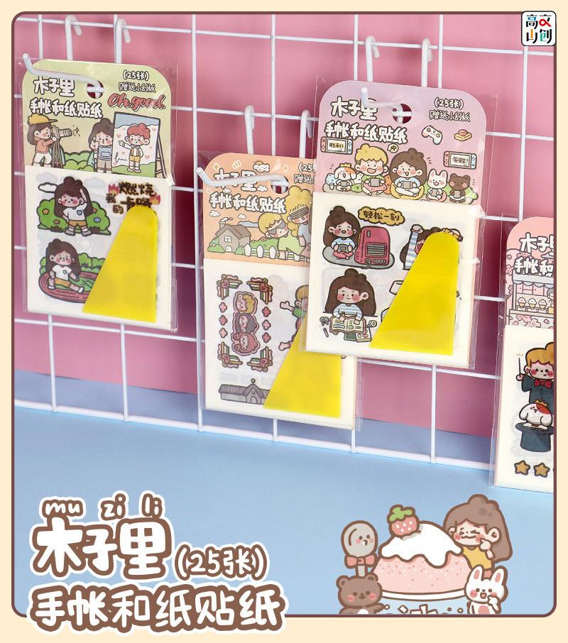 Nueva pegatina de Muzi con pala amarilla, material de decoración para cuenta de mano linda y papel para collage de cuenta de mano DIY, papel 25 hojas