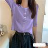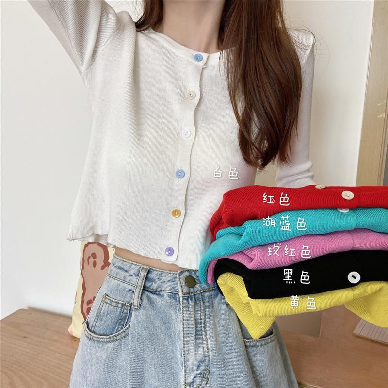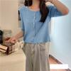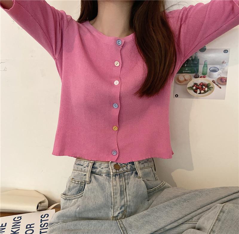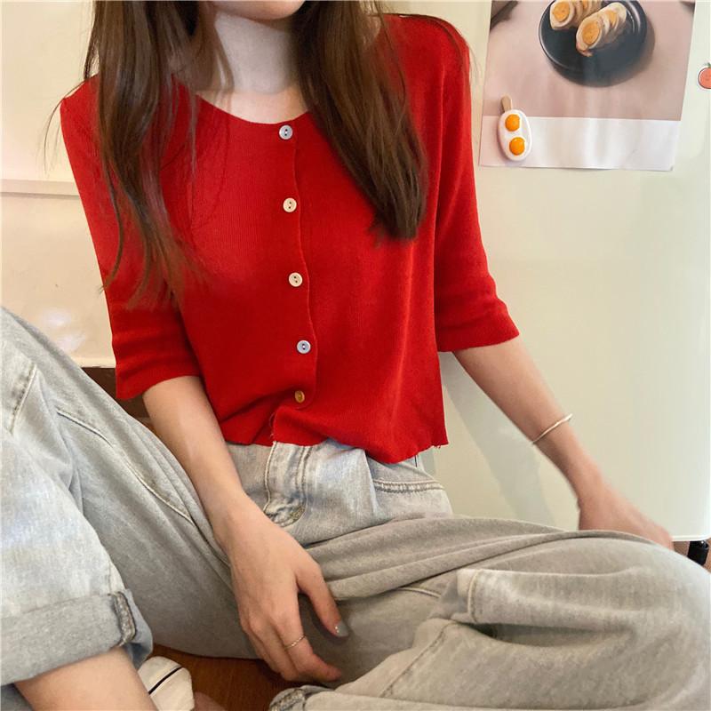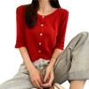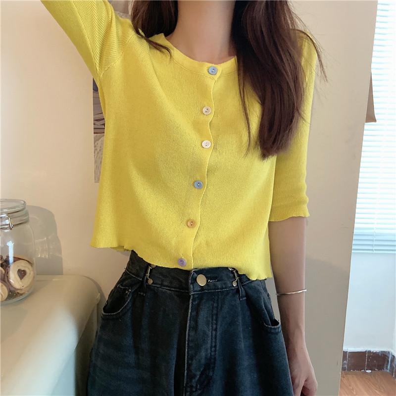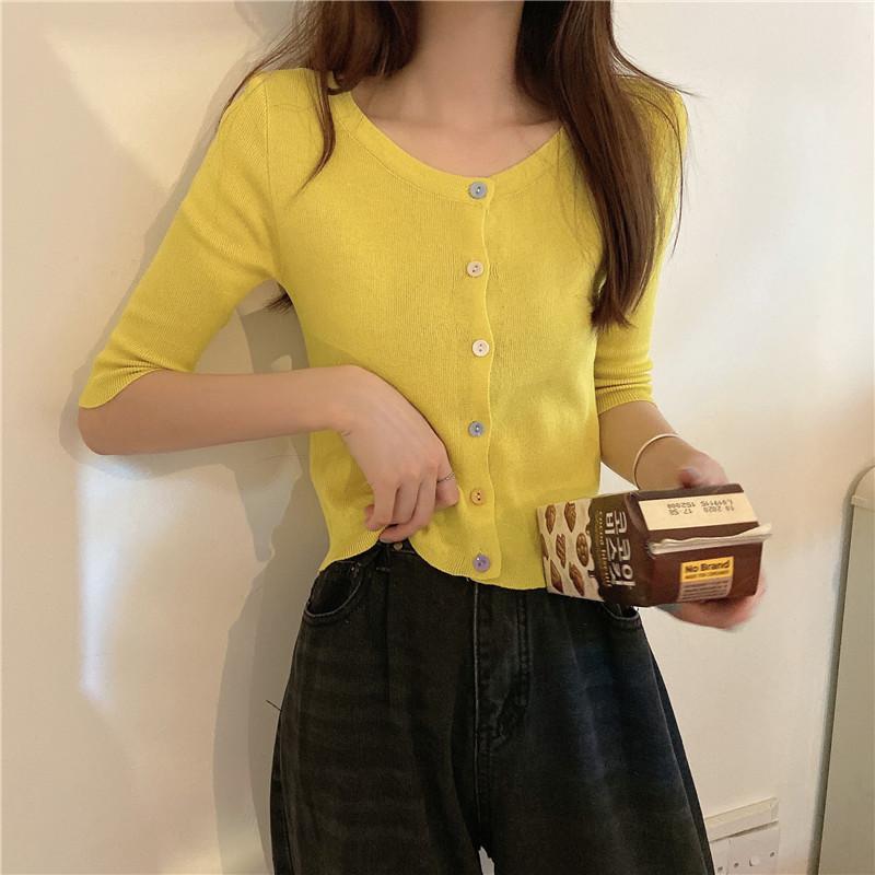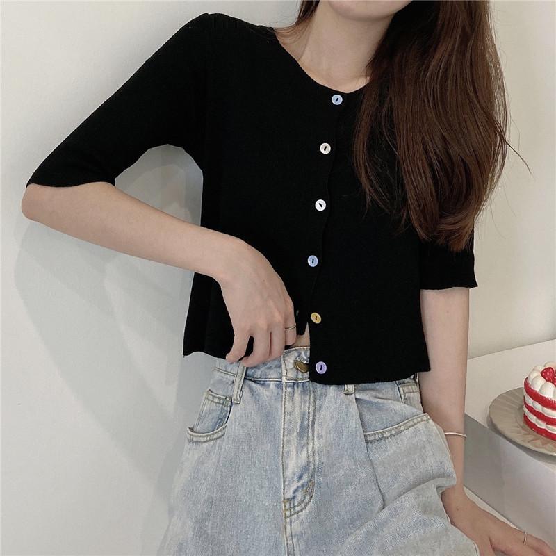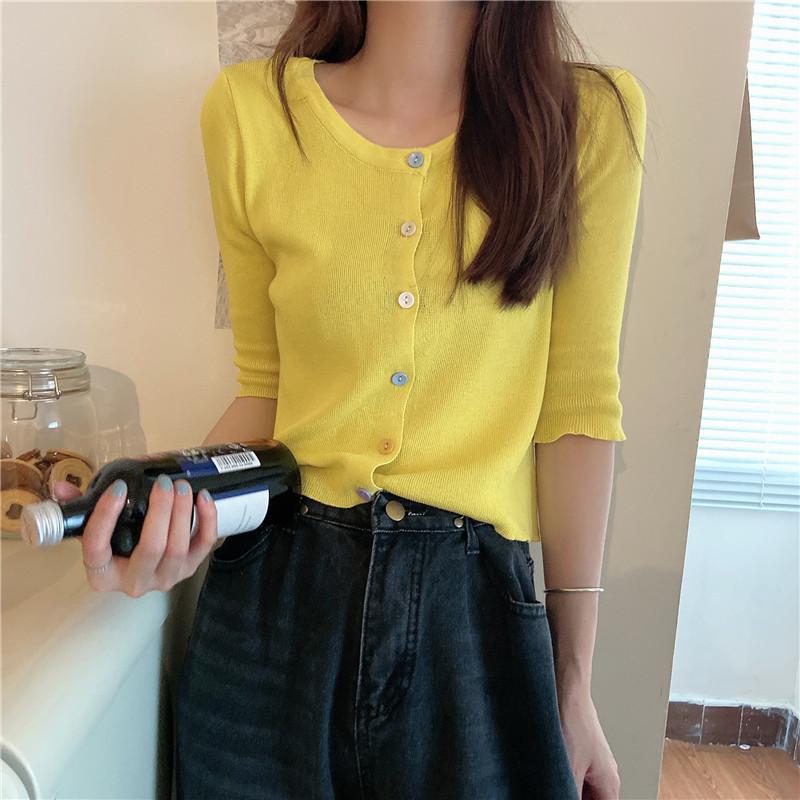 Cárdigan corto elegante de punto para mujer, estilo coreano nuevo 2024, corte entallado, adelgazante, cuello redondo, seda fría colorida, manga corta