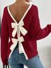 Nuevo Tejido de Punto Europeo y Americano Otoño e Invierno para Mujer Moda Transfronteriza Amazon Decorativo Lazo en la Espalda Tejido de Punto Jersey de Cuello Redondo