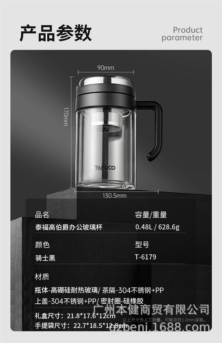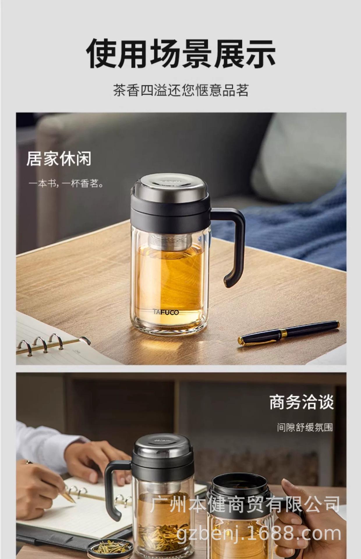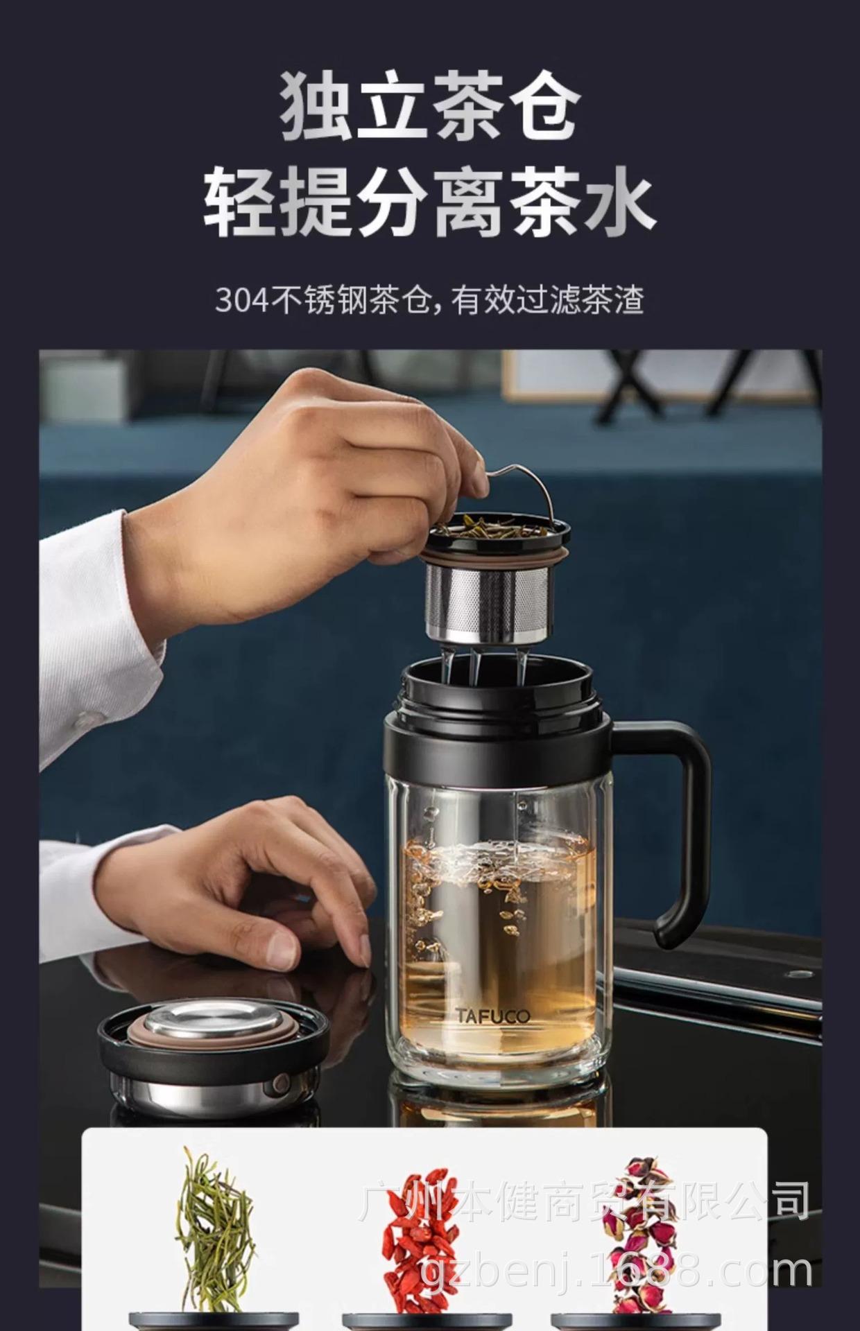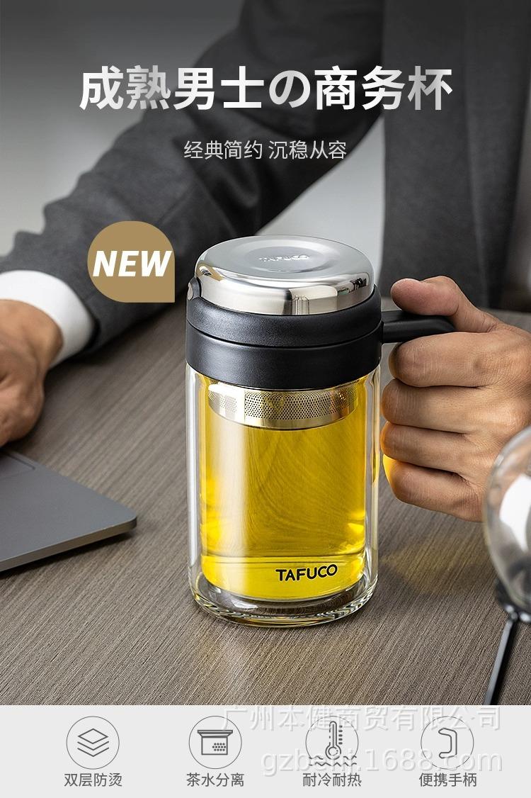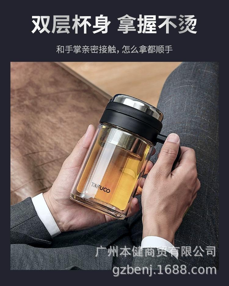 Taza de Té Japonés Taifu para Hora del Té Taza de Agua con Separación de Agua Taza de Agua para Exterior Aislada con Filtro Taza de Vidrio para Té de Oficina