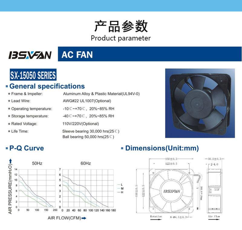 Ventilador de refrigeración AC 15050 110V 220V resistente a altas temperaturas impermeable red equipo de control industrial ventilador de refrigeración