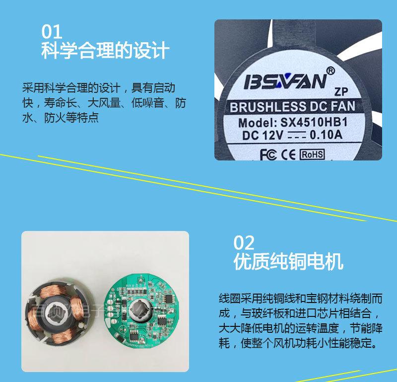 Compra Ventilador de refrigeración de soporte 4510 12v 24v Ventilador de doble bola equipo de lámpara ventilador al por mayor en Joom.pro