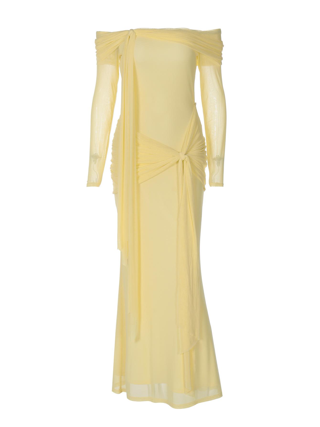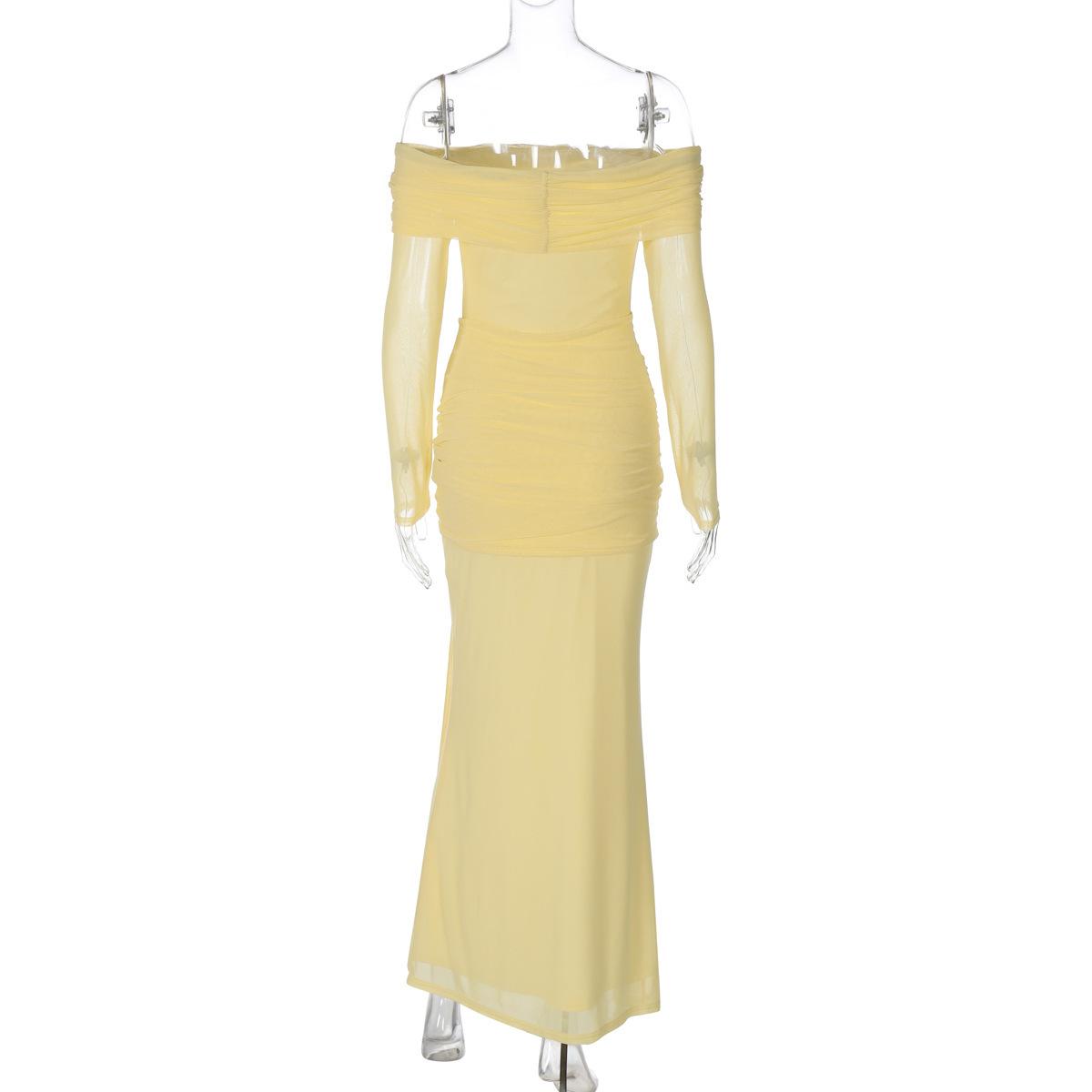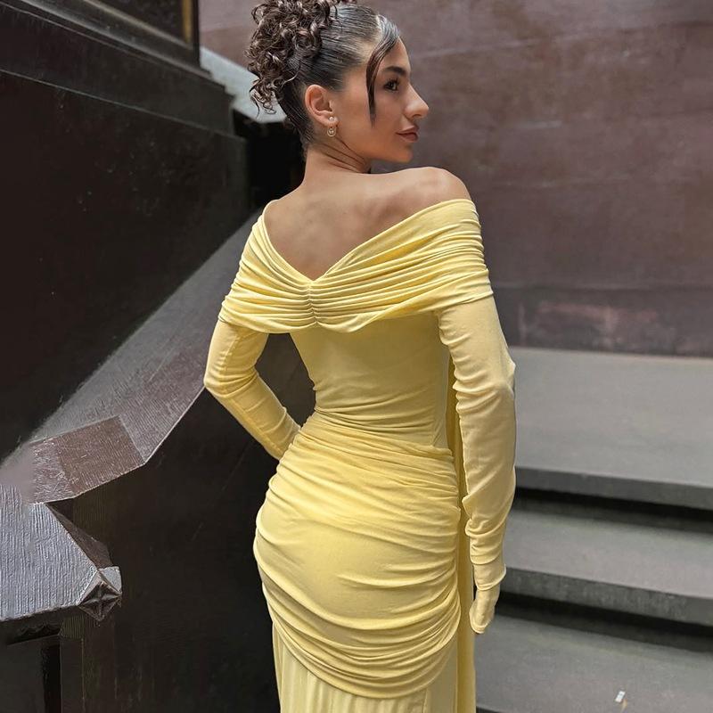 Ropa de Mujer de Venta Caliente Europea y Americana 2025 Verano Nuevo Sexy Transparente Un Hombro Tirante Delgado Vestido Ajustado Venta al por Mayor Comercio Exterior