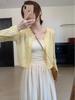 Cárdigan Tejido Amarillo Calado de Seda de Hielo Abrigo Delgado Falda de Tirantes de Verano para Mujer Blusa Exterior Top