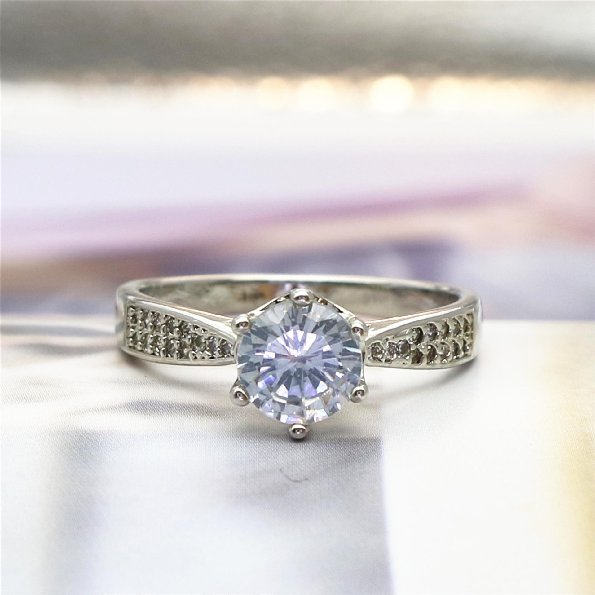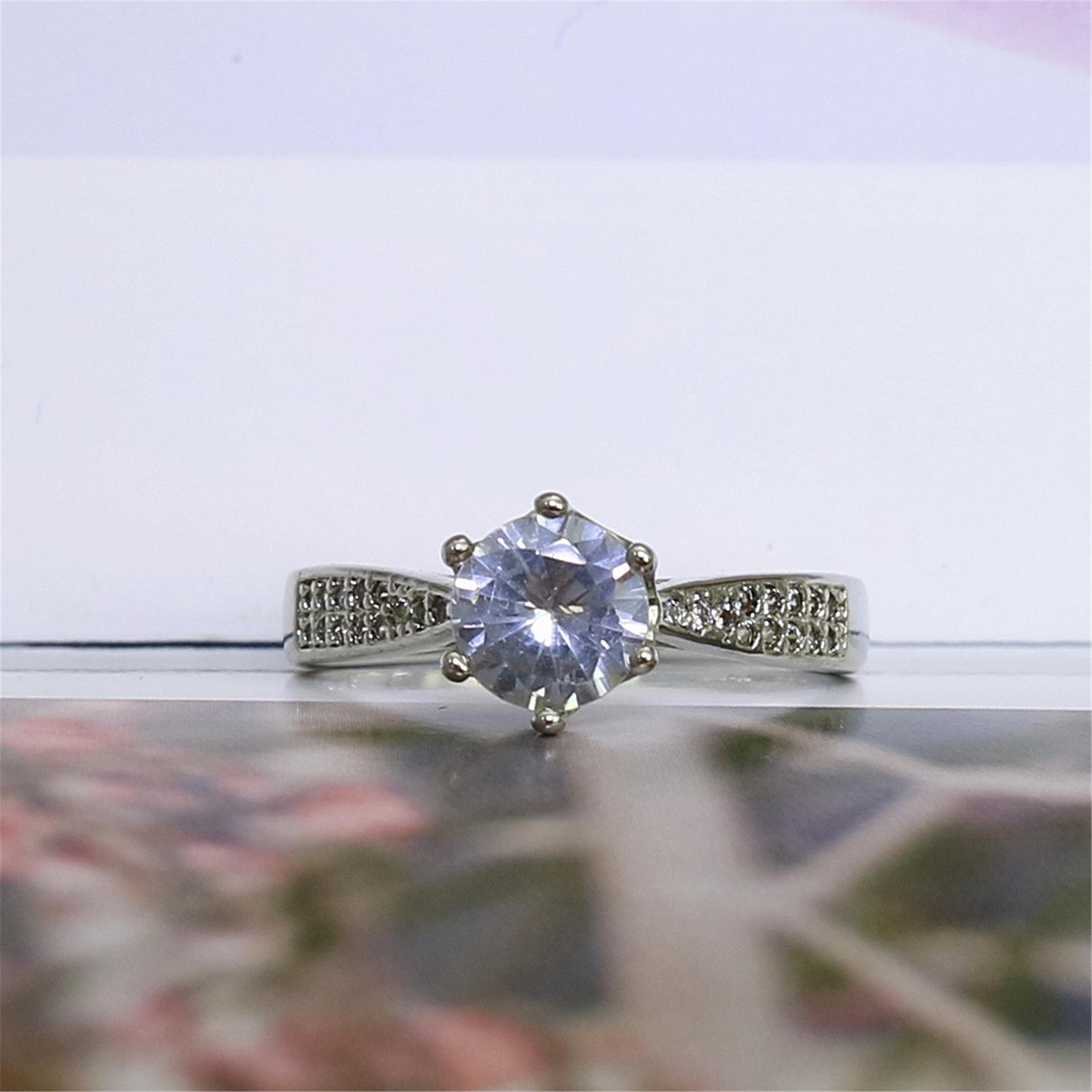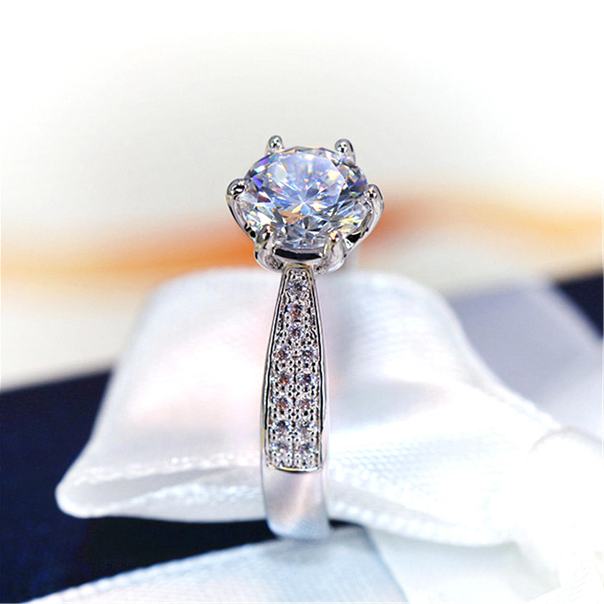 Anillo de Diamantes Anillo de Boda para Mujer Diamante de Montura Alta Anillo de Circonita con Incrustaciones de Seis Garras de Alta Calidad Ventas Calientes Transfronterizas Joyería de Comercio Exterior