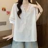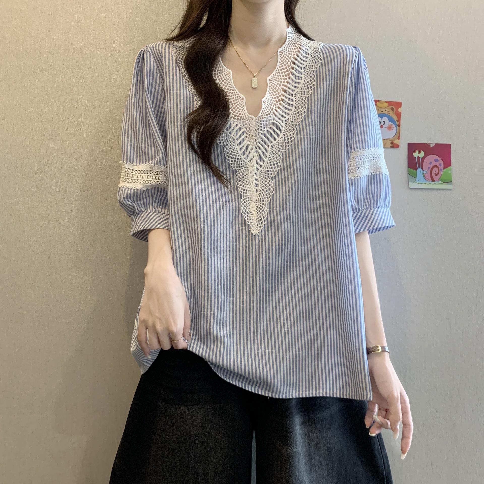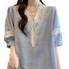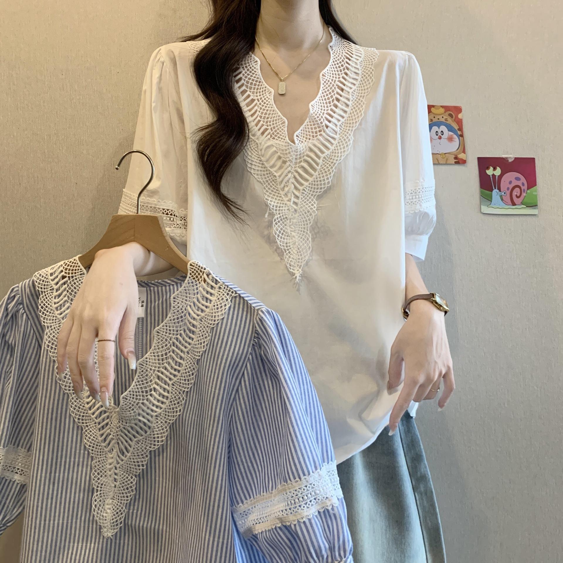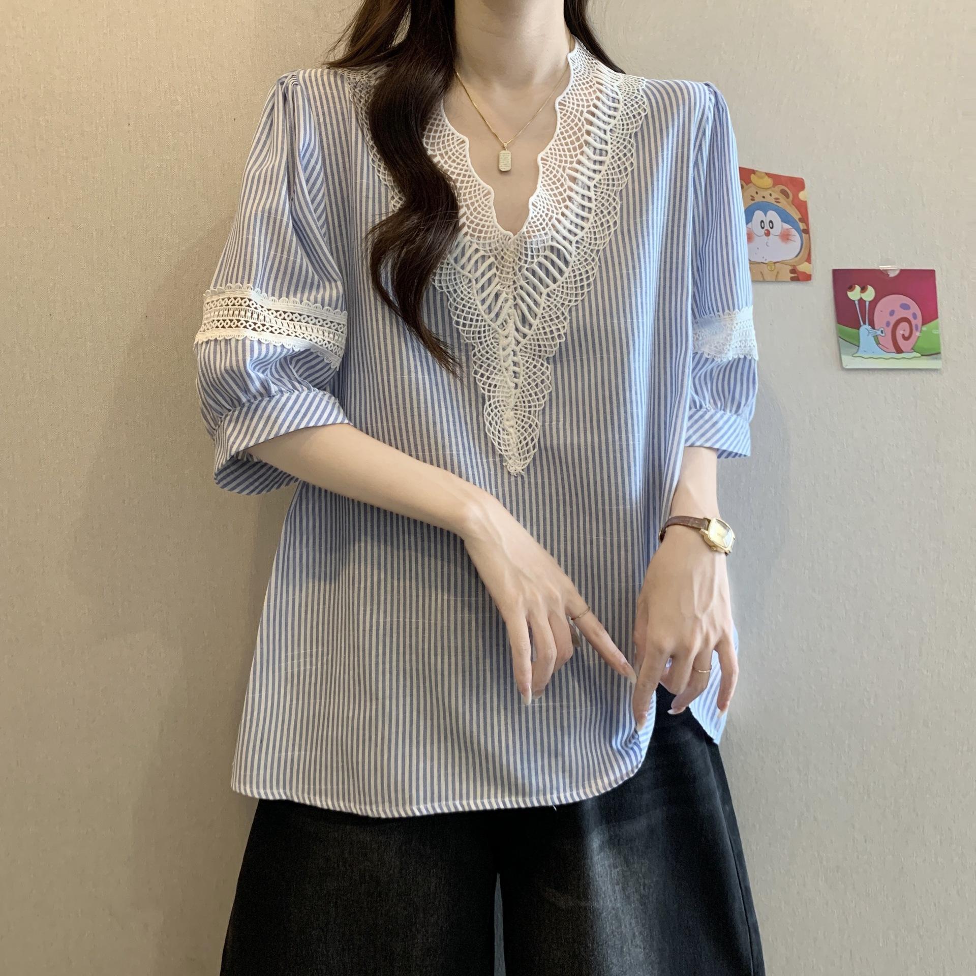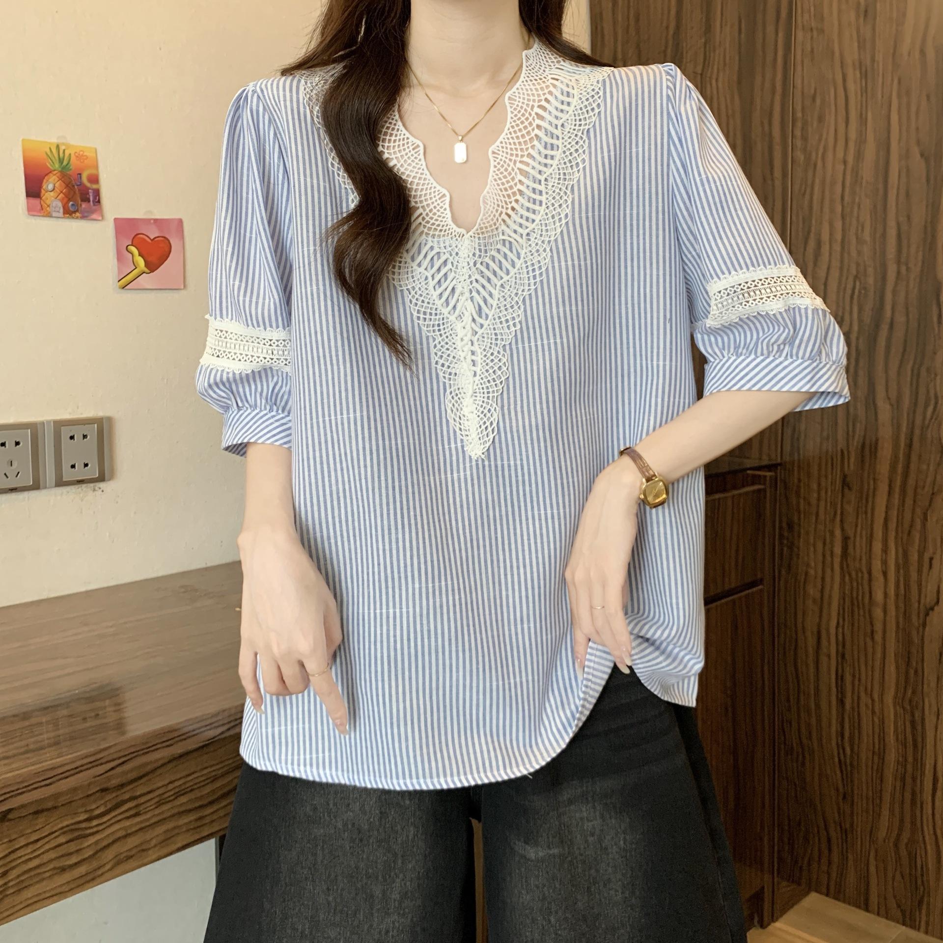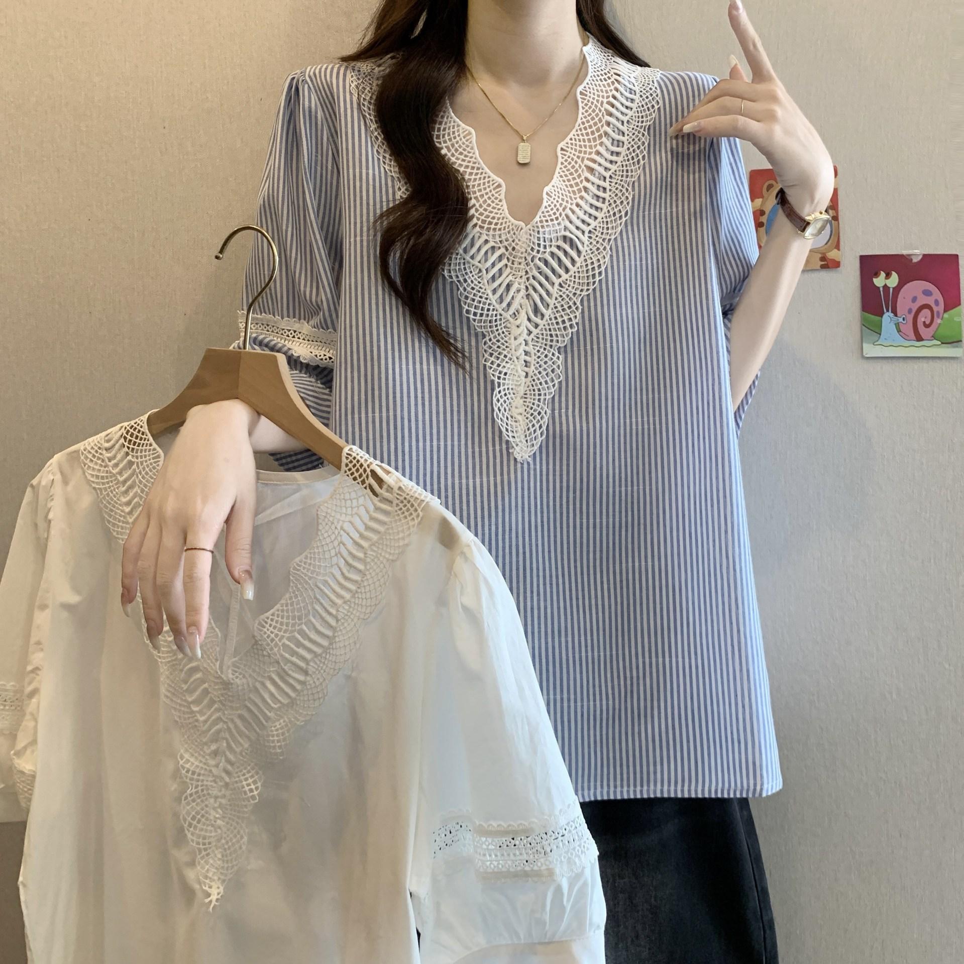 Foto Real de Blusas Casuales Adelgazantes de Manga Corta con Cuello Temperamento para Verano para Mujer de Talla Grande