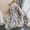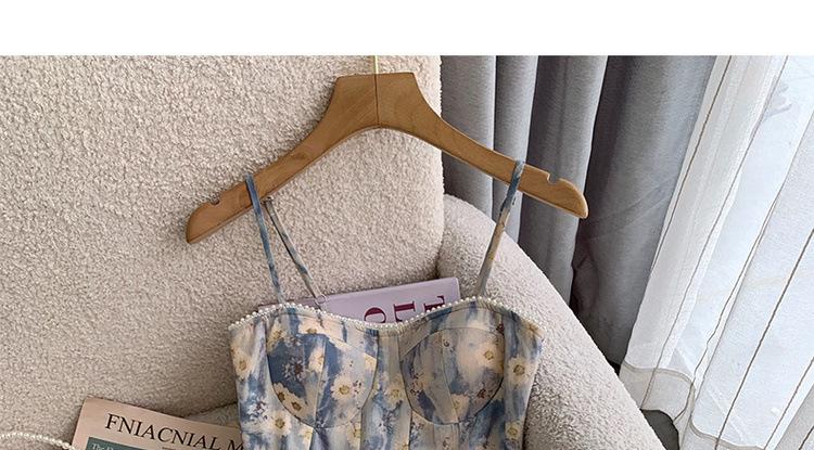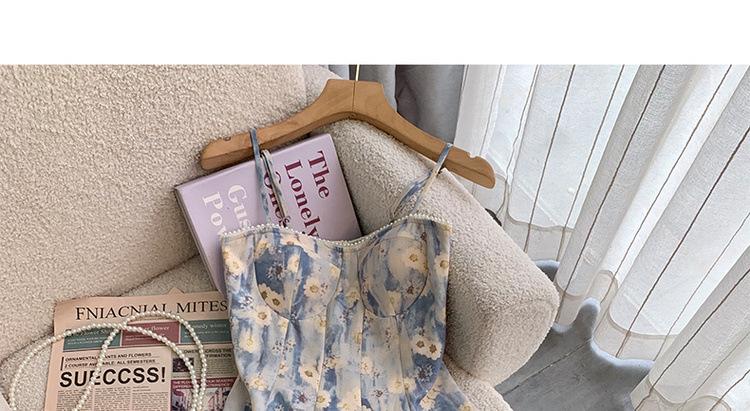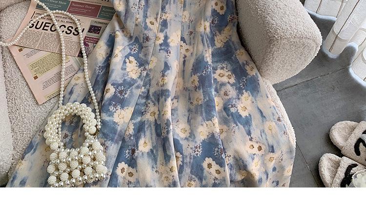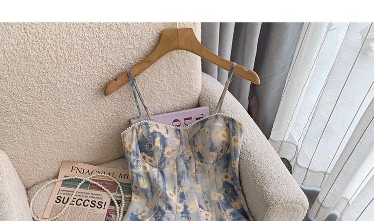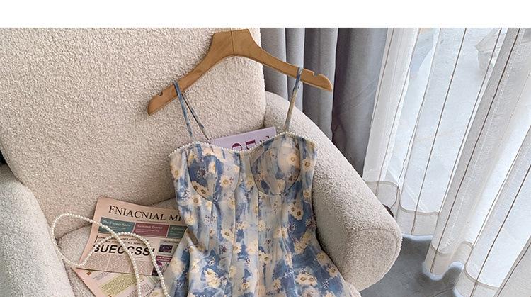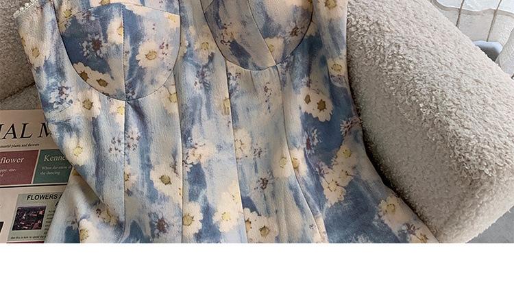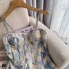 2023 Estilo Francés Pintura al Óleo Vestido Floral Diseño Elegante para Mujer Entallado Romántico Vacaciones Junto al Mar Tirantes Vestido Largo
