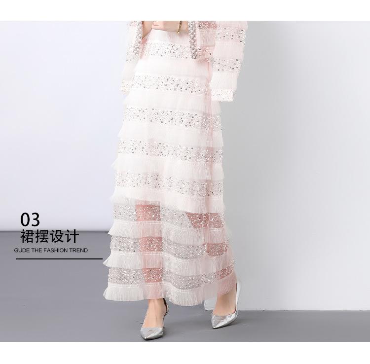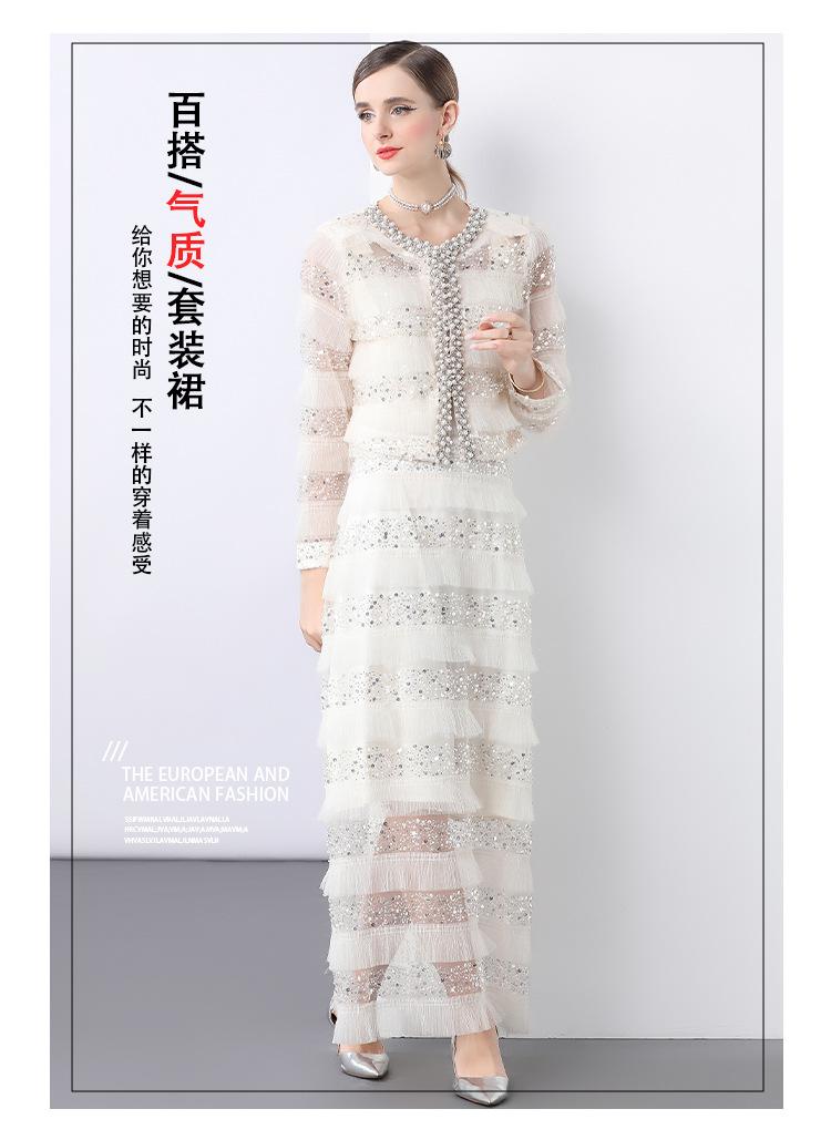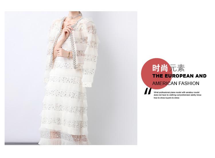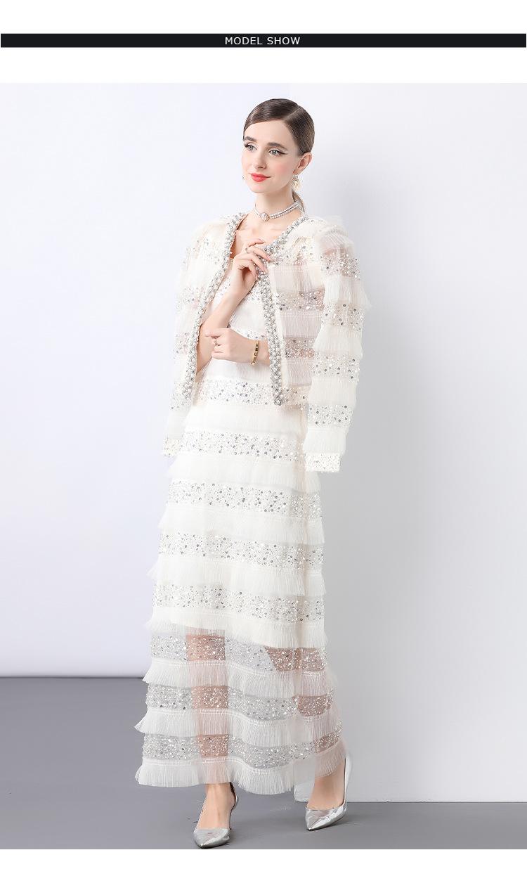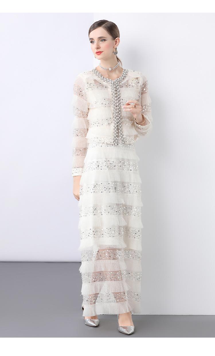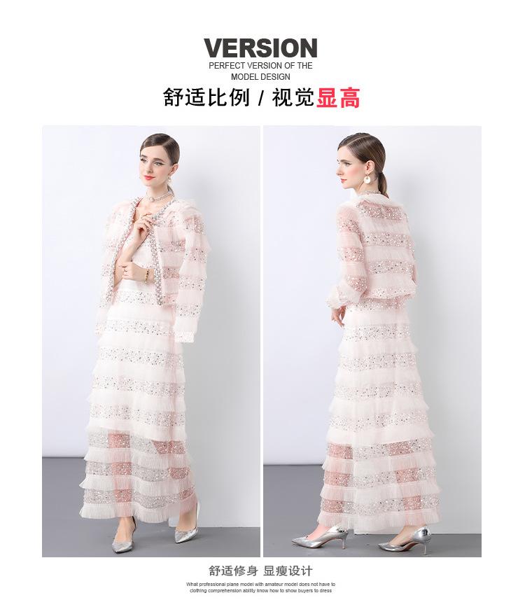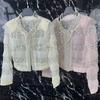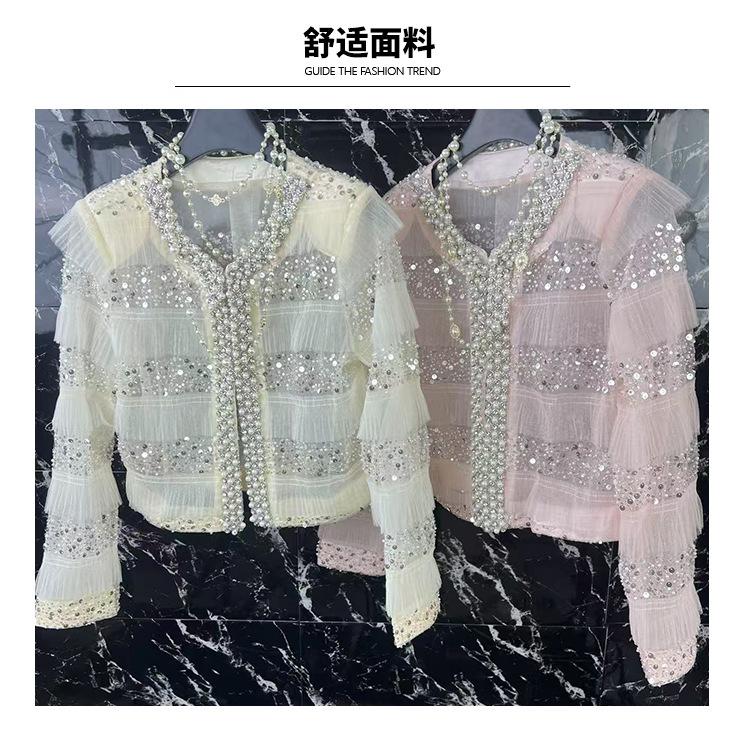2025 Lujo Ligero de Alta Gama Top de Cuello Redondo con Lentejuelas y Cuentas Pesadas para Mujer Estilo Chanel Reductor de Edad Adelgazante Chaqueta Corta Transparente