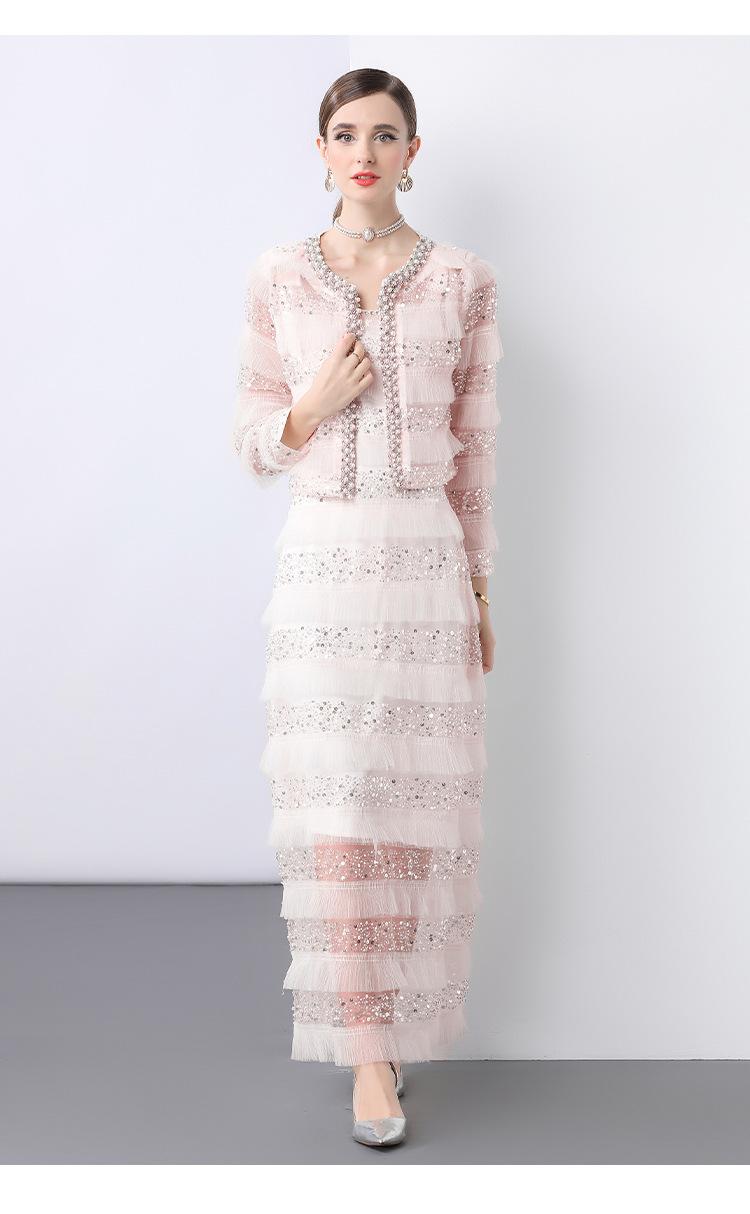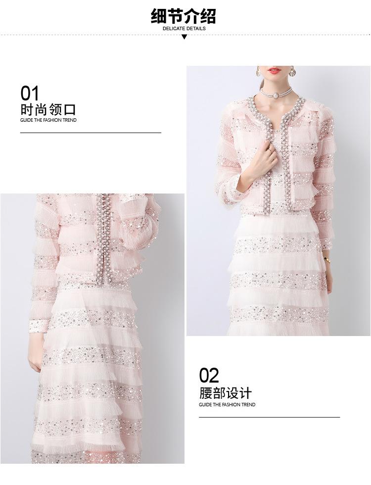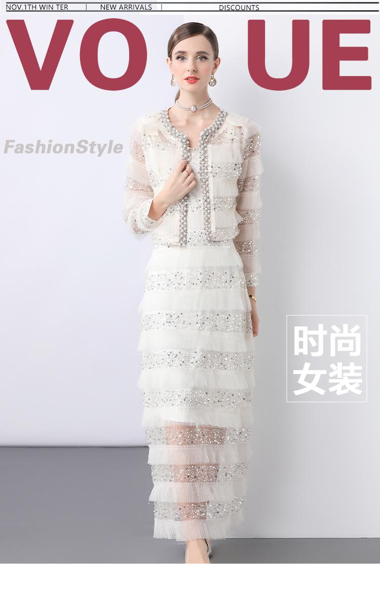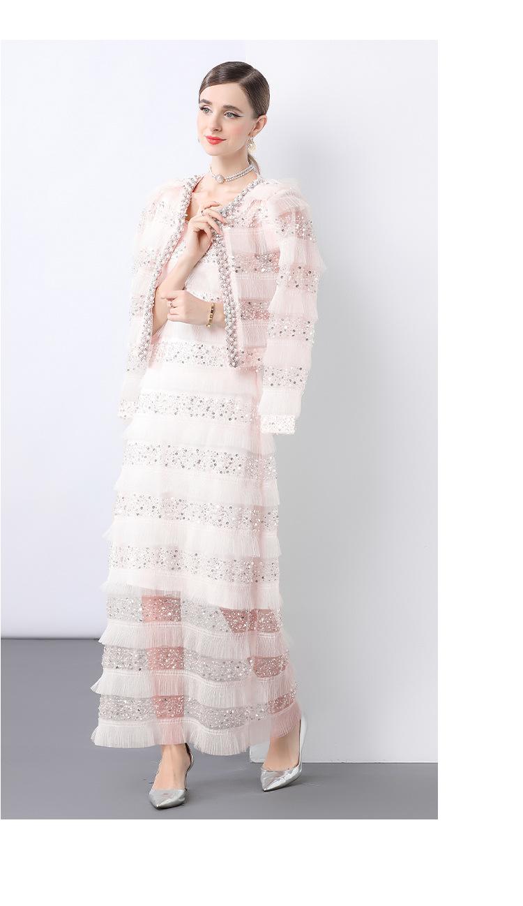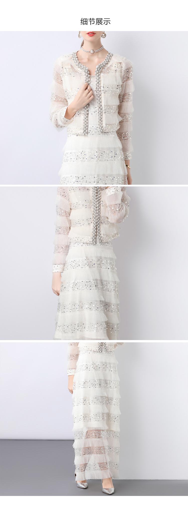 2025 Lujo Ligero de Alta Gama Top de Cuello Redondo con Lentejuelas y Cuentas Pesadas para Mujer Estilo Chanel Reductor de Edad Adelgazante Chaqueta Corta Transparente