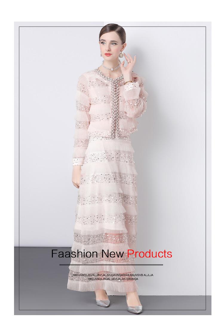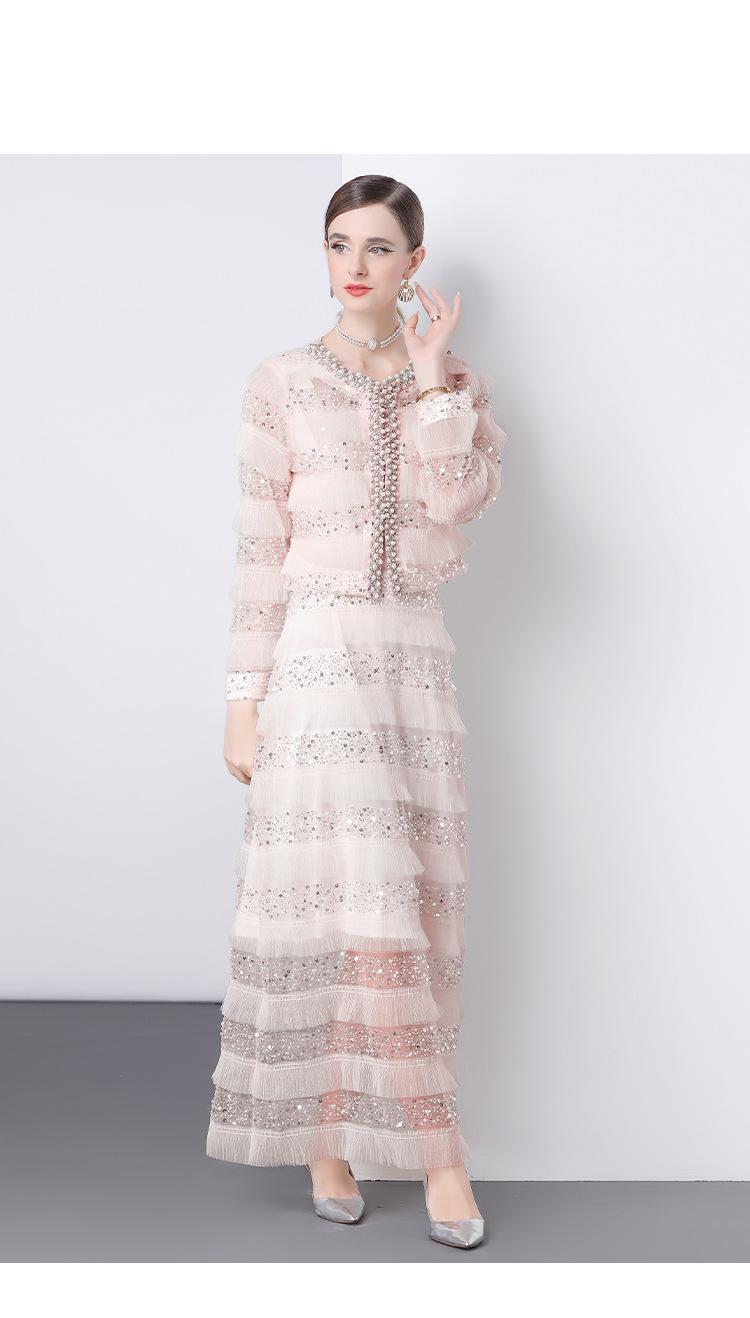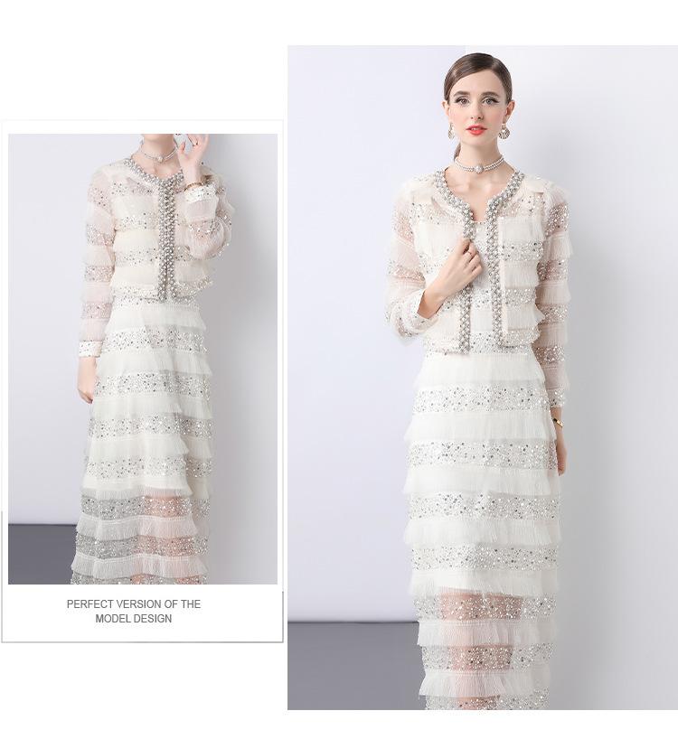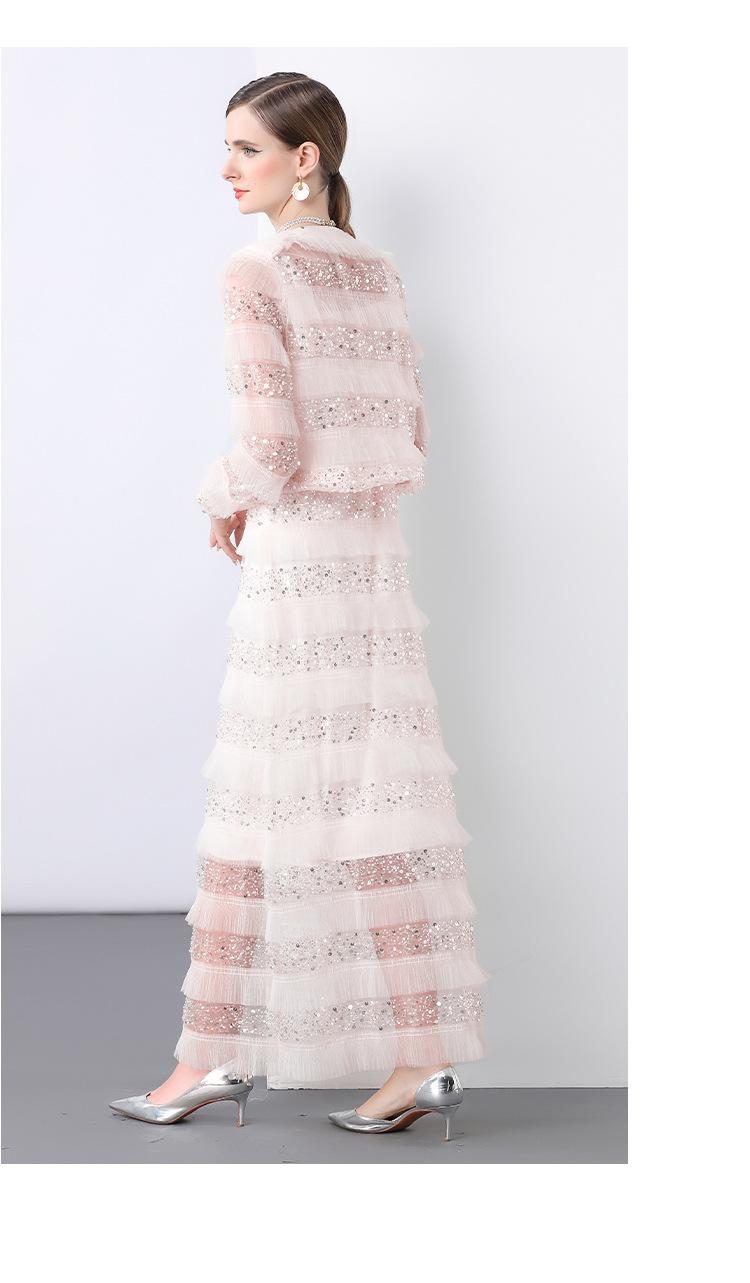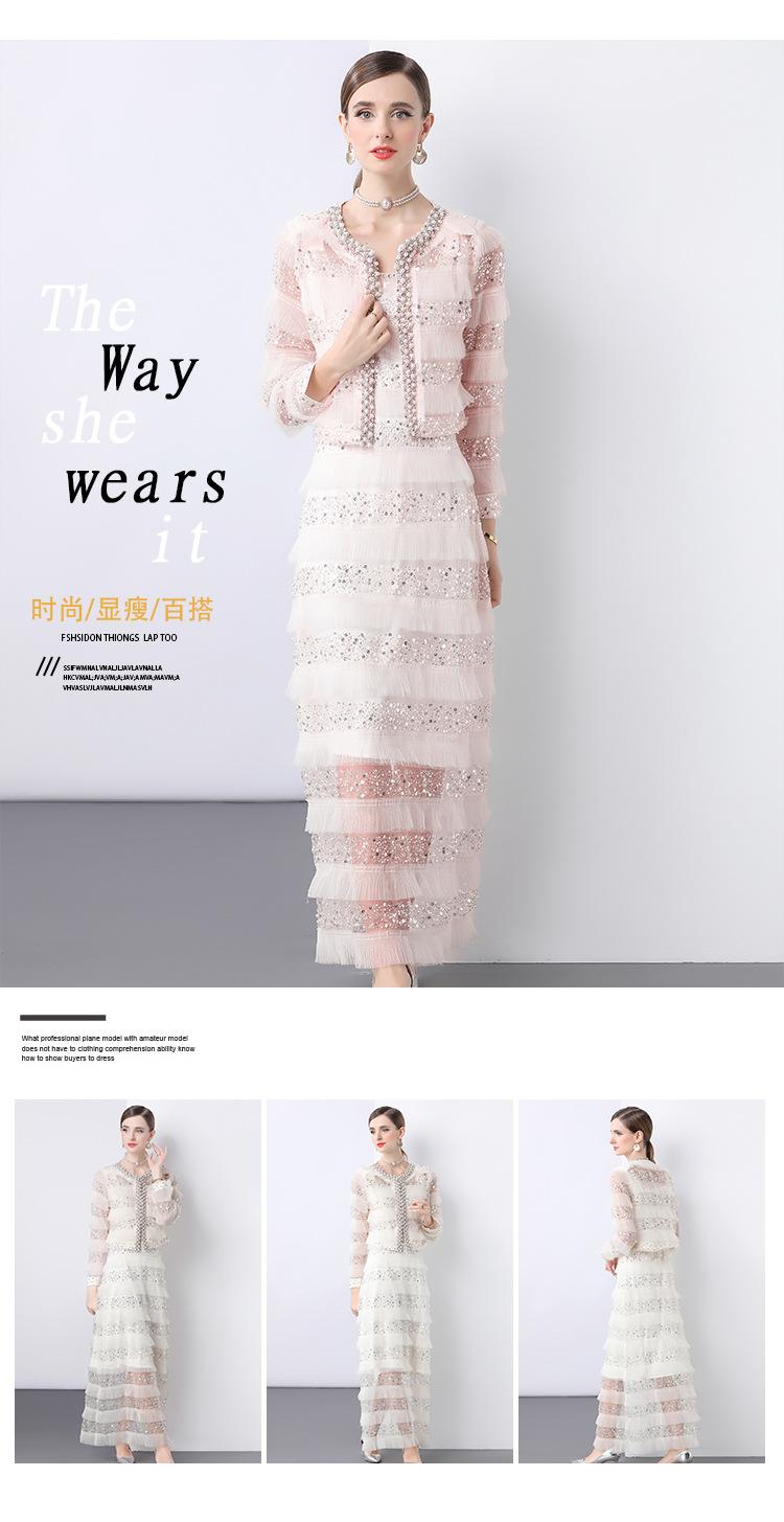 2025 Lujo Ligero de Alta Gama Top de Cuello Redondo con Lentejuelas y Cuentas Pesadas para Mujer Estilo Chanel Reductor de Edad Adelgazante Chaqueta Corta Transparente