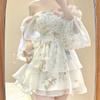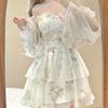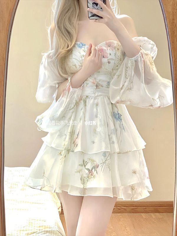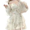 Vestido Floral Francés de Manga Larga para Mujer en Primavera y Otoño, Falda Tutú de Hada, Falda Corta Entallada a la Cintura para Personas Pequeñas