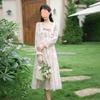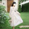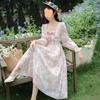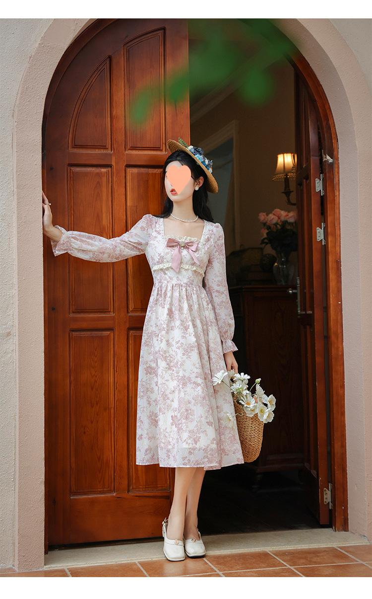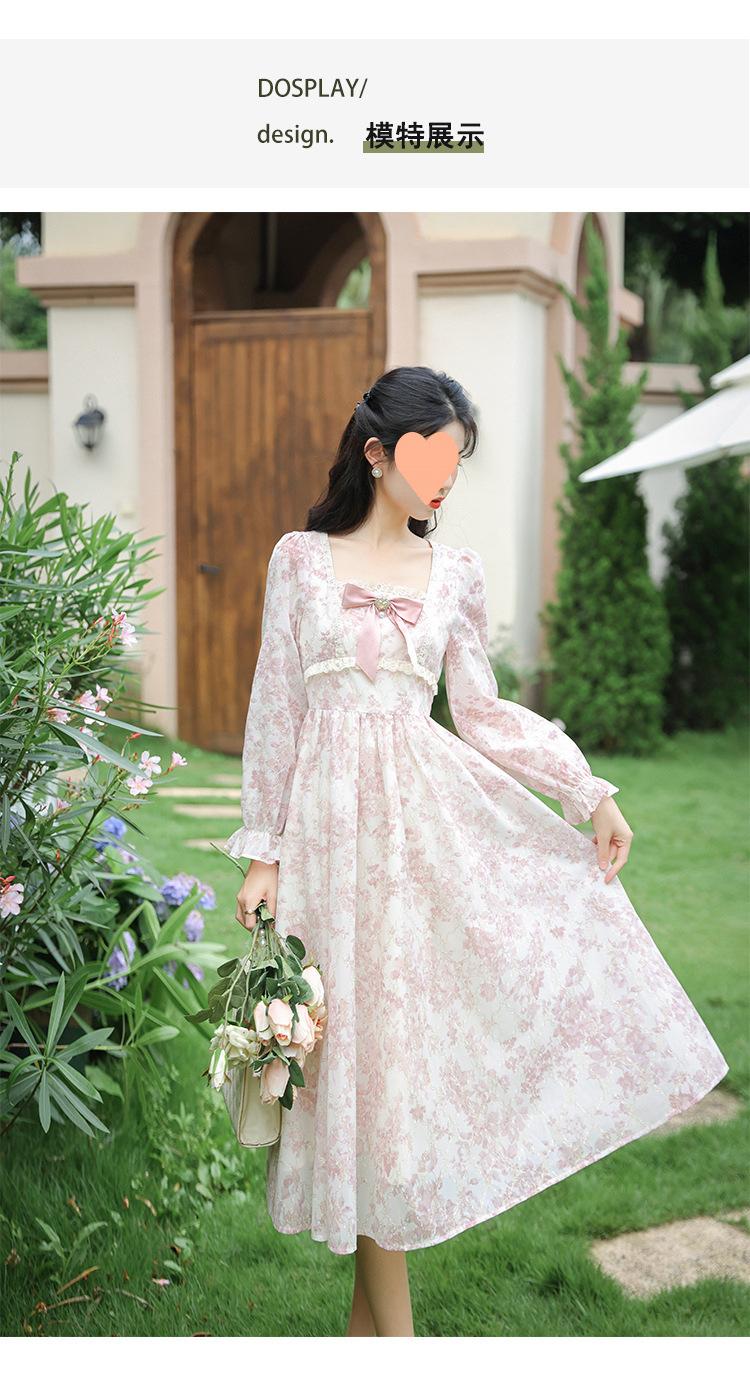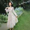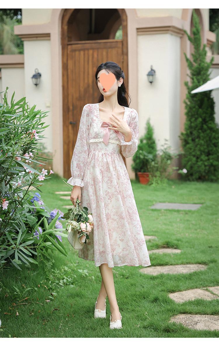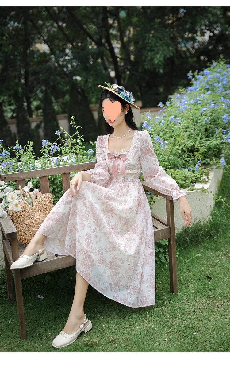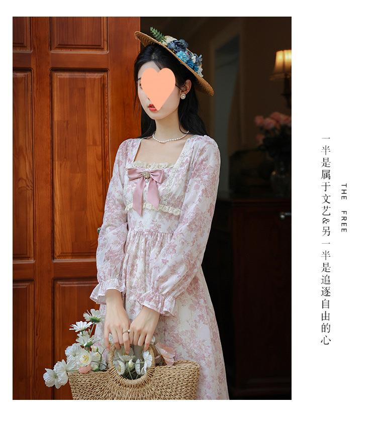 Vestido Rosa Floral Estilo Dulce de Princesa para Mujer de Manga Larga Primavera y Verano Vestido Largo Francés de Platycodon Vestido Estilo Gentil