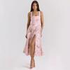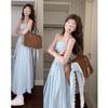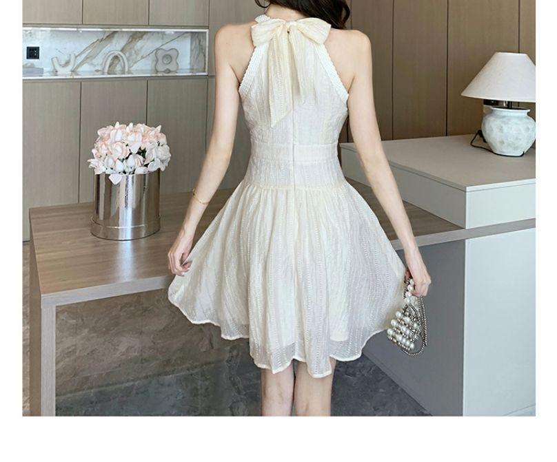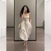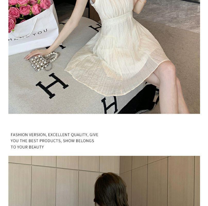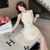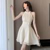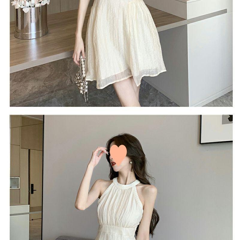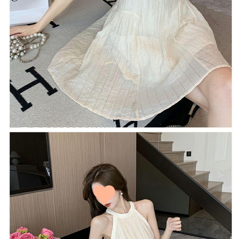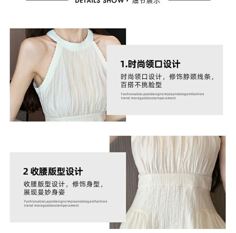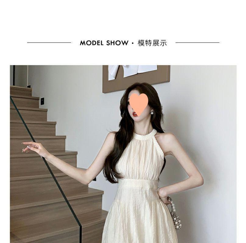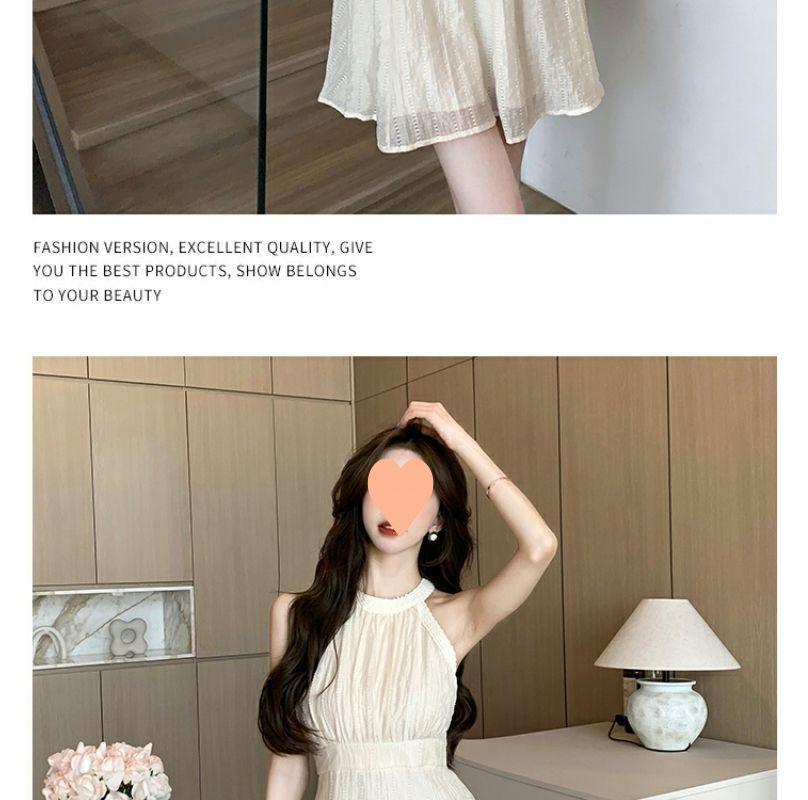 Vestido de Hada Halter sin Mangas de Alta Gama Francés para Mujer Vacaciones de Verano Junto al Mar Look Adelgazante de Cintura Alta Falda Línea A