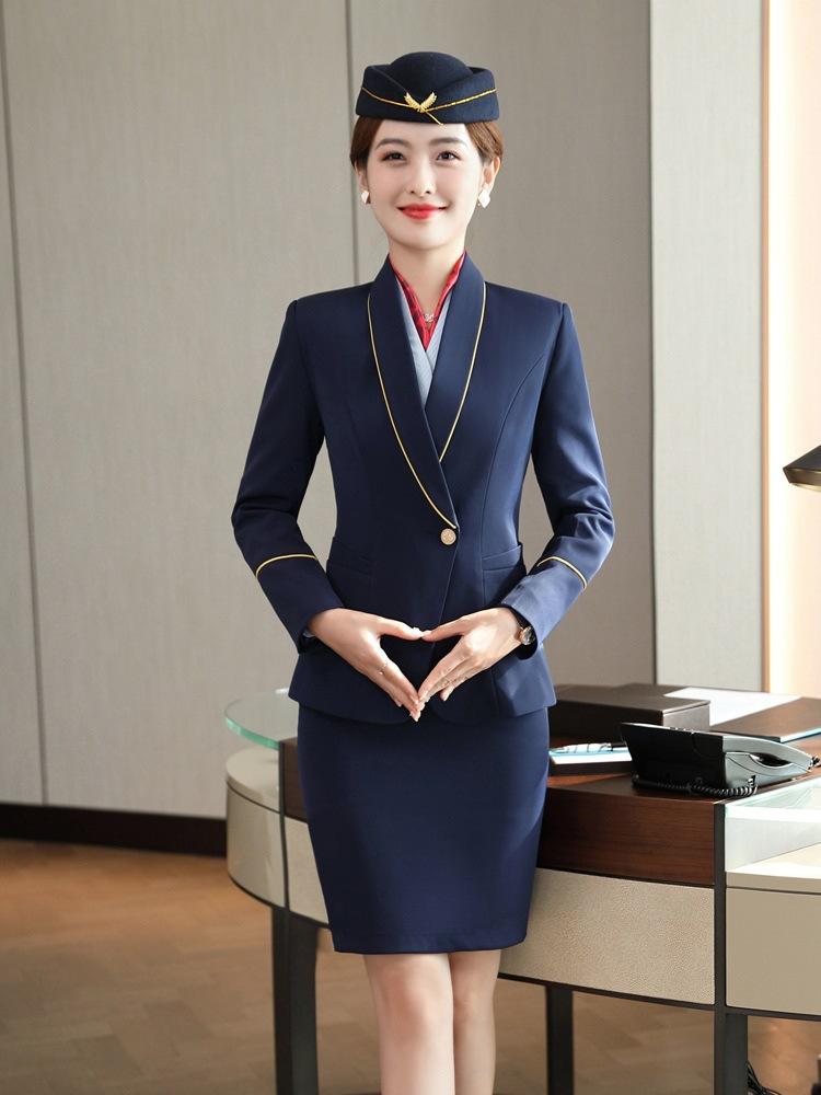 Uniforme de azafata de China Southern Airlines para mujer Azul ropa de trabajo profesional belleza ventas hotel departamento de ventas conjunto de overol de joyería primavera y verano