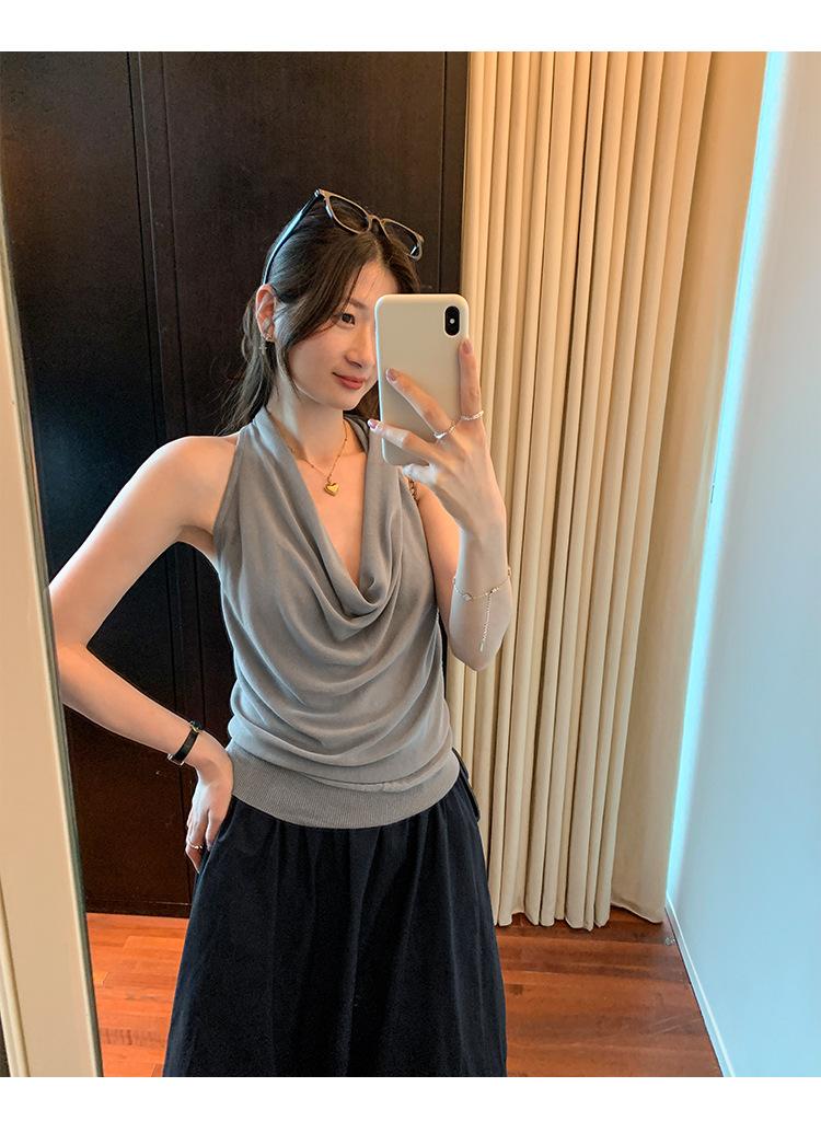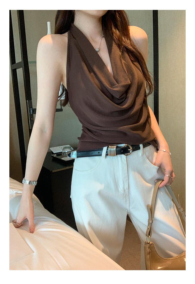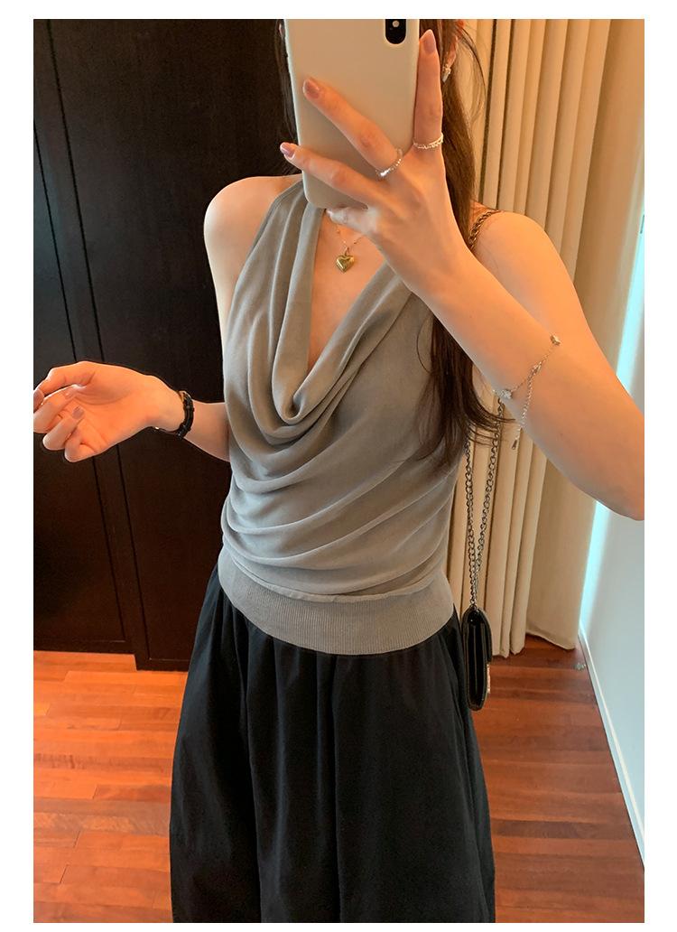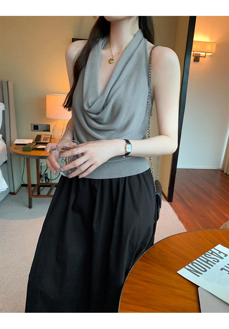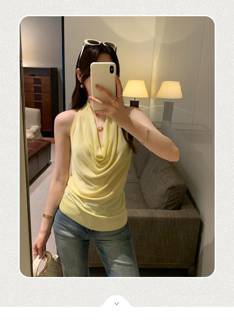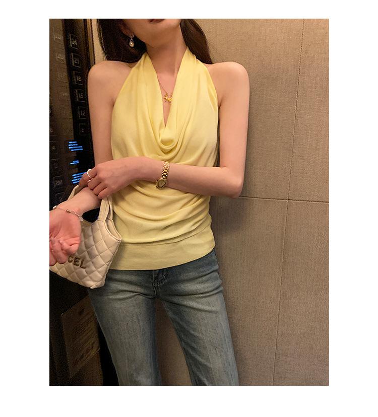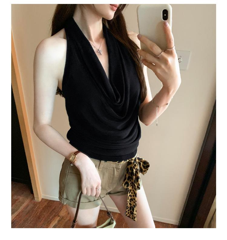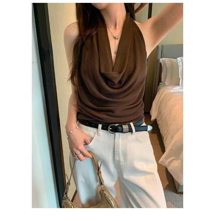 Foto Real Cuello Halter Espalda Hermosa Sin Mangas Chaleco de Punto para Mujer 2025 Verano Nuevo Nicho de Gama Alta Top No Colisionante
