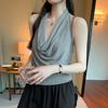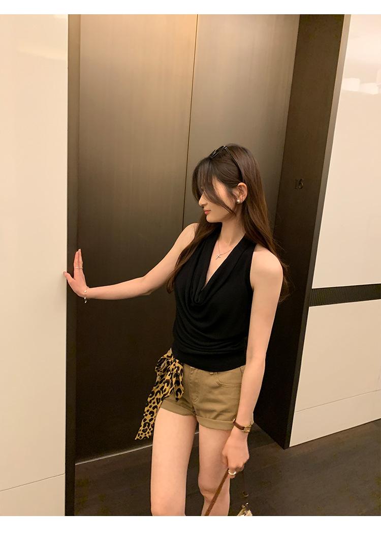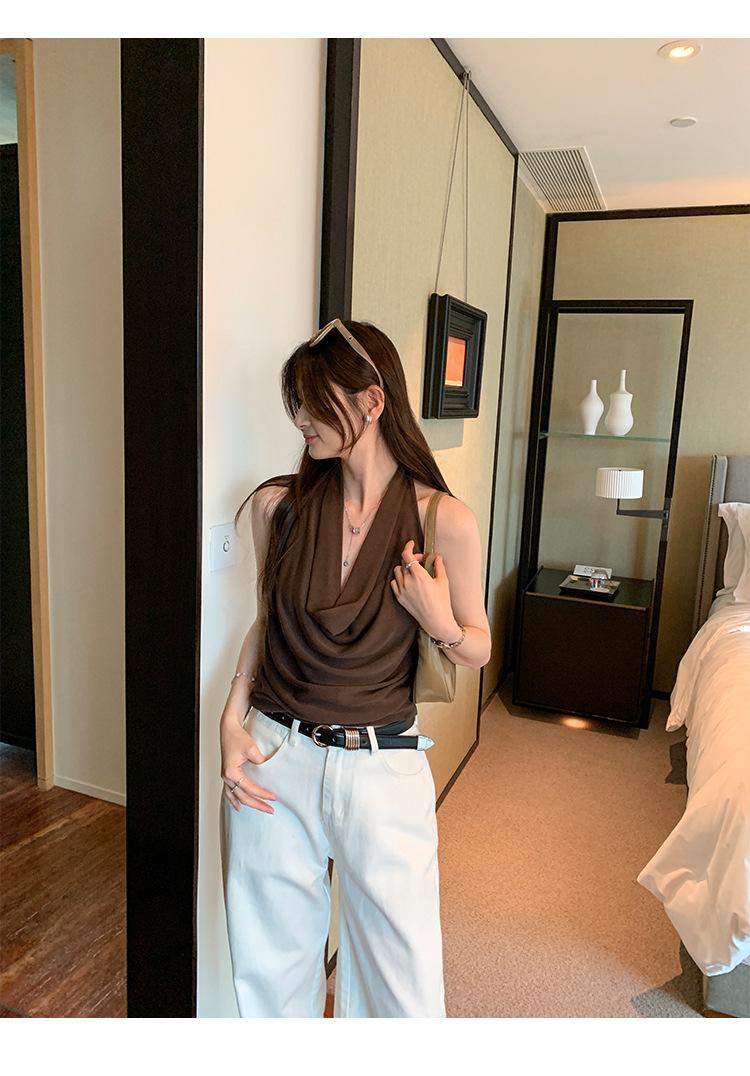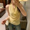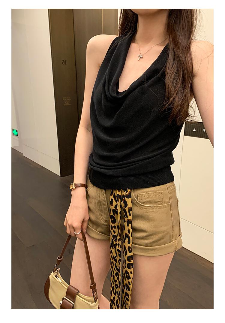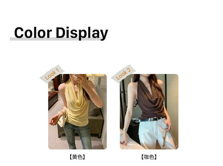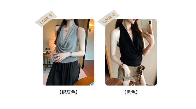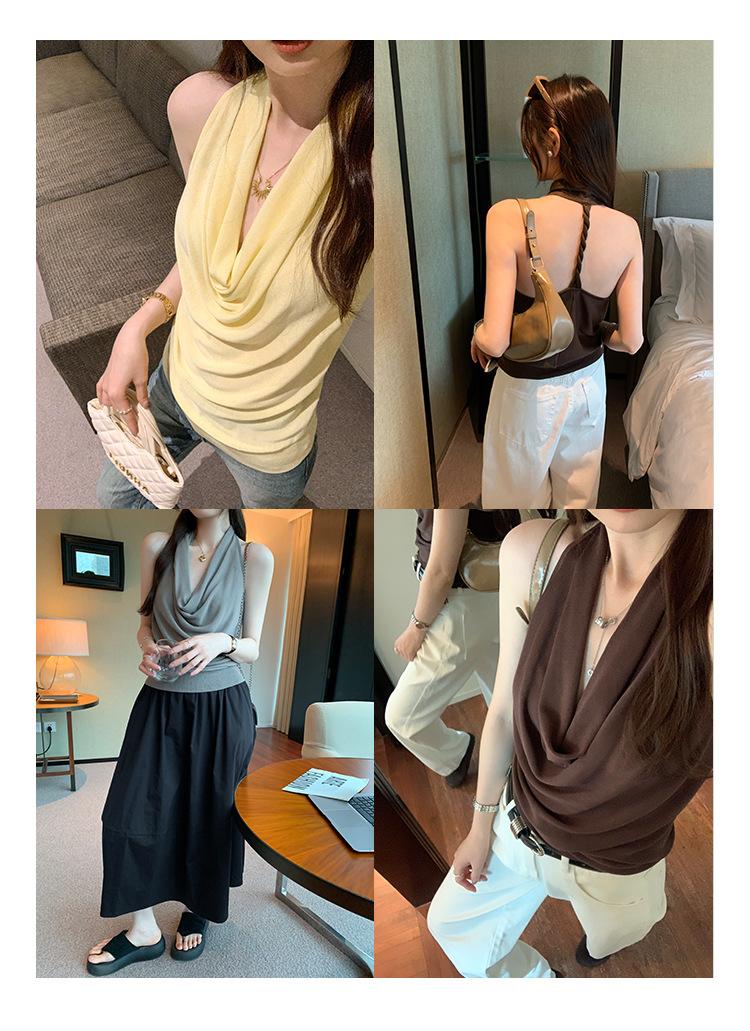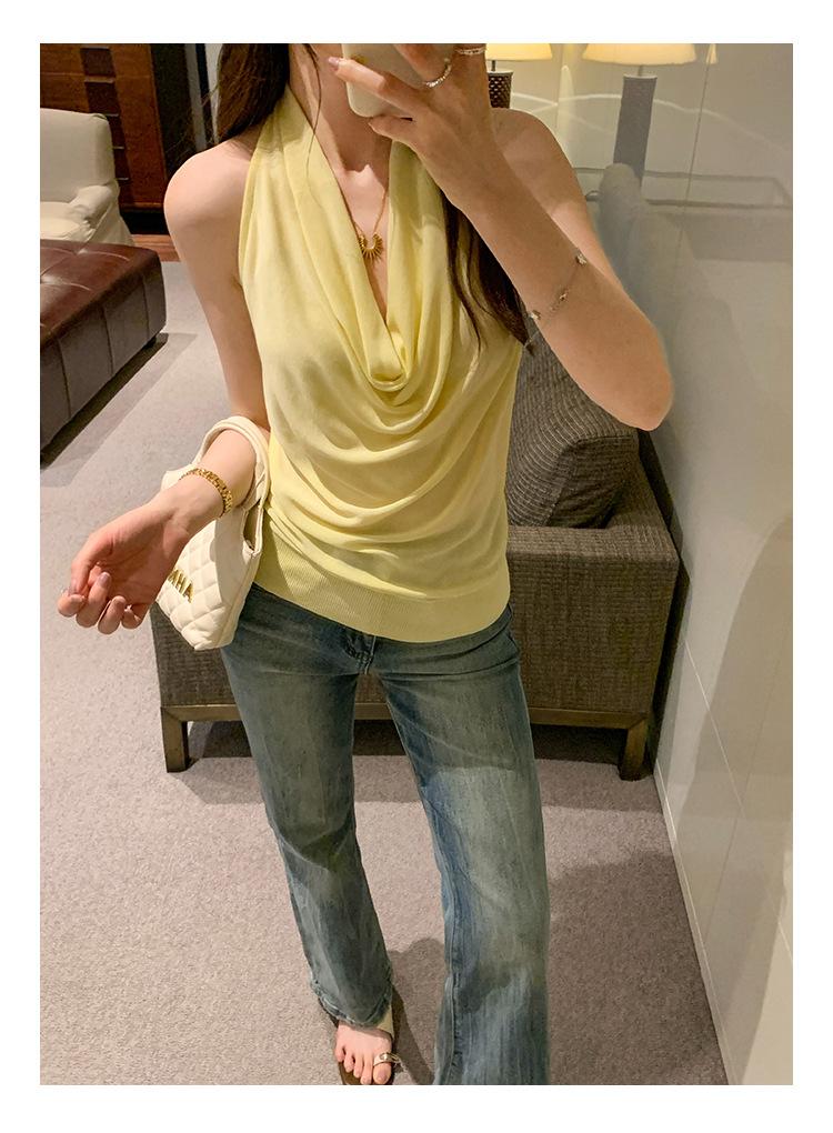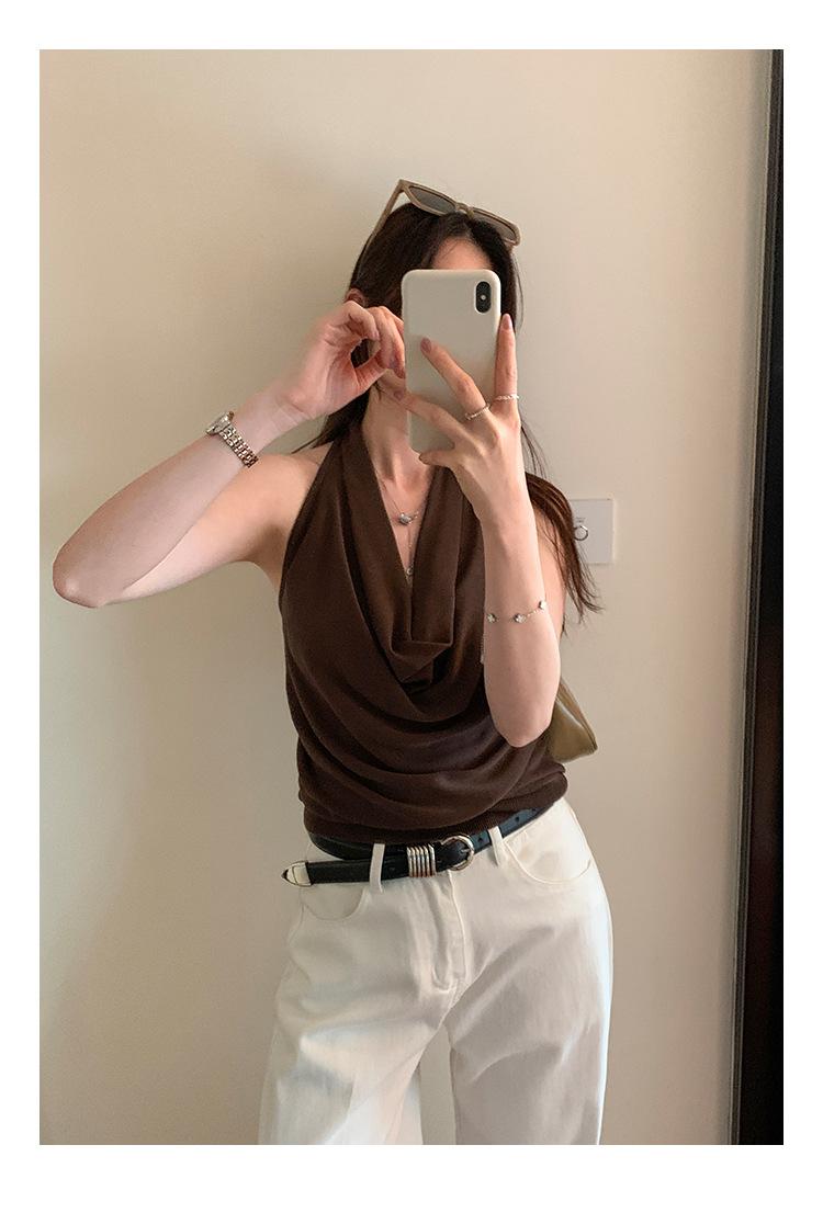 Foto Real Cuello Halter Espalda Hermosa Sin Mangas Chaleco de Punto para Mujer 2025 Verano Nuevo Nicho de Gama Alta Top No Colisionante