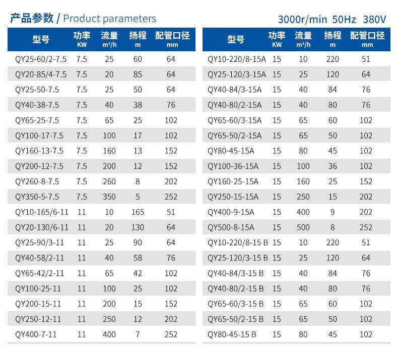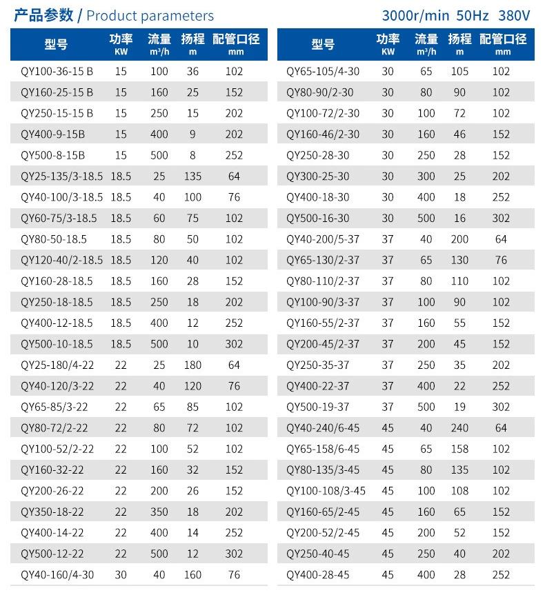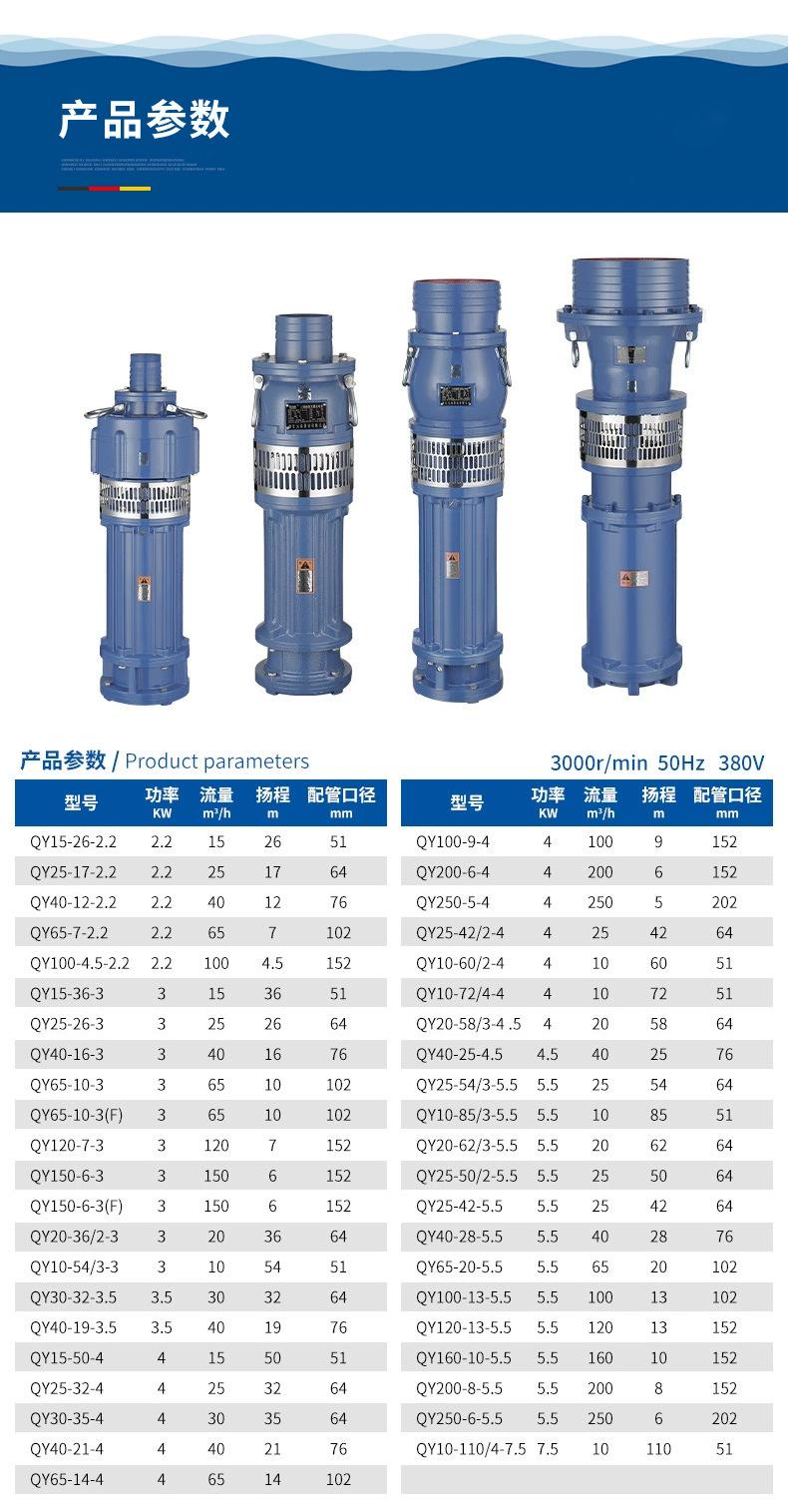 Bomba Sumergible QY Inmersa en Aceite Personalizada de Alta Carga para Bombeo de Riego por Aspersión Goteo Drenaje Gran Caudal Bomba Sumergible