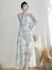 Vestido de gasa francesa con estampado floral y tirantes finos, chaqueta de punto Chanel de verano, falda de dos piezas para mujer