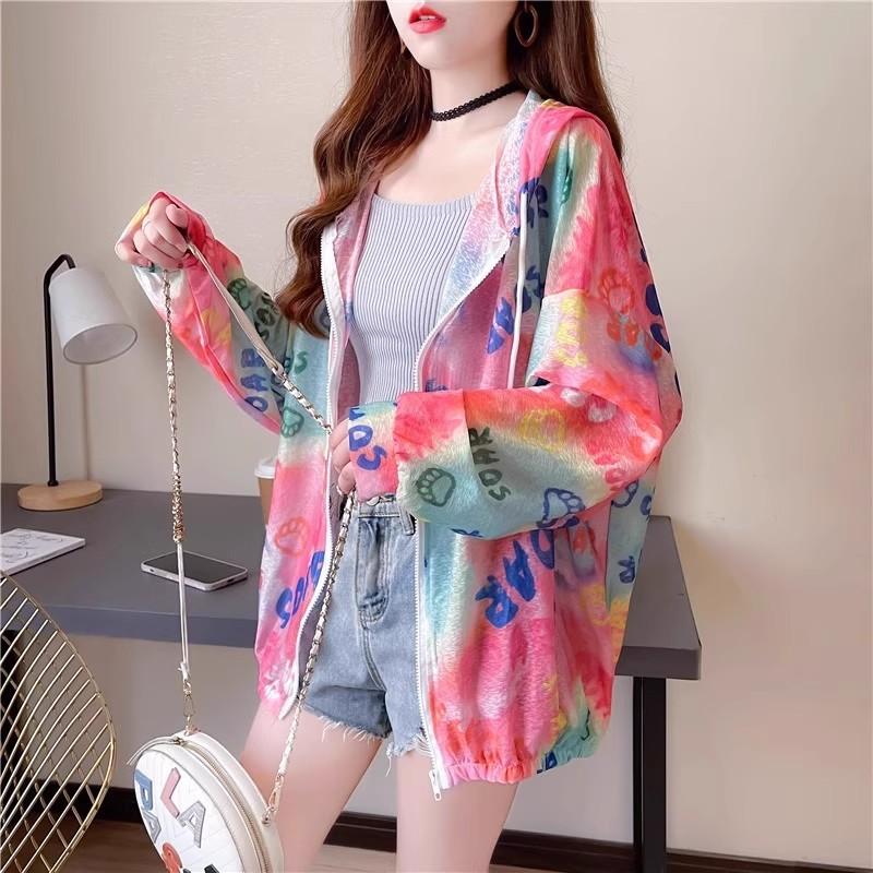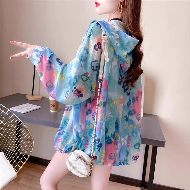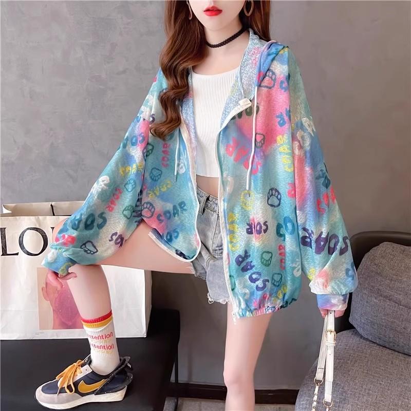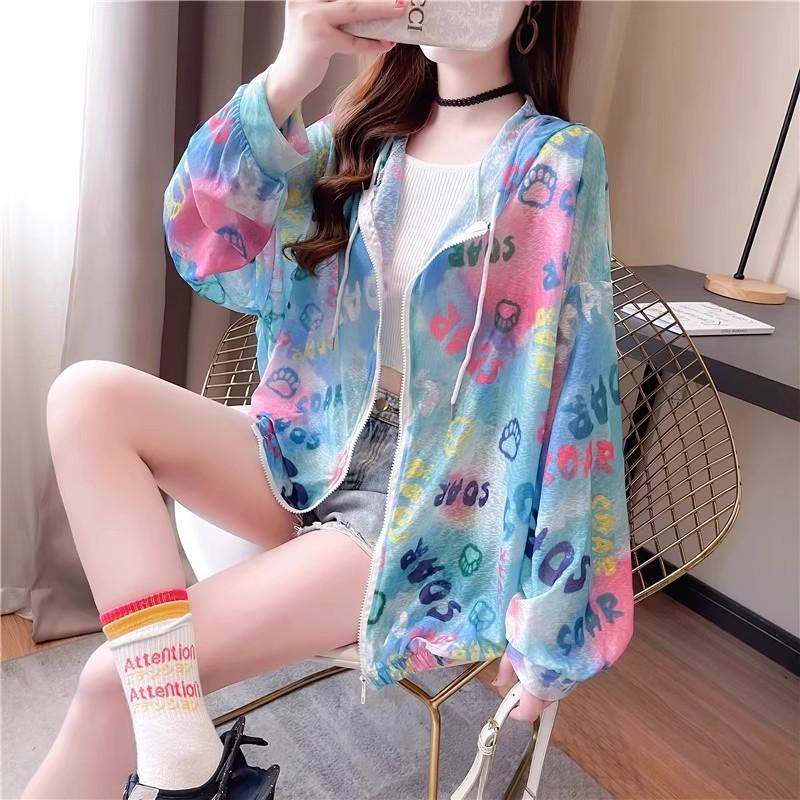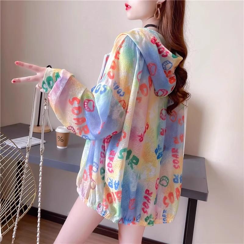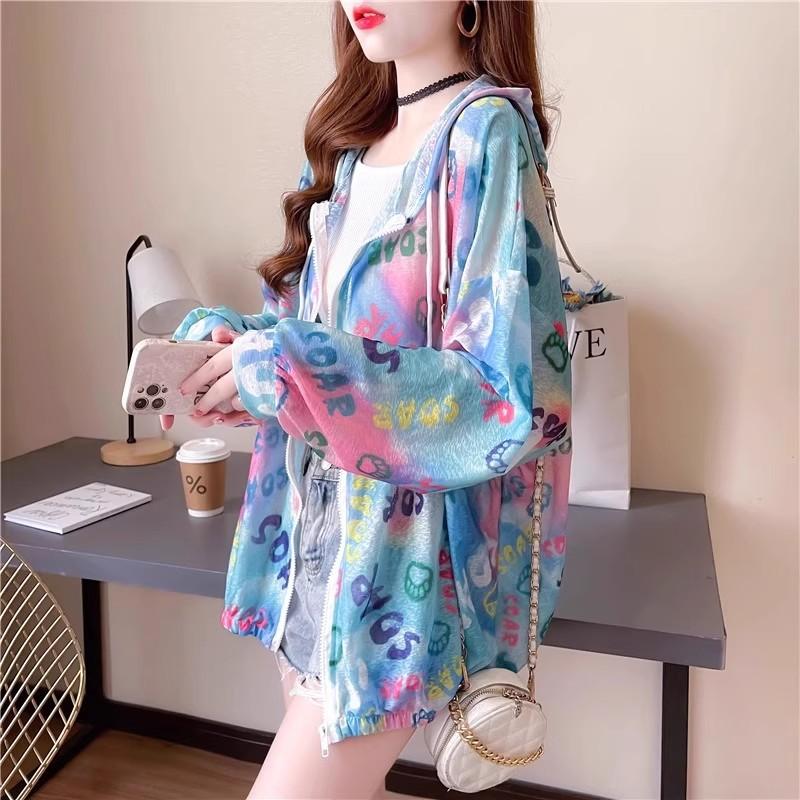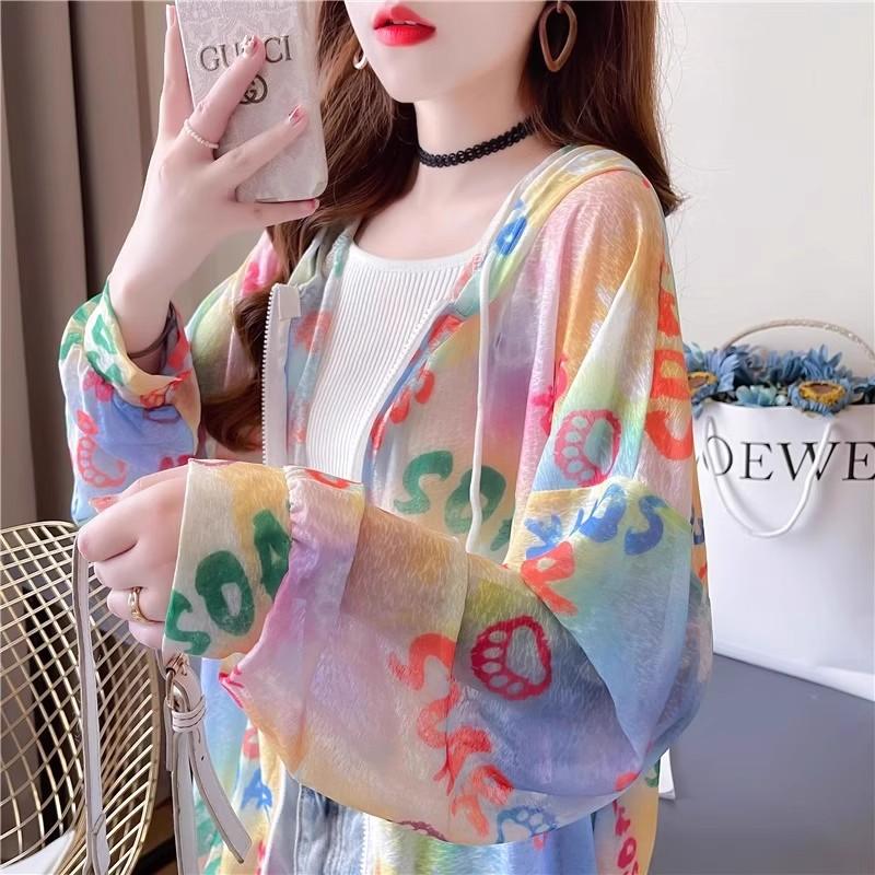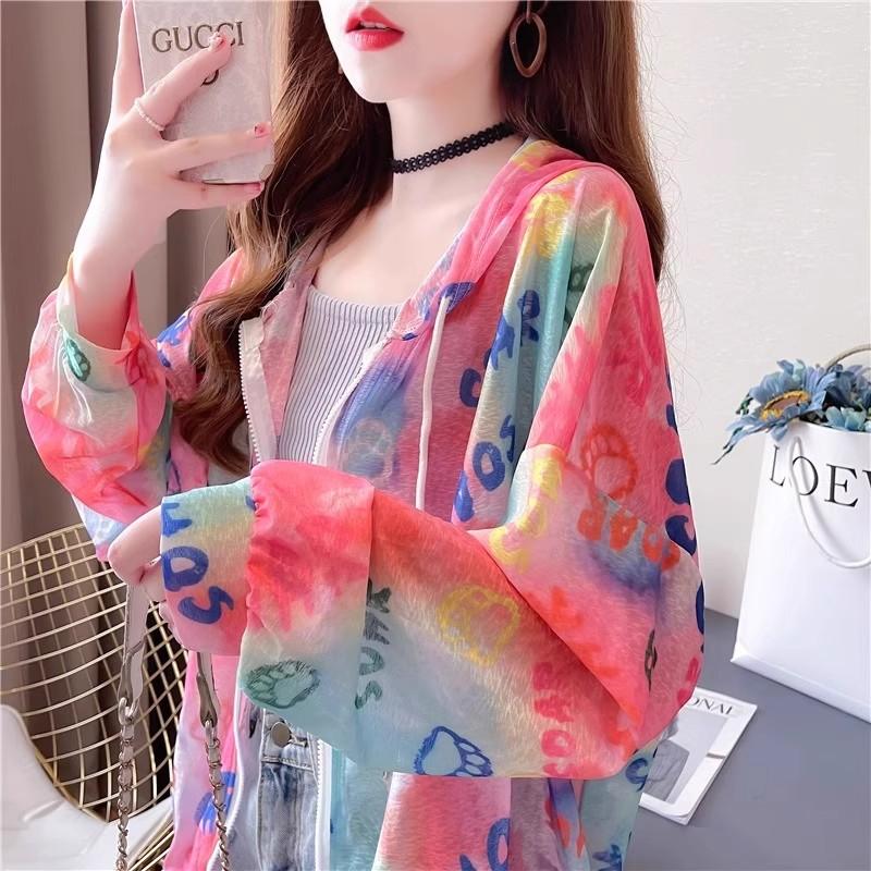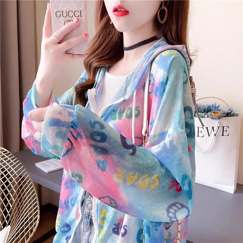 Ropa Delgada Estampada para Protección Solar de Mujer Verano 2025 Nueva Holgada Talla Grande Holgada Transpirable Ropa de Protección Solar Chaqueta con Capucha