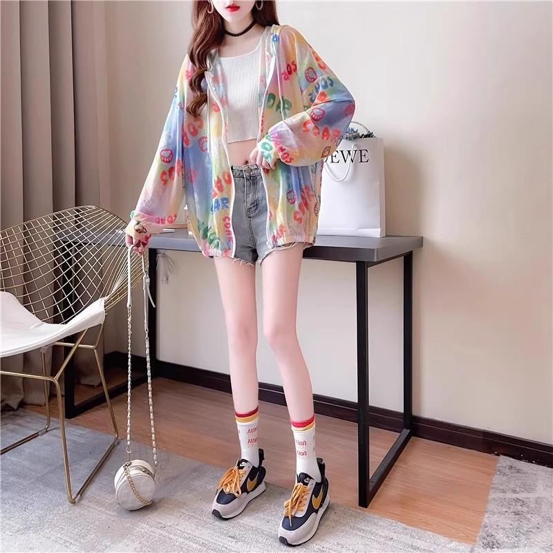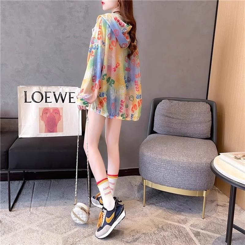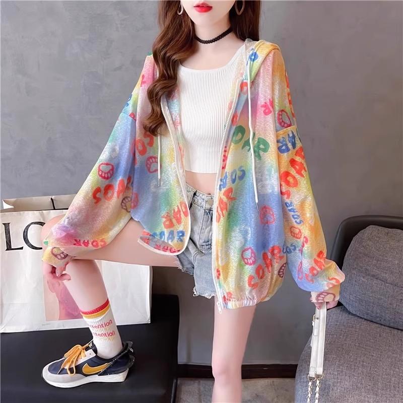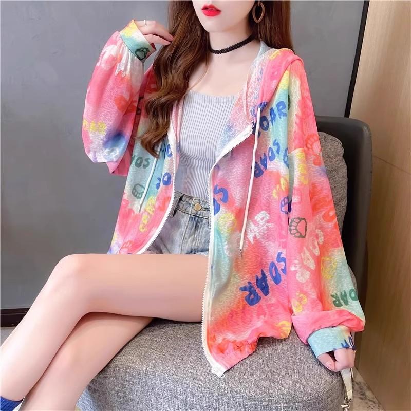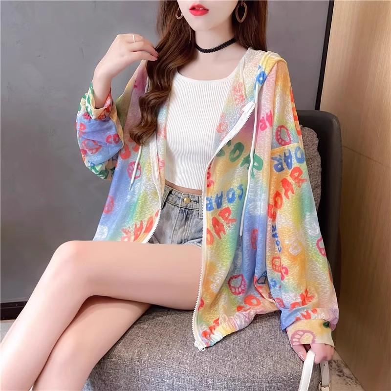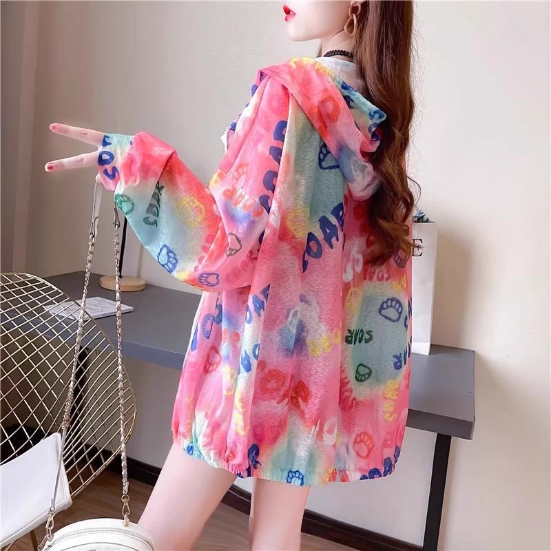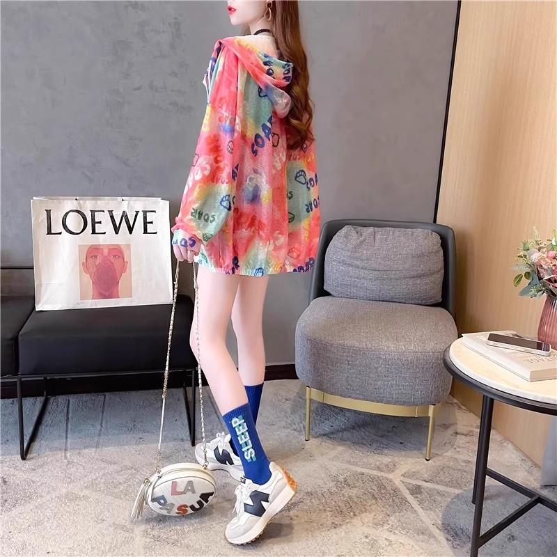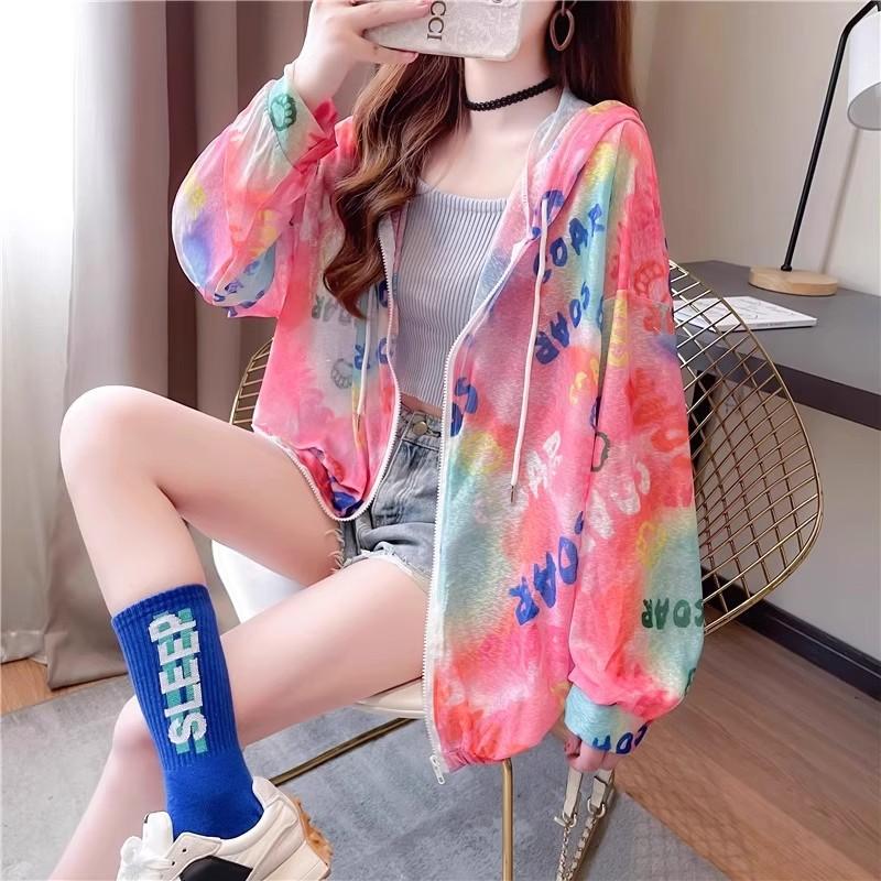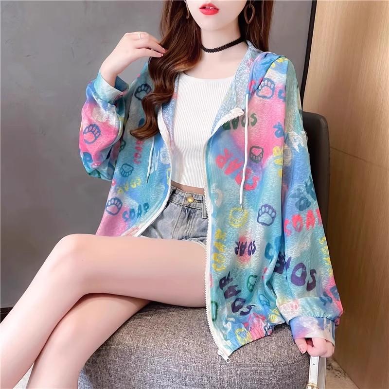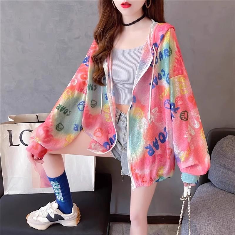 Ropa Delgada Estampada para Protección Solar de Mujer Verano 2025 Nueva Holgada Talla Grande Holgada Transpirable Ropa de Protección Solar Chaqueta con Capucha