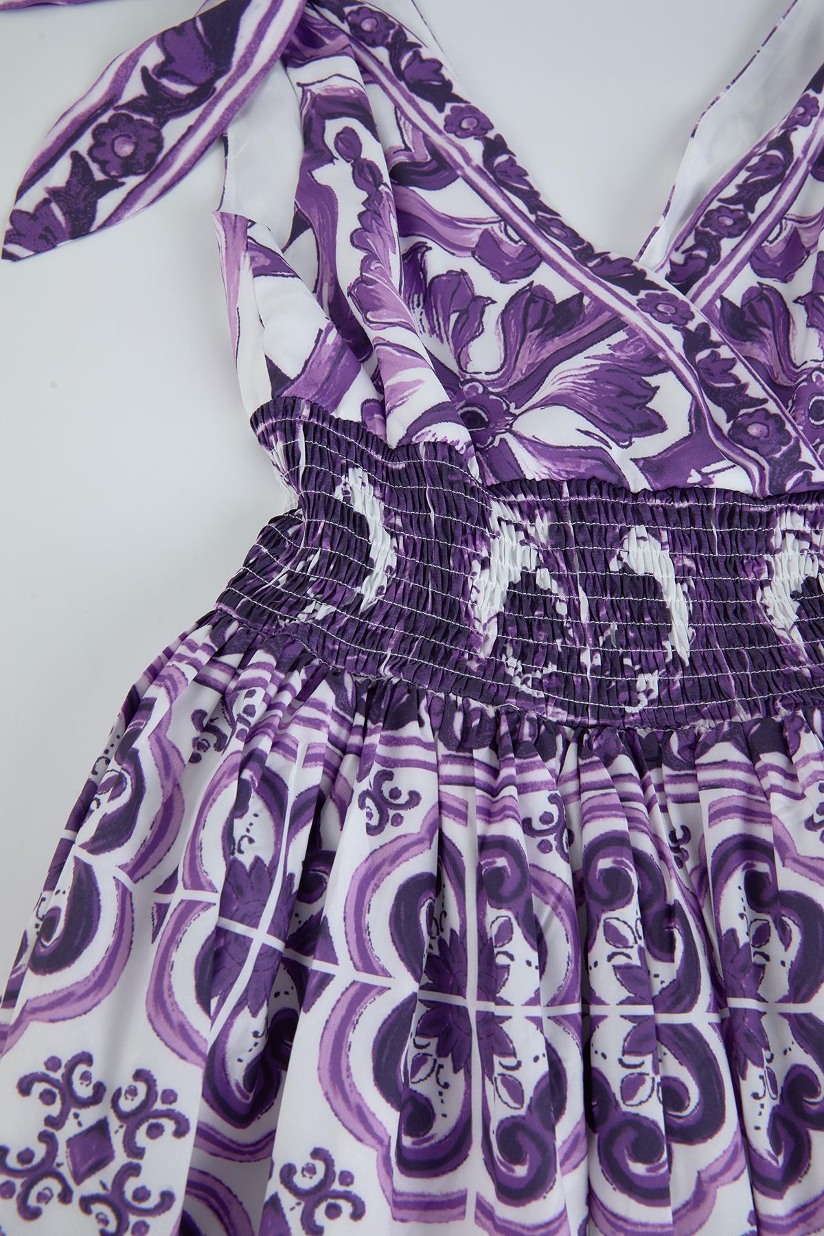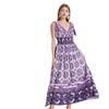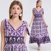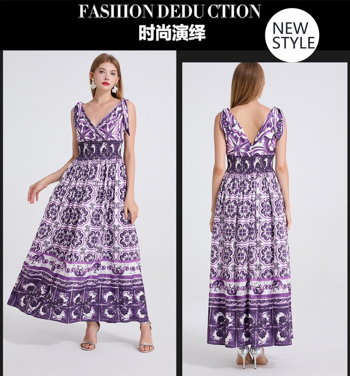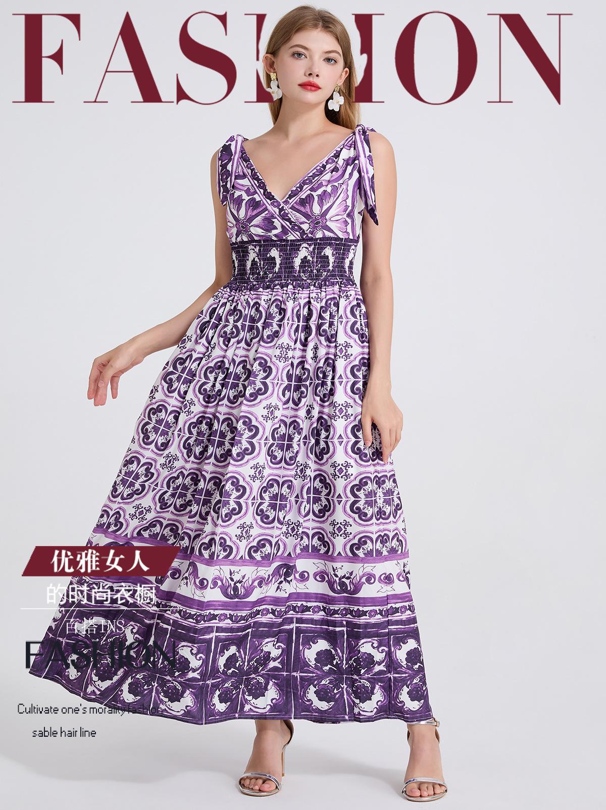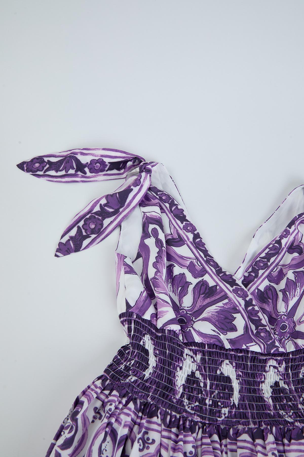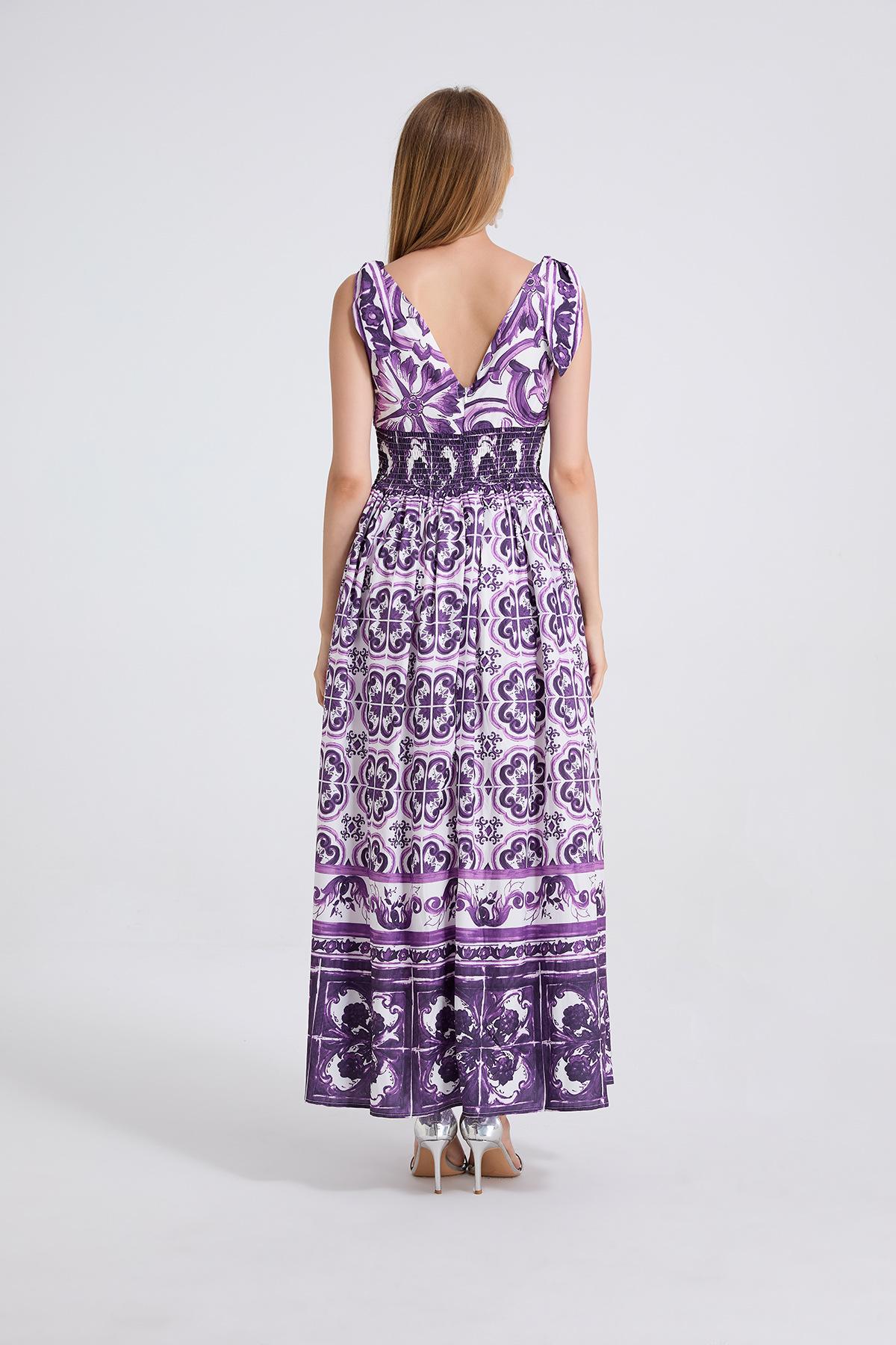 Vestido Sexy de Cuello en V con Estampado de Posicionamiento, Cintura Elástica, para Vacaciones en la Playa, con Lazos y Falda Ajustada